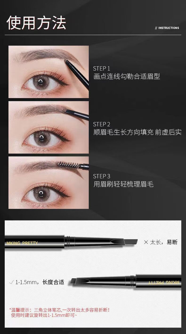 MKING PRETTY three-dimensional rotary eyebrow pencil color-locking waterproof and sweat-proof thick eye makeup makeup pencil natural black
