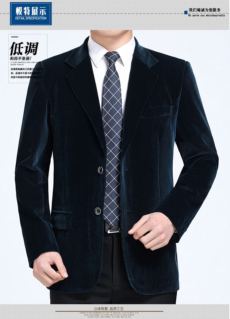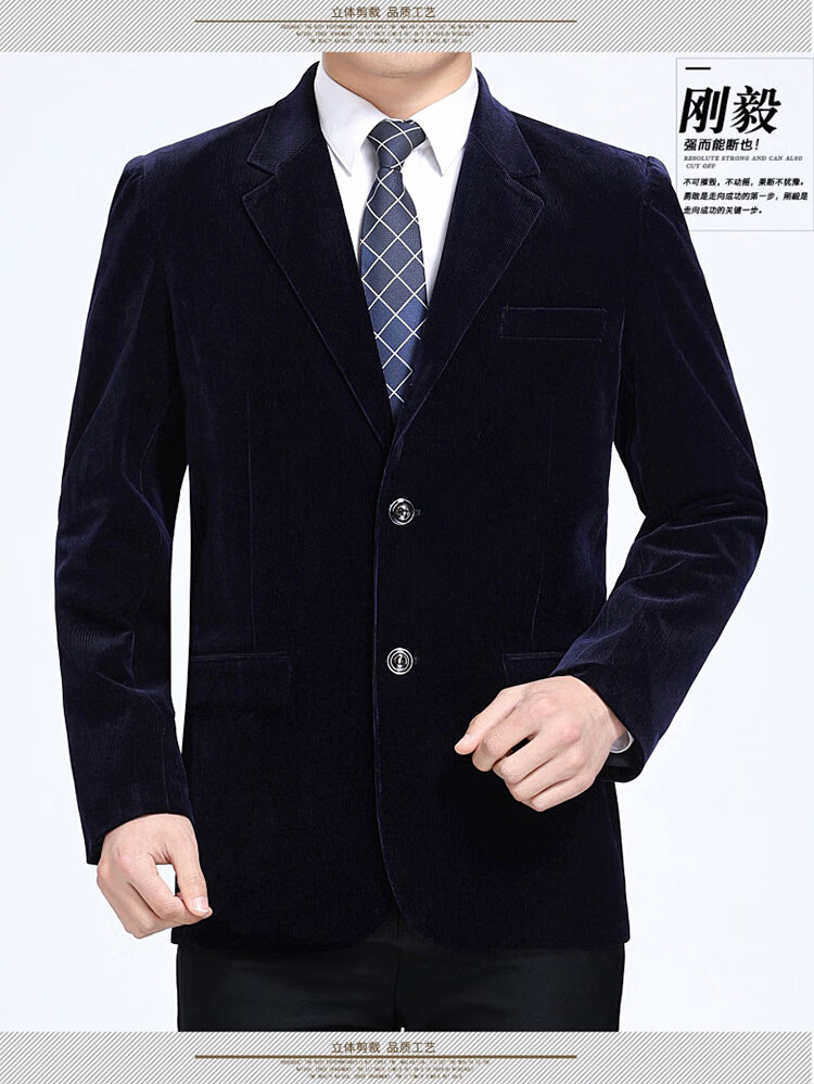 Classic car, middle-aged men's corduroy suit, gold velvet spring and autumn suit jacket, middle-aged men's dad's corduroy singlet, navy blue 175 (recommended 140 Jin Jin equals 0.5 kg -155 Jin Jin equals 0.5 kg to wear)