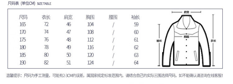 China (cm) 165 / 88-90 170 / 96-98 175 / 108-110 180 / 118-122 185 / 126-130
