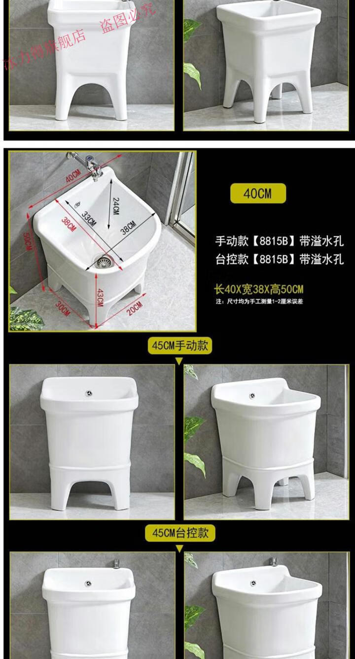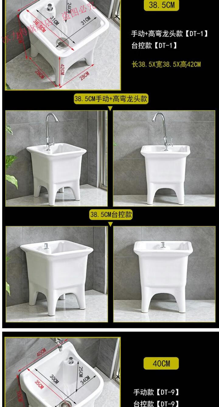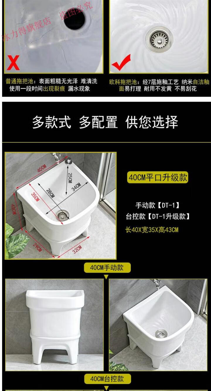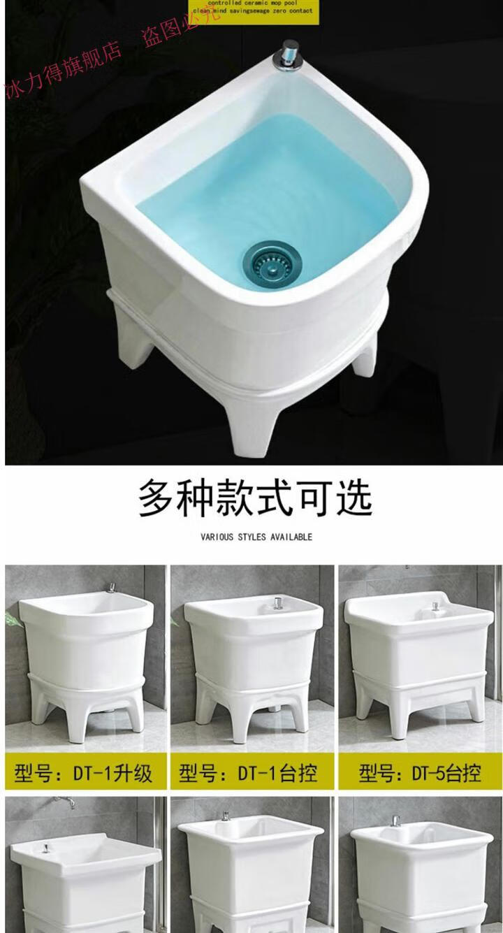 Jingga mop pool balcony ceramic wash mop pool mop pool household bathroom automatic drain high-foot basin pool 49 cm high backrest manual drain