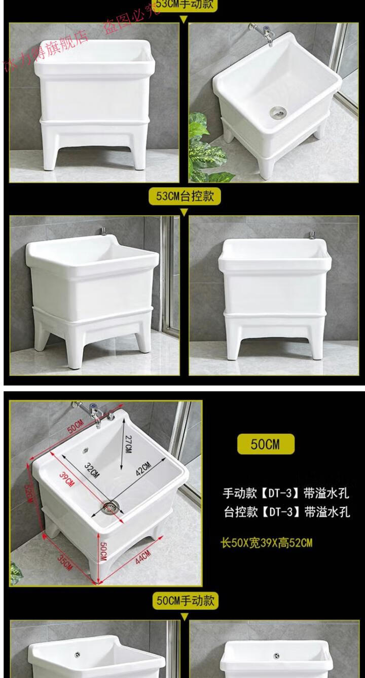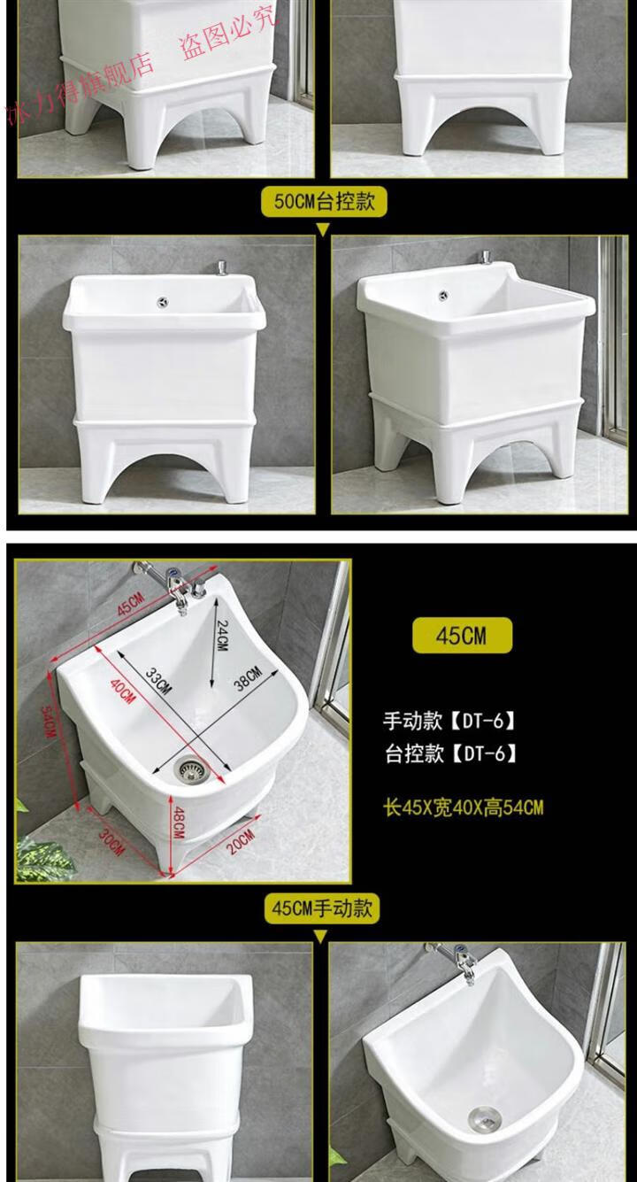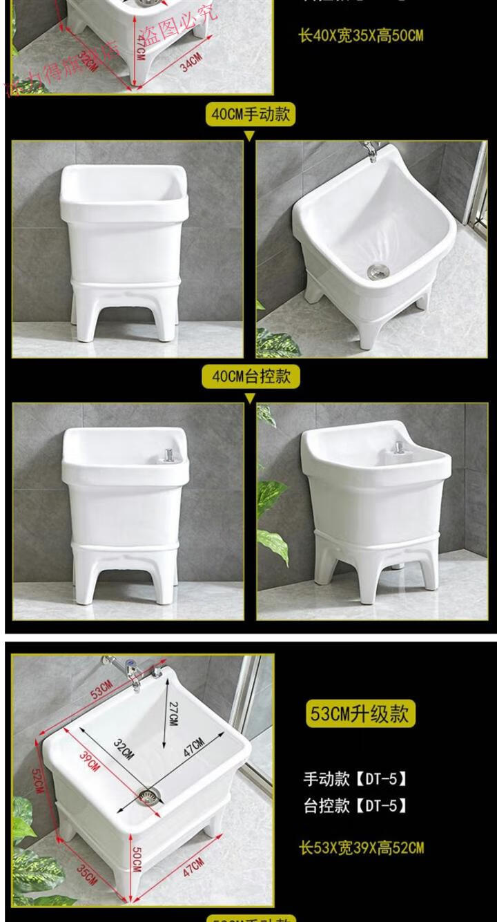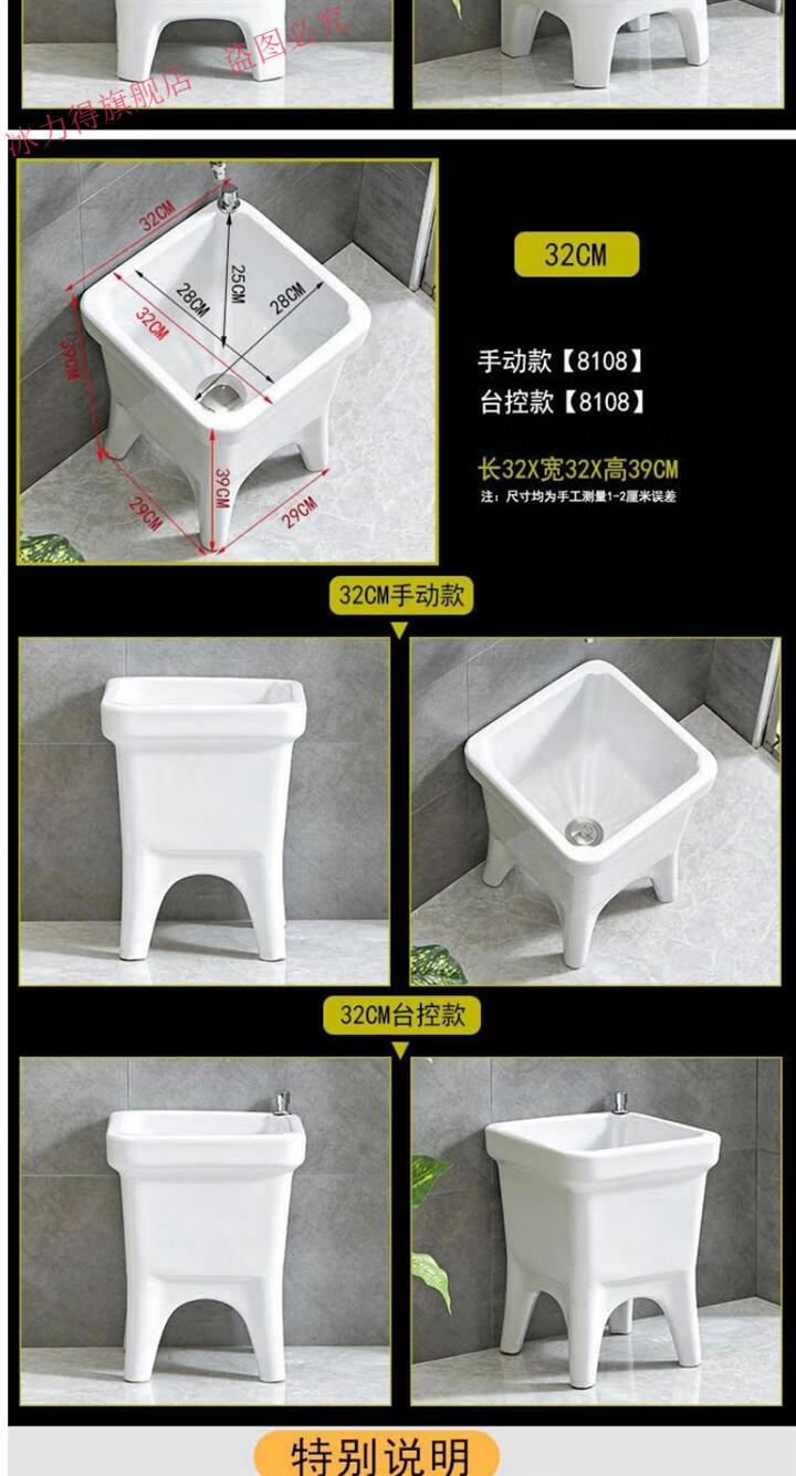 Jingga mop pool balcony ceramic wash mop pool mop pool household bathroom automatic drain high-foot basin pool 49 cm high backrest manual drain