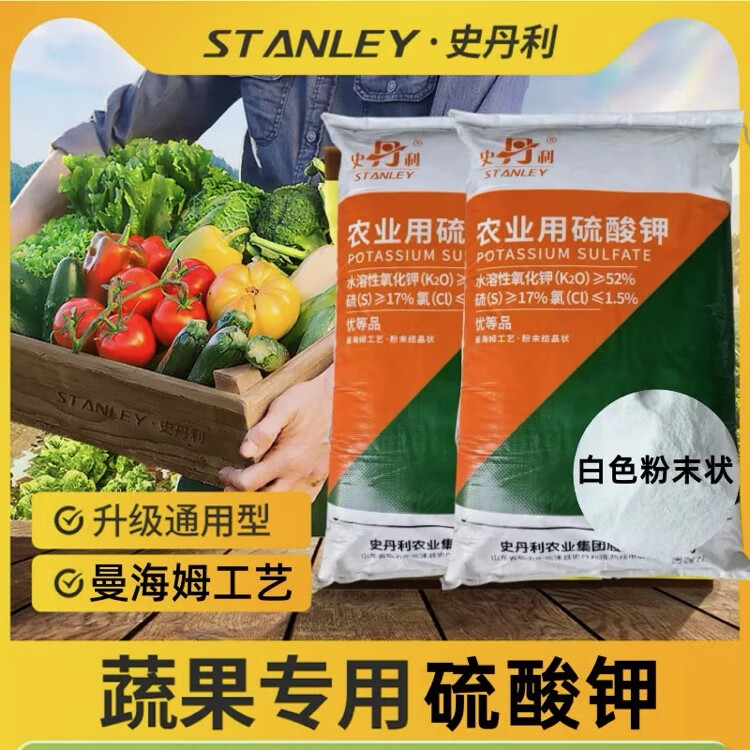 Stanley Genuine Stanley Agricultural Powdered Potassium Sulfate Fertilizer Water-soluble Instant Potash Fertilizer High Potassium Fertilizer Pure Potash Fertilizer Fake One Pays Ten Powder 50 Jin Jin is equal to 0.5 kg One bag of Stanley Powder Instant
