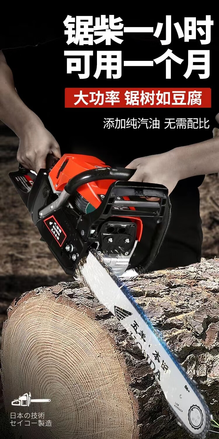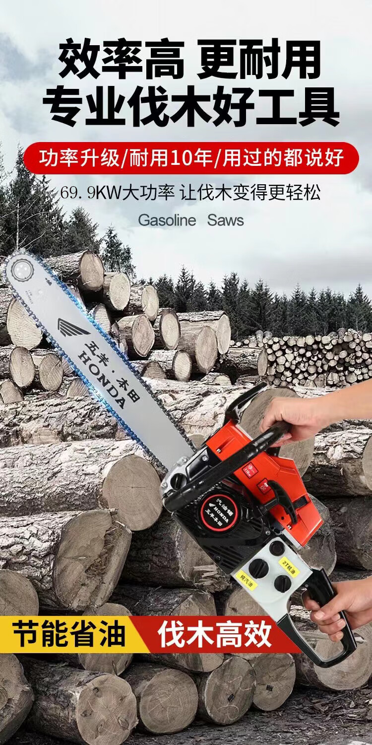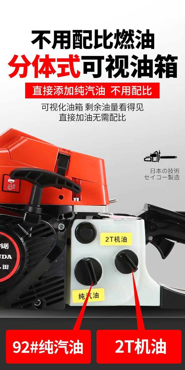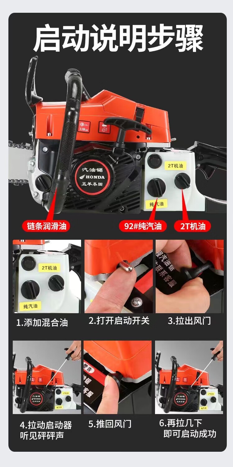 Wuyang Honda four-stroke high-power chain saw imported household pure gasoline saw small logging saw logging artifact handheld tree machine 1 bottle of oil
