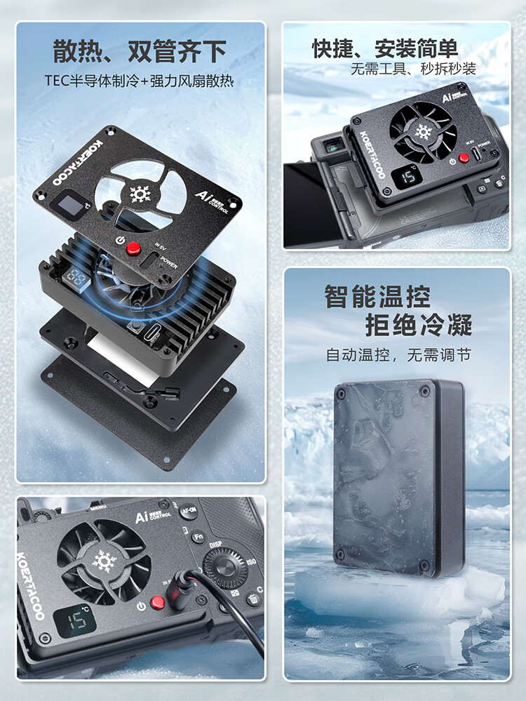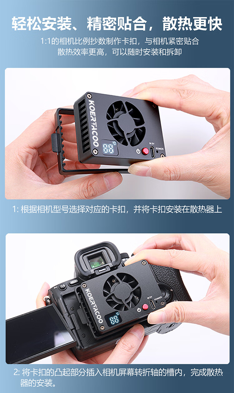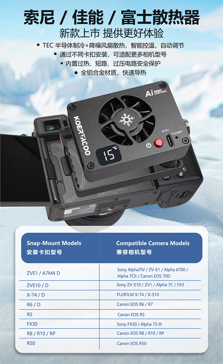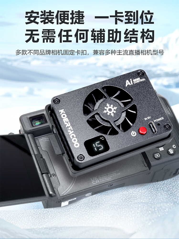 KOERTACOO camera live broadcast intelligent temperature control semiconductor radiator SonyA7M4/ZVE10/A7C/A7C2/A7S3/ZVE1 R5/R6/RP/R50 X-T4 FS-04 PRO automatic temperature control buckle set one