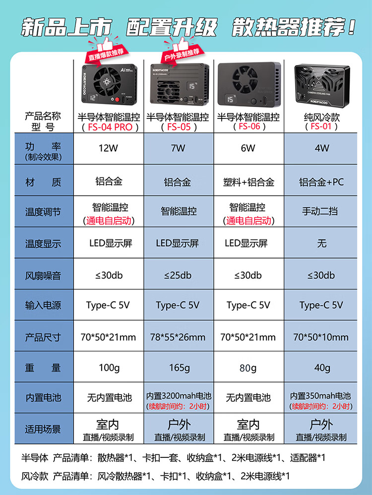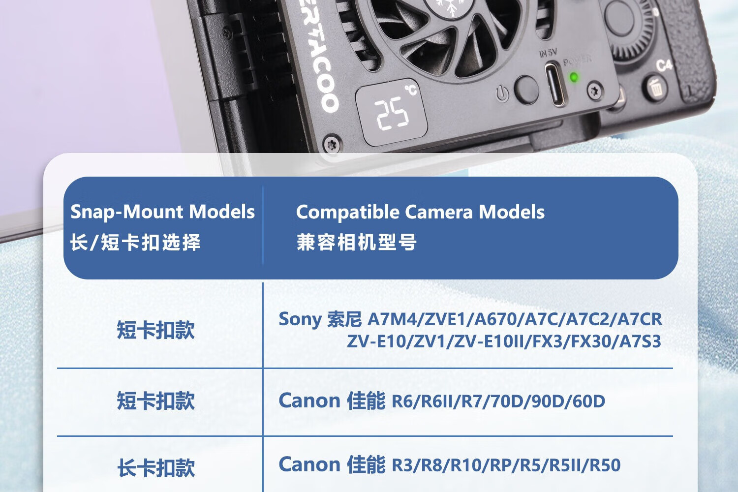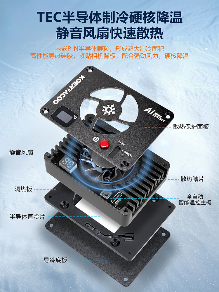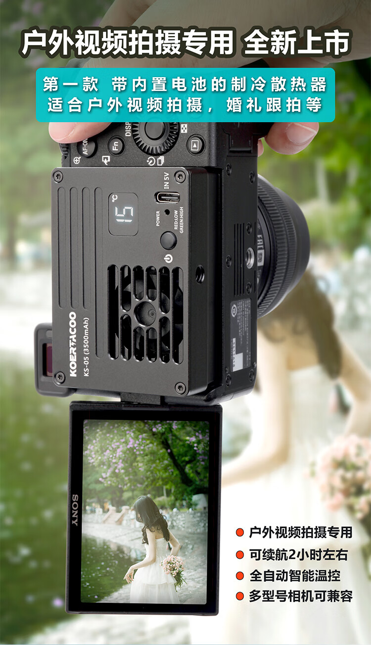 KOERTACOO camera live broadcast intelligent temperature control semiconductor radiator SonyA7M4/ZVE10/A7C/A7C2/A7S3/ZVE1 R5/R6/RP/R50 X-T4 FS-04 PRO automatic temperature control buckle set one