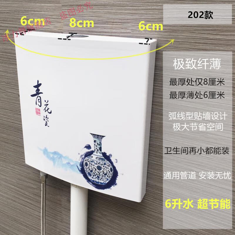 Jingga thin energy-saving water tank bathroom squat toilet flush tank thin small bedpan pumping tank wall hanging 202 blue and white water tank