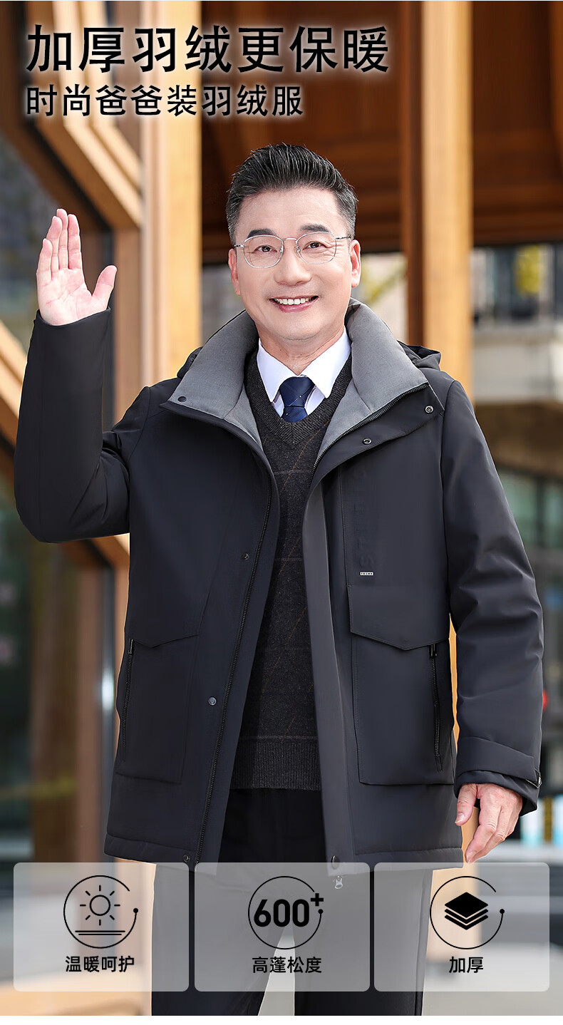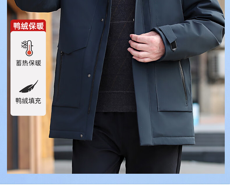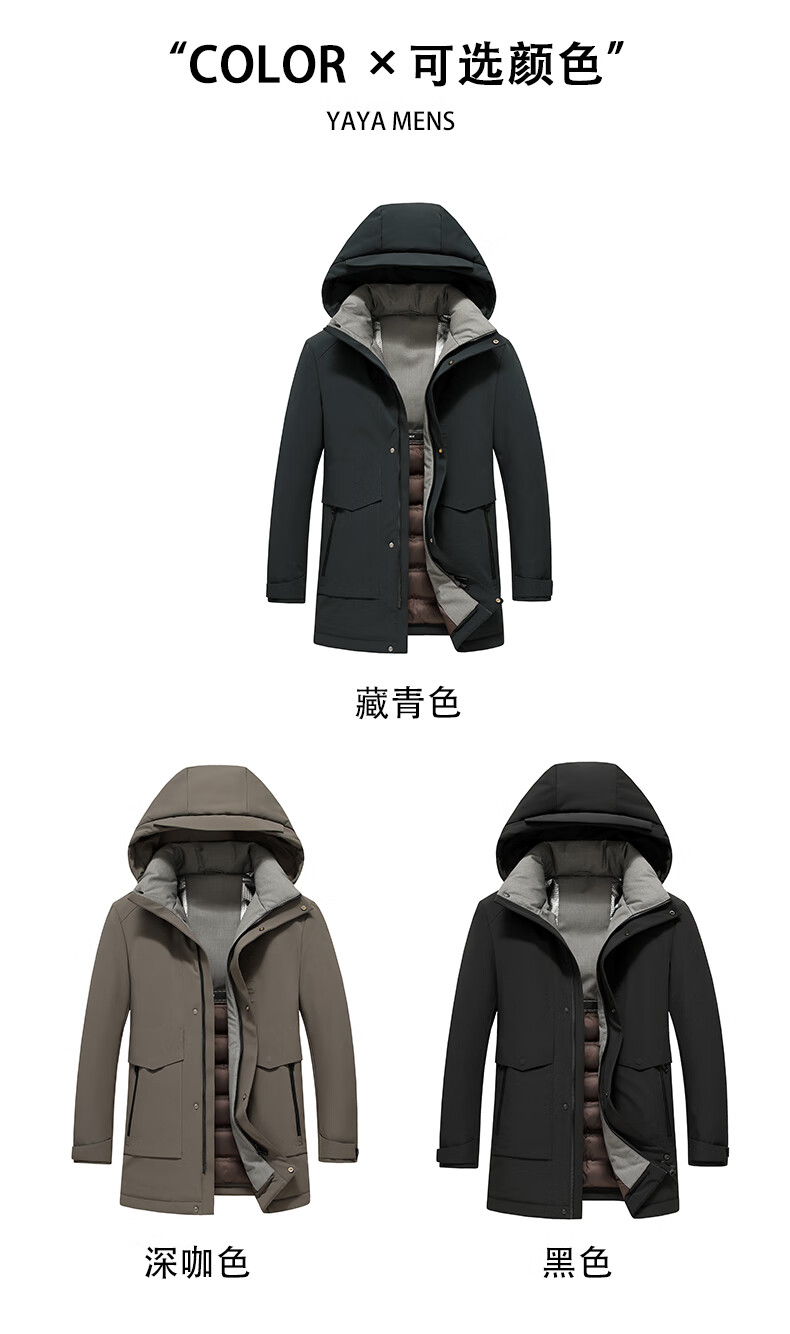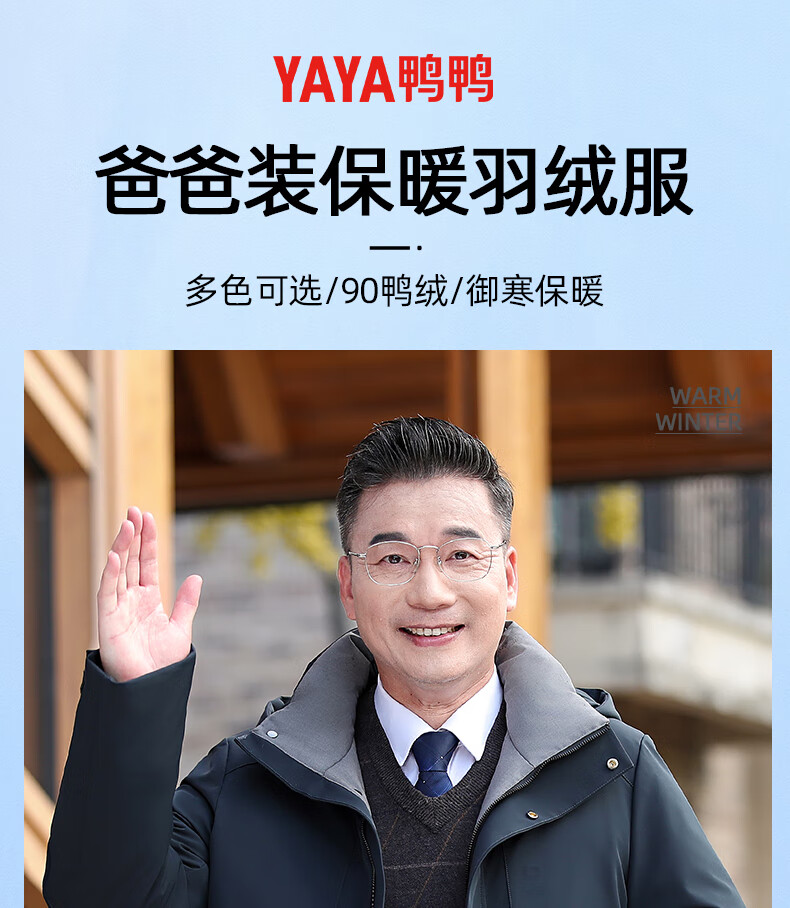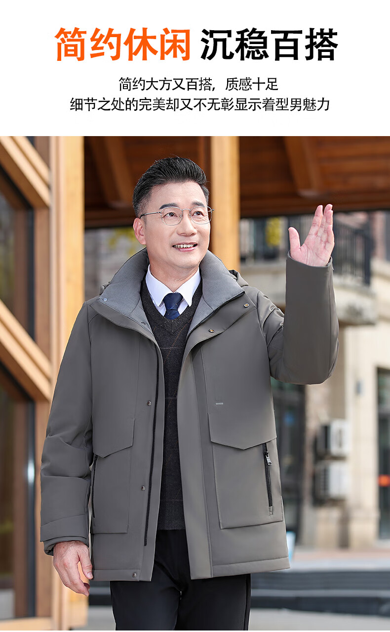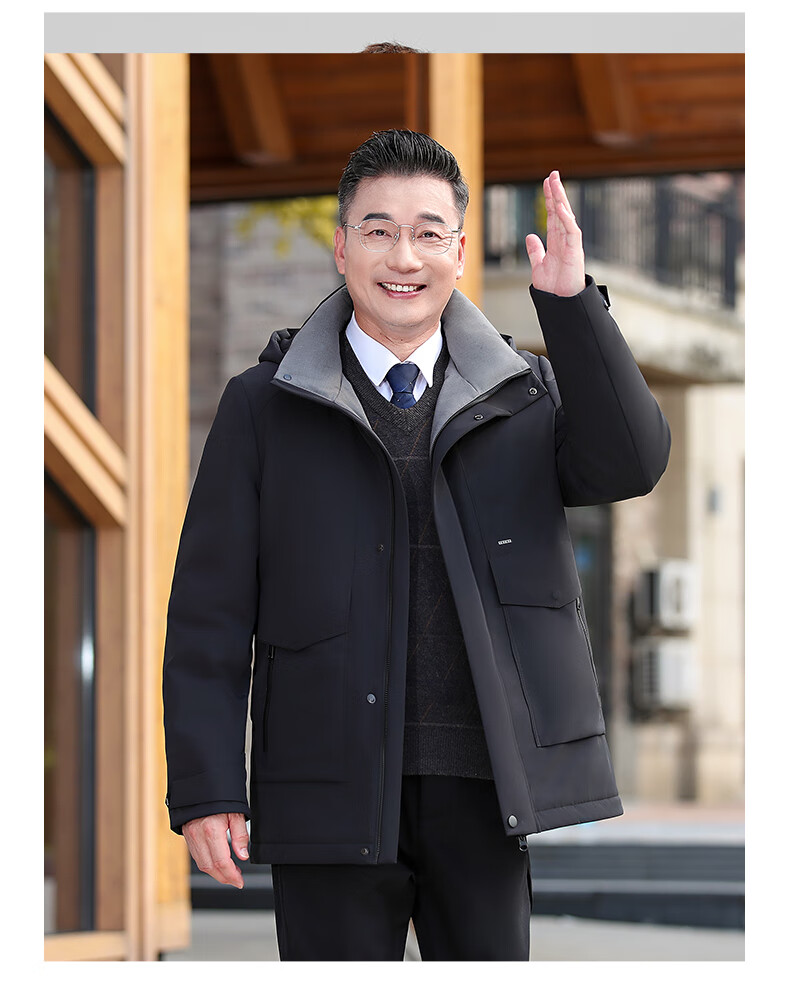 YAYA middle-aged and elderly short down jacket 2024 winter new men's business casual hooded daddy warm jacket HG navy blue L (175)