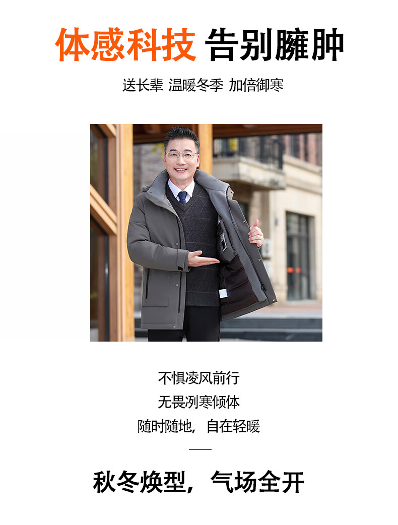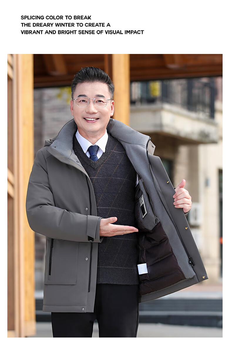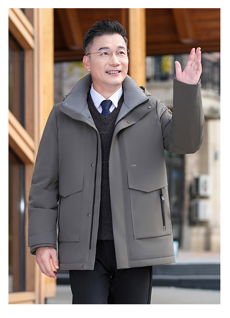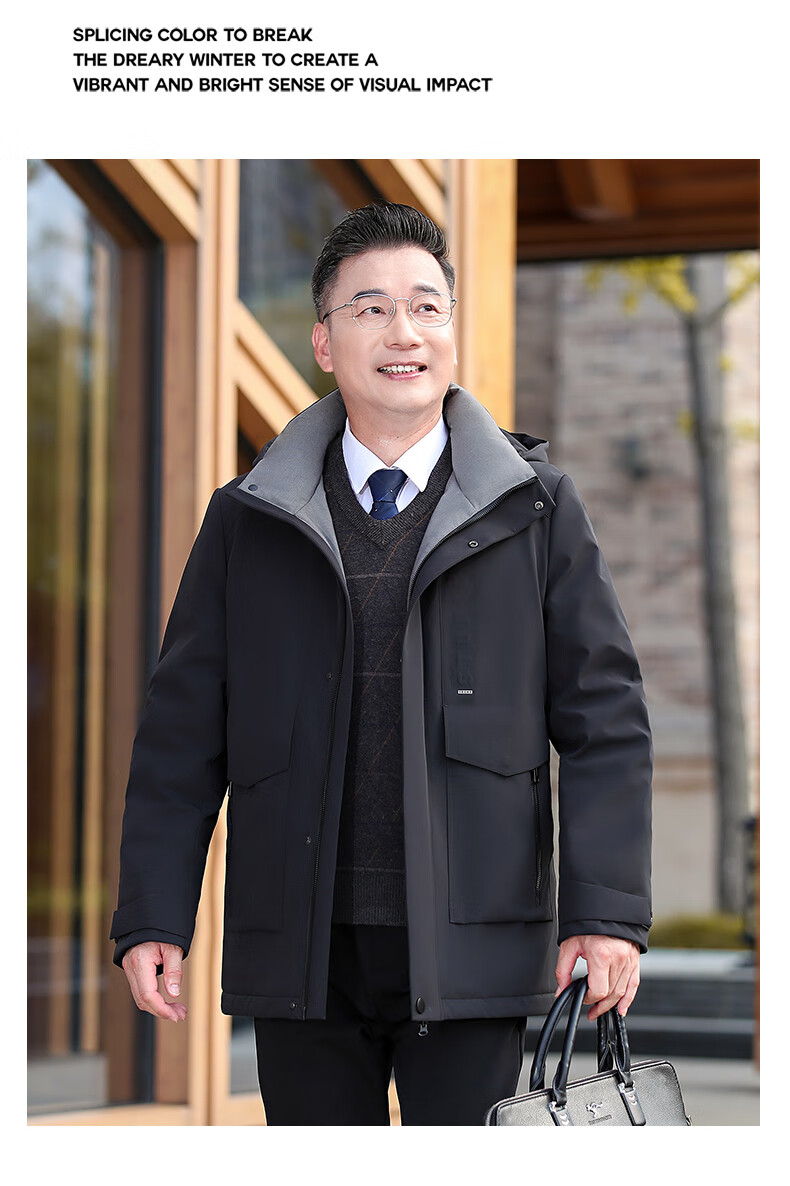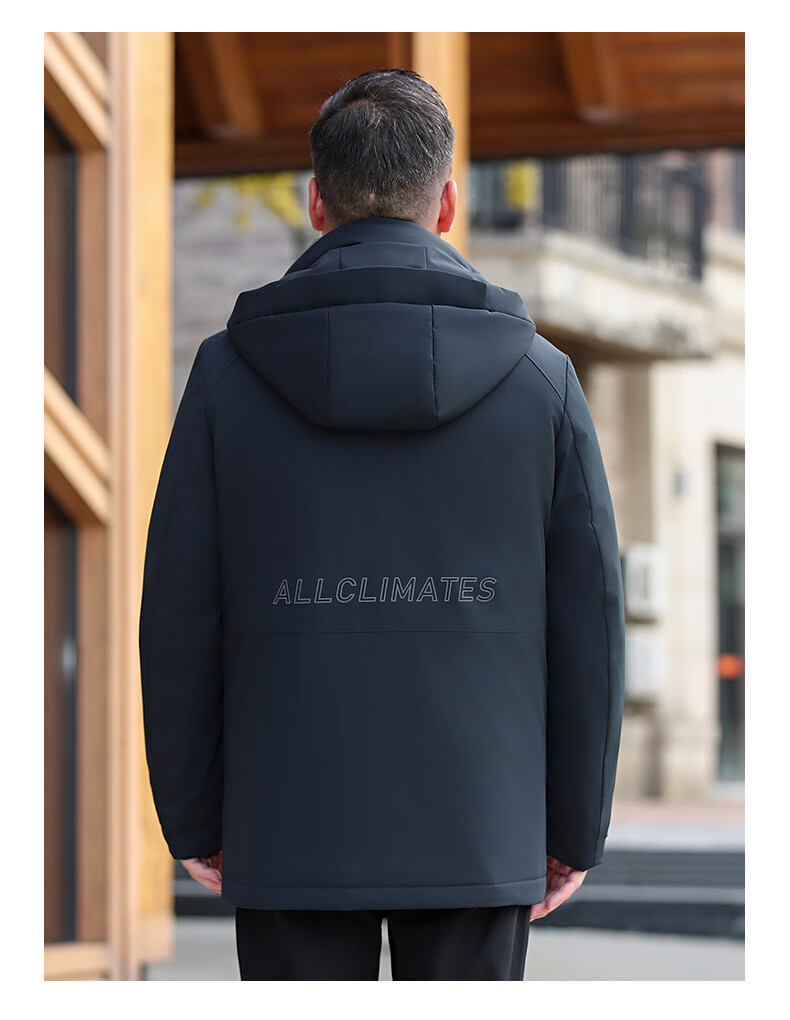 YAYA middle-aged and elderly short down jacket 2024 winter new men's business casual hooded daddy warm jacket HG navy blue L (175)