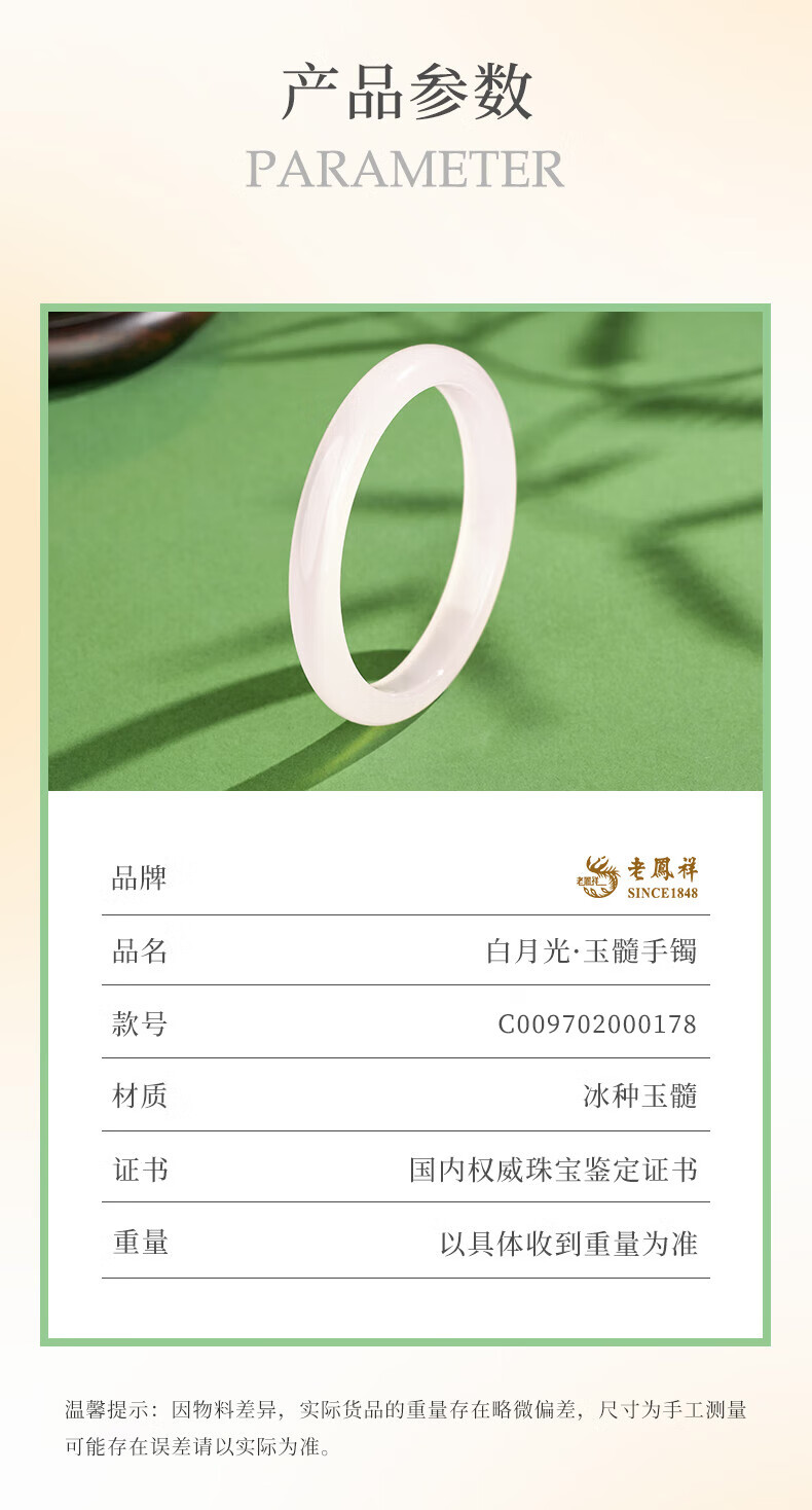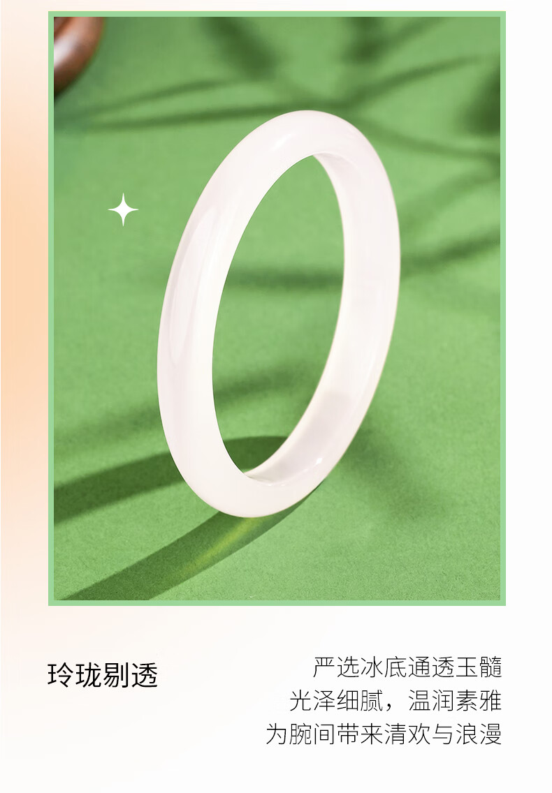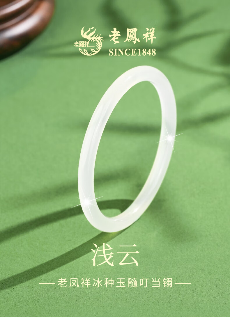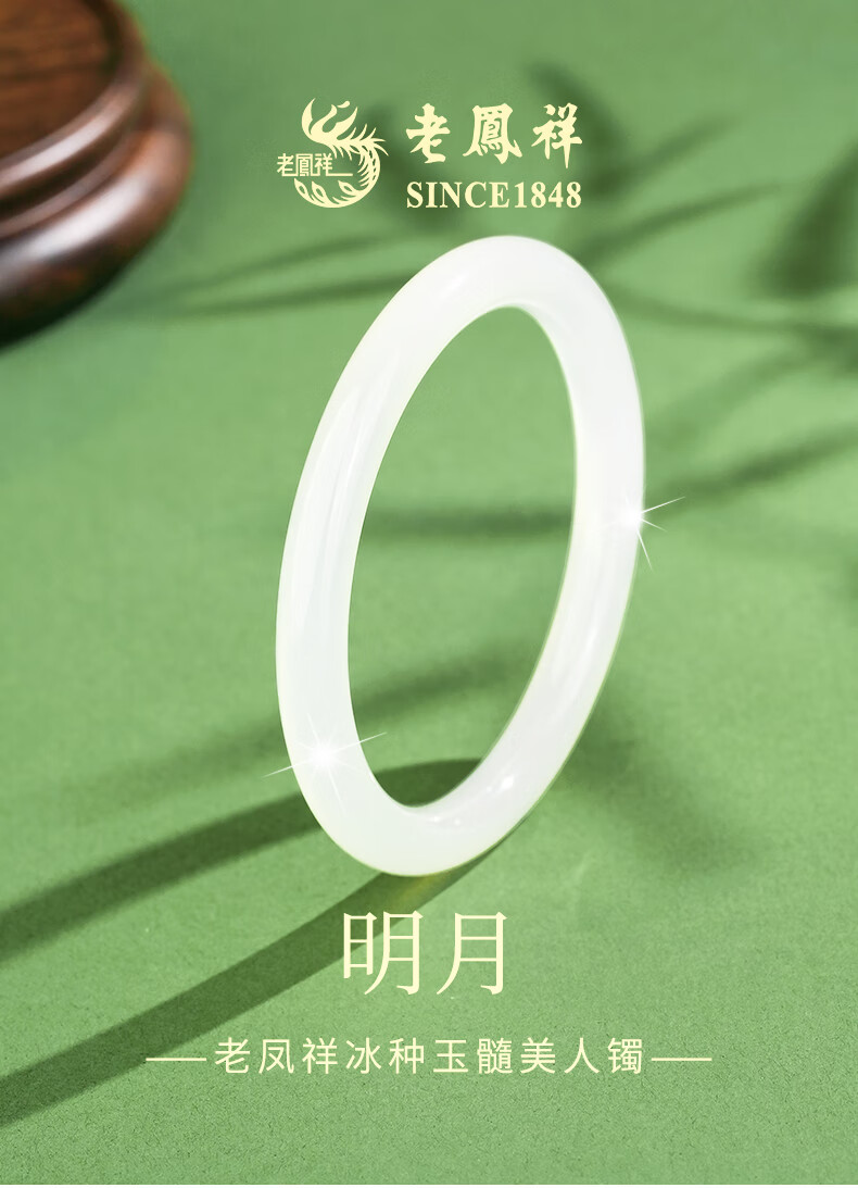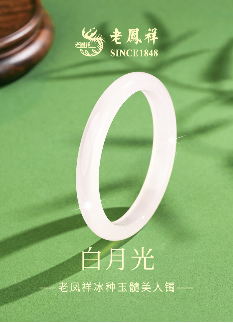 Lao Fengxiang White Moonlight Chalcedony Bracelet Women's Peace Bracelet Chinese Style Lychee Frozen Ice Jade Jingles Bracelet for Girlfriend's Birthday Gift White Moonlight #58 Peace Bracelet 10MM