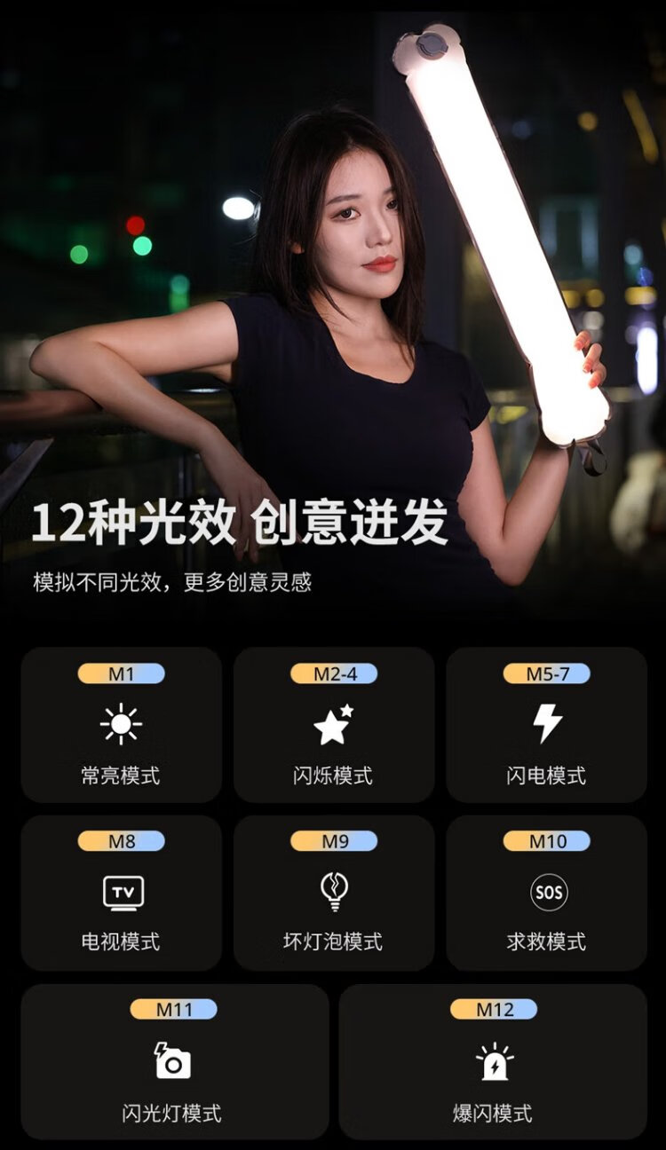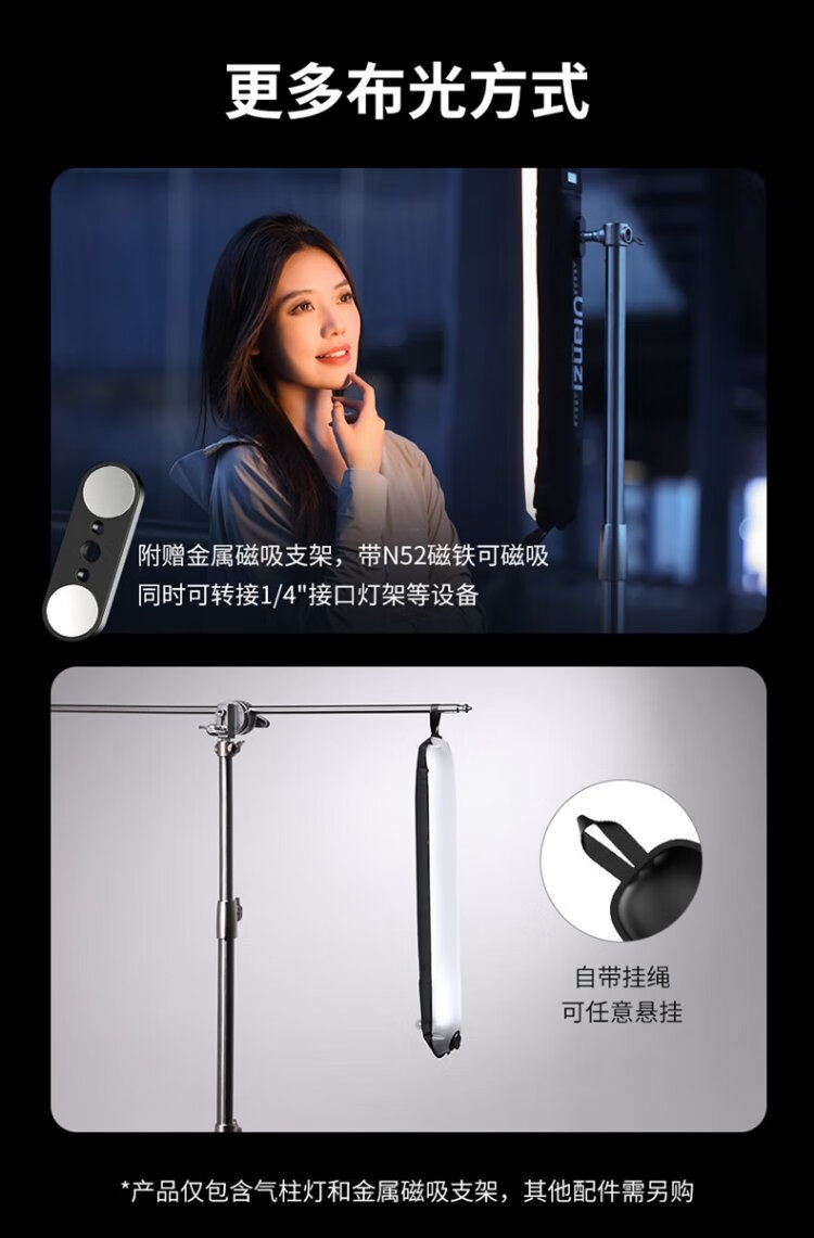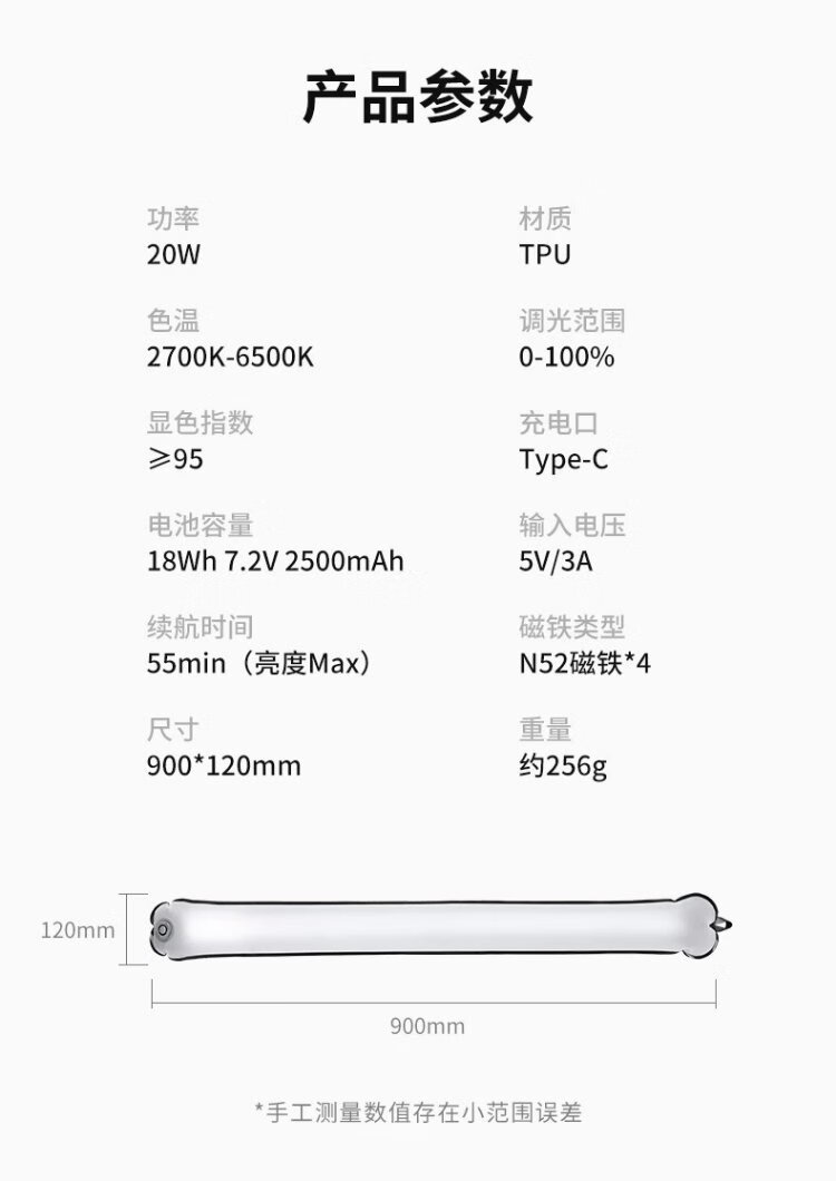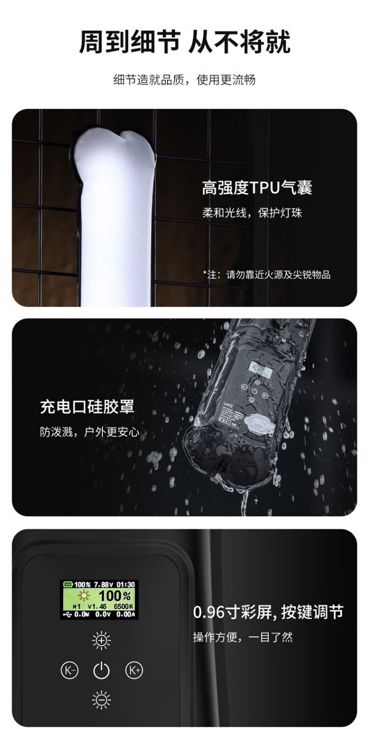 Ulanzi 12W/20W two-color thermomagnetic air column lamp, film and television photography inflatable fill light handheld LED light stick live broadcast wedding camping outdoor portable soft light 20W air column lamp | built-in battery | 55min battery life