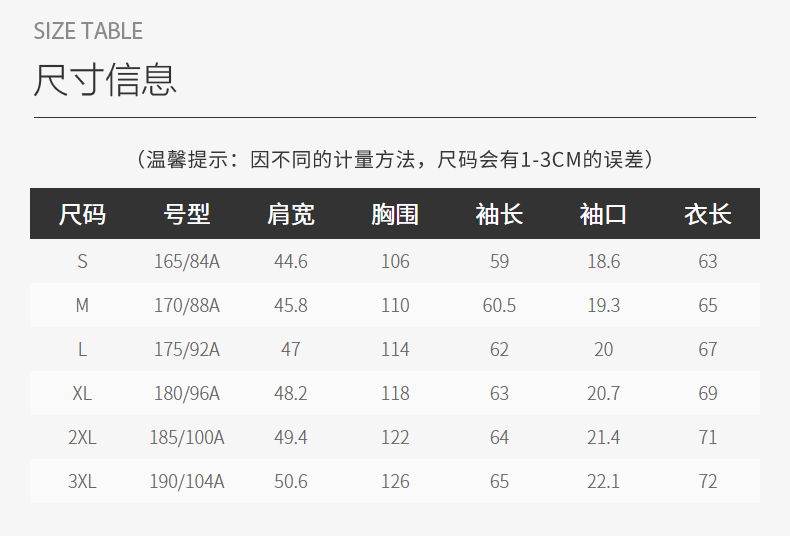 China (cm) 160-165/84-86 165-170 / 88-90 167-172 / 92-96 168-173 / 98-102 170-176 / 106-110