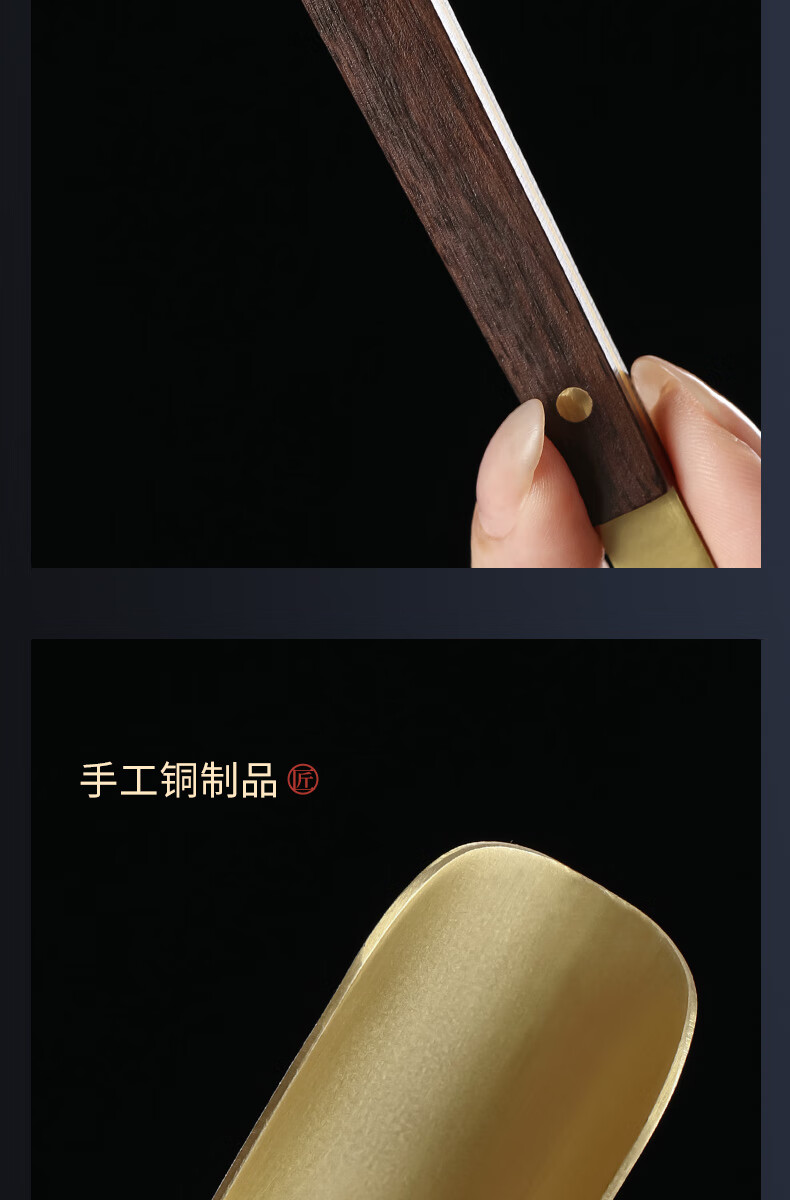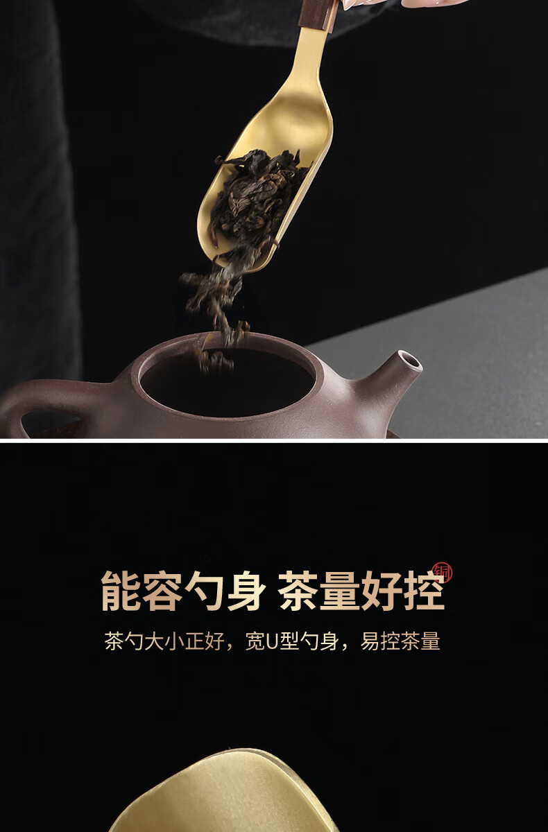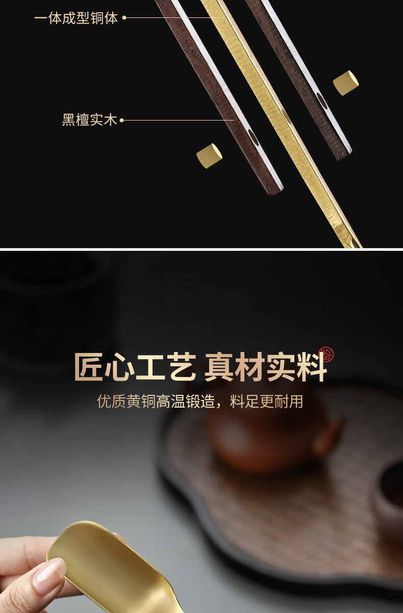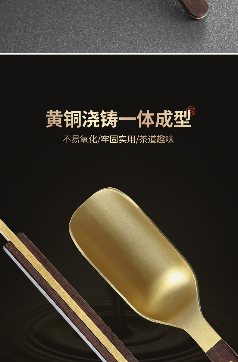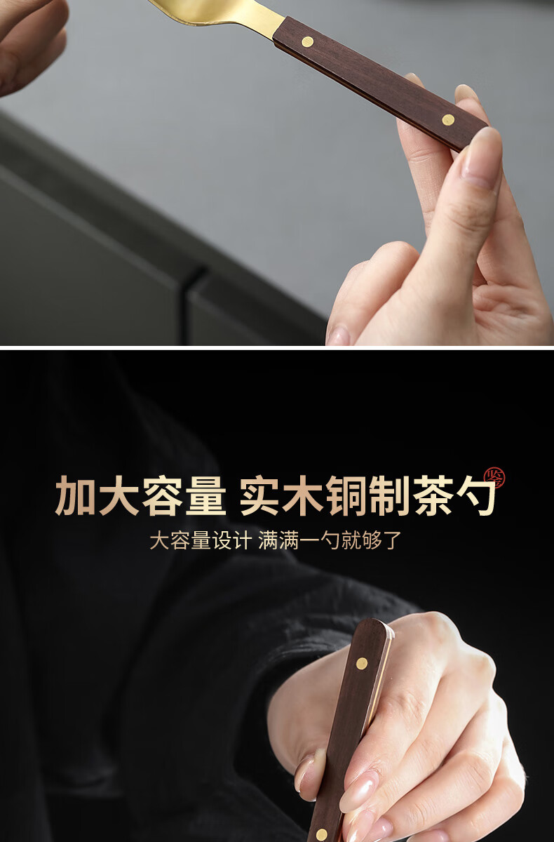 Shangyanfang Copper Wood Tea Spoon High-end Thickened Solid Wood Household Tea Spoon Tea Spoon Kung Fu Tea Set Tea Making Tools Accessories Houze Copper Tea Spoon (Ebony Style)