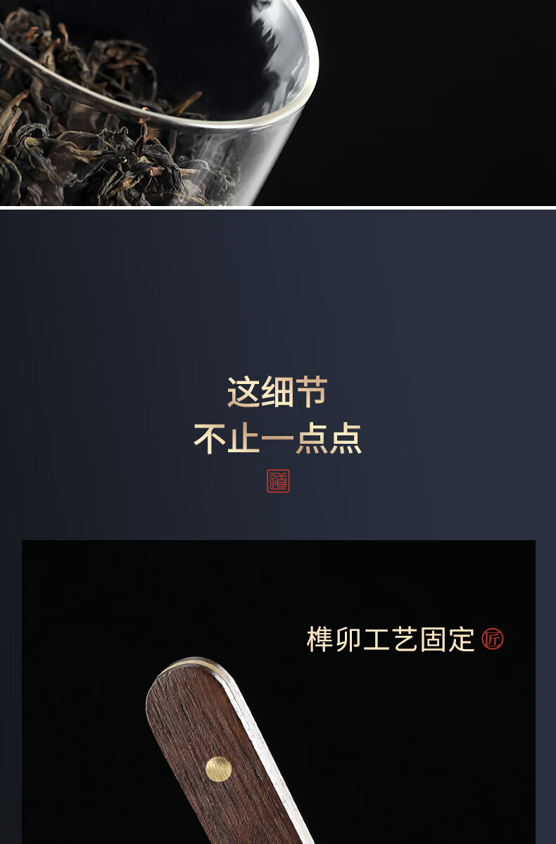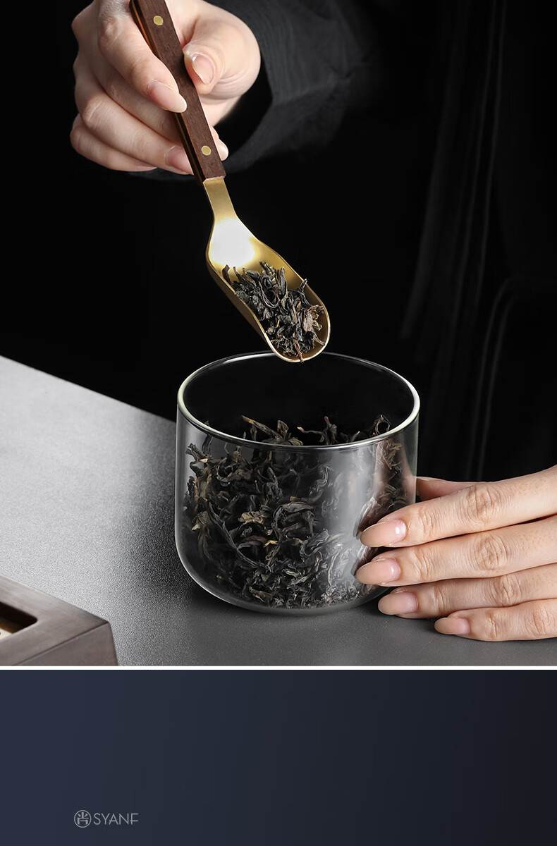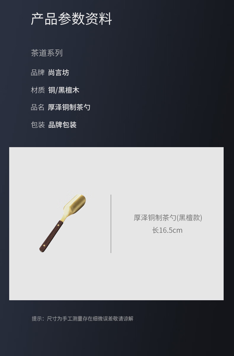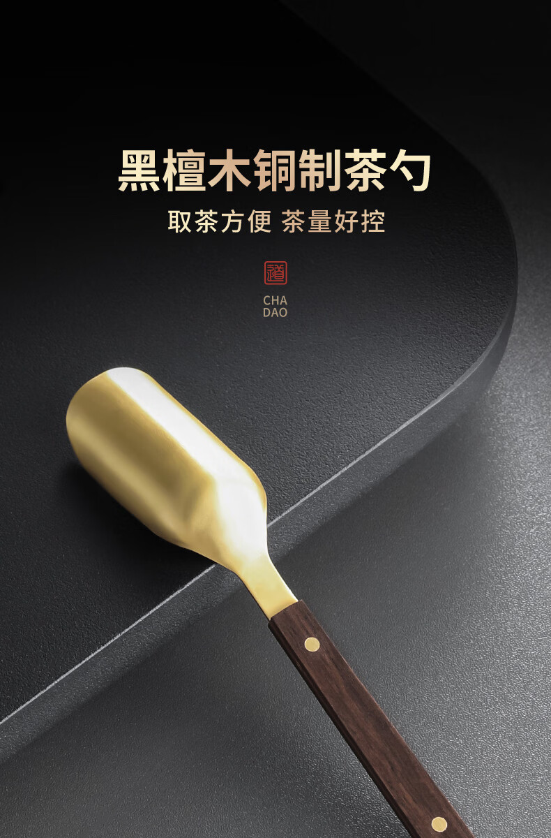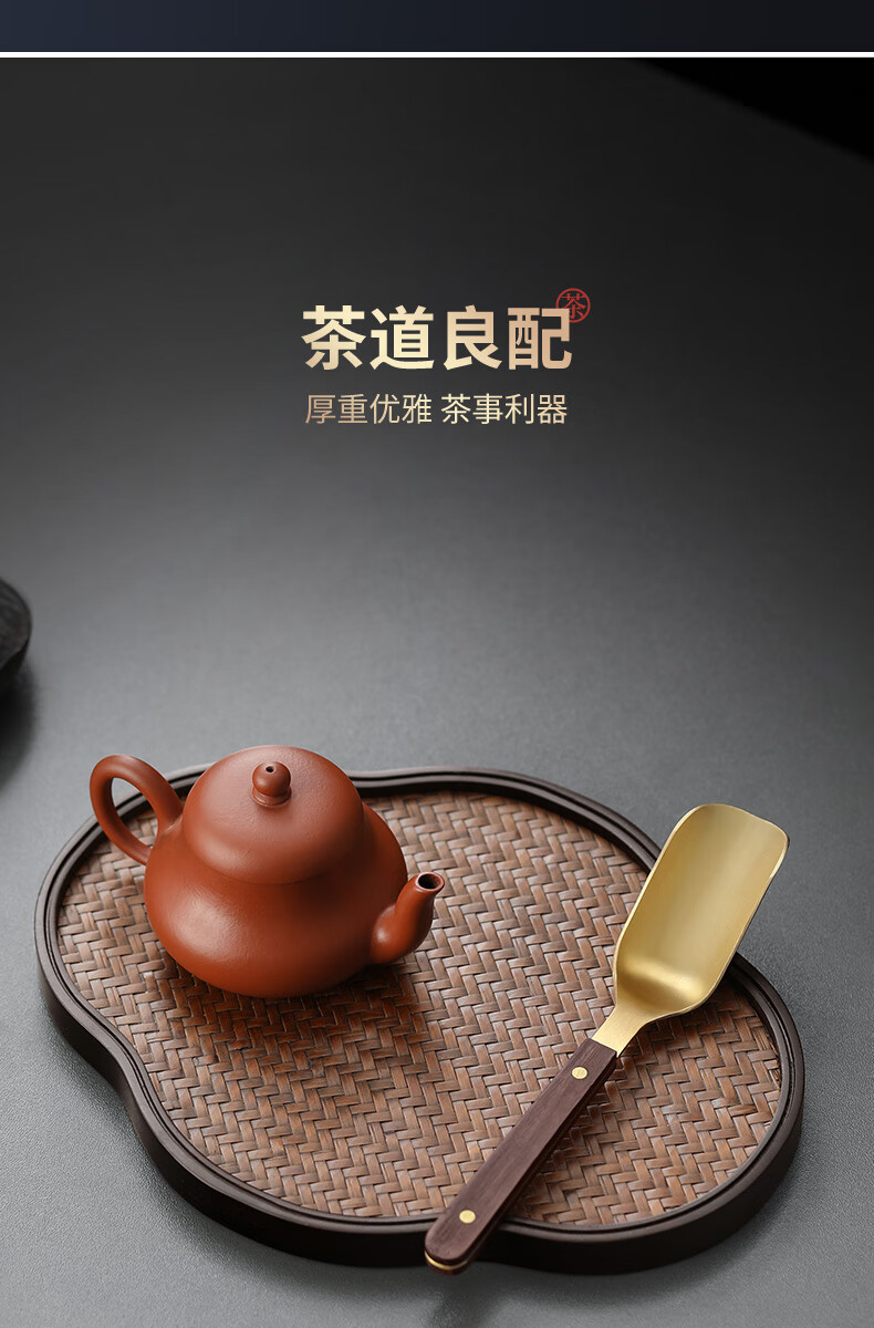 Shangyanfang Copper Wood Tea Spoon High-end Thickened Solid Wood Household Tea Spoon Tea Spoon Kung Fu Tea Set Tea Making Tools Accessories Houze Copper Tea Spoon (Ebony Style)