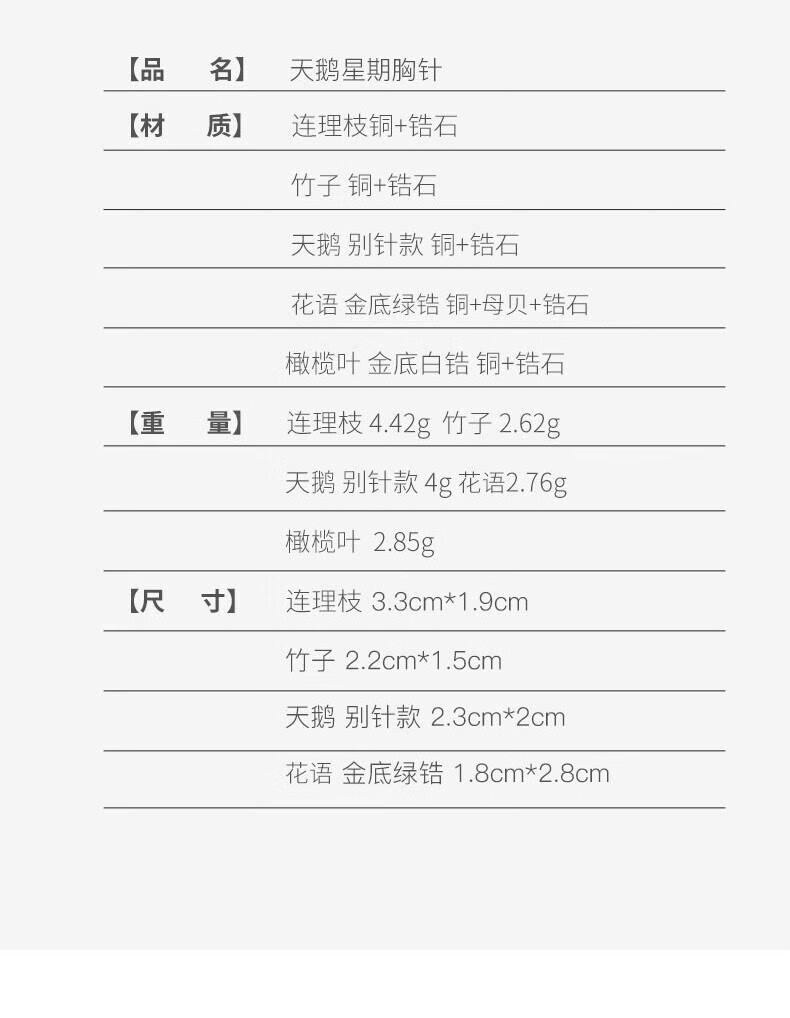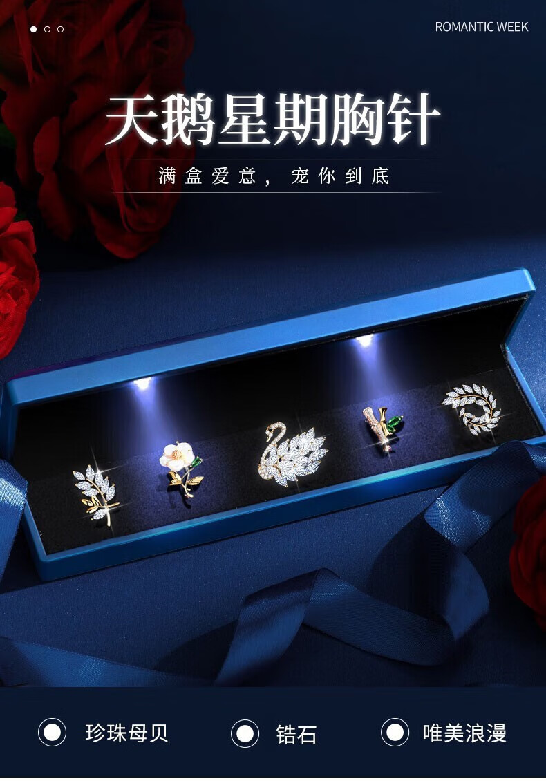 Helena Week Brooch Women's Week Brooch Women's Brand Niche Practical Heartfelt Birthday Gift for Girlfriend Swan Week Brooch 5 Pack