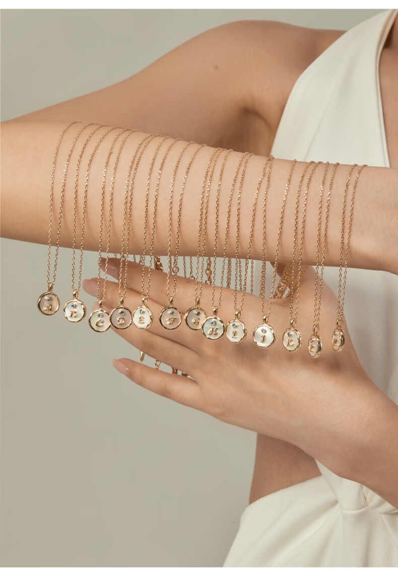 Amber Lollipop Zhang Jie's same style mother-of-pearl necklace for women light luxury letter clavicle chain anniversary birthday gift for girlfriend and wife golden brand-A