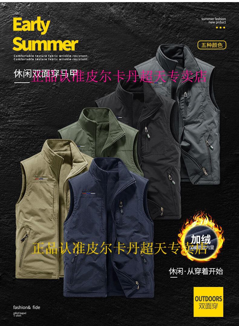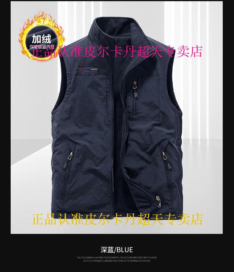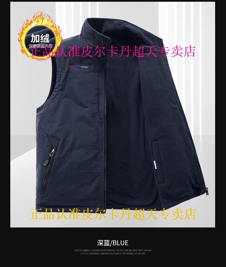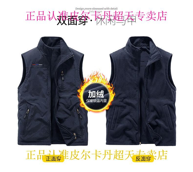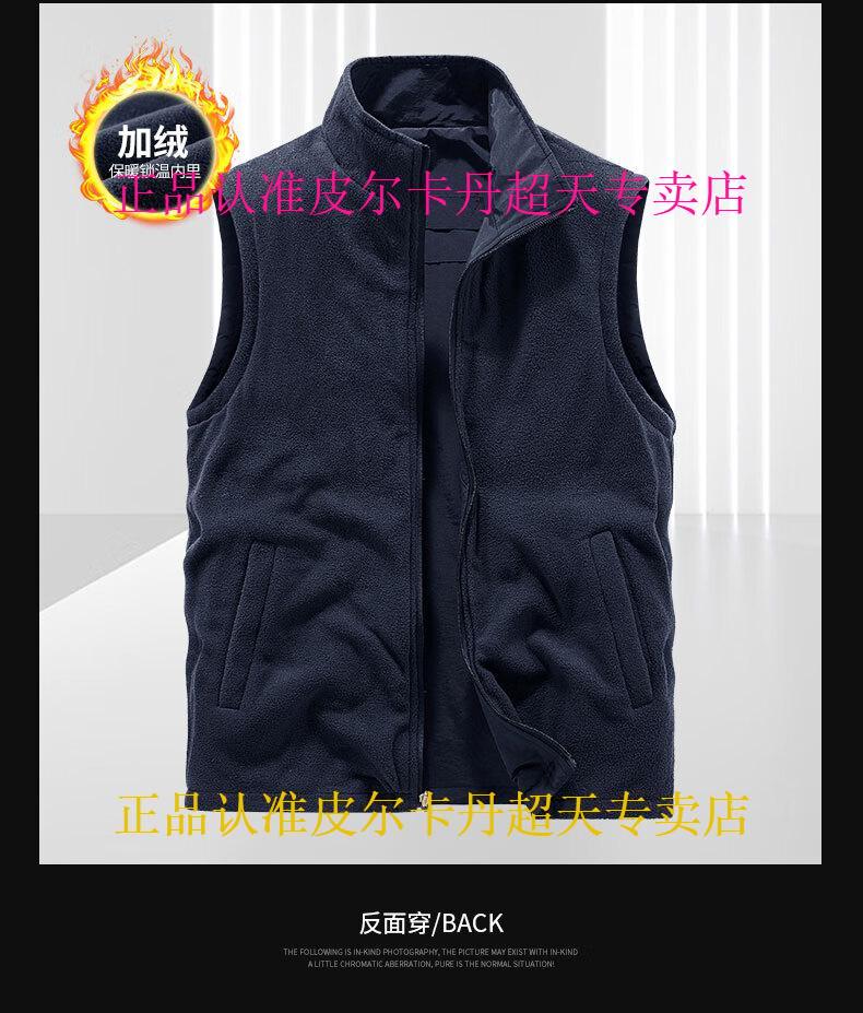 Pierre Cardin autumn and winter thickened double-sided vest for men, outdoor sports fleece vest, polar fleece vest and velvet vest jacket, royal blue 2XL (suitable for 145-160Jin Jin equals 0.5kg)