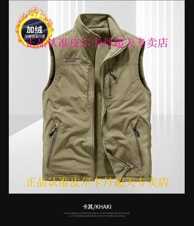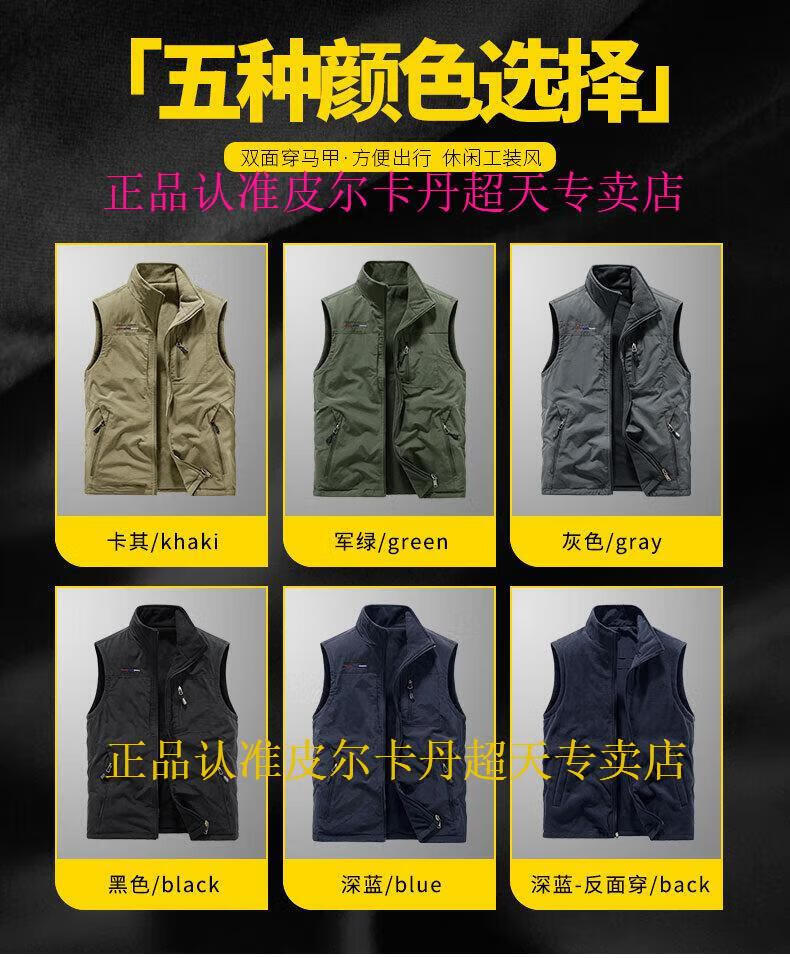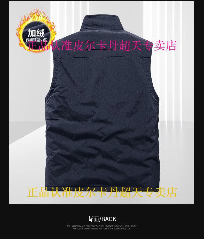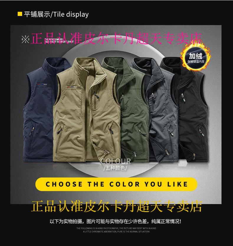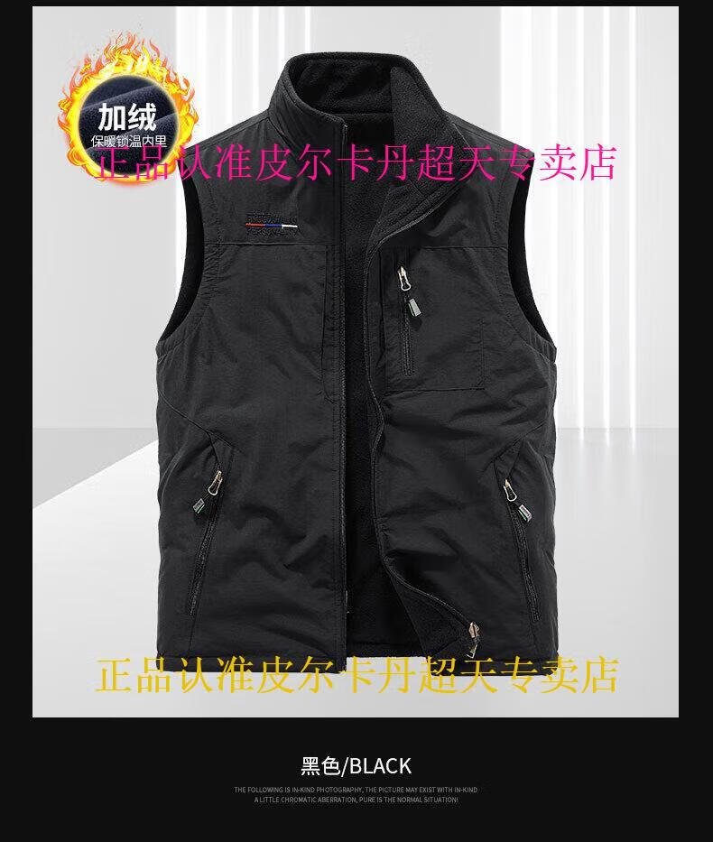 Pierre Cardin autumn and winter thickened double-sided vest for men, outdoor sports fleece vest, polar fleece vest and velvet vest jacket, royal blue 2XL (suitable for 145-160Jin Jin equals 0.5kg)