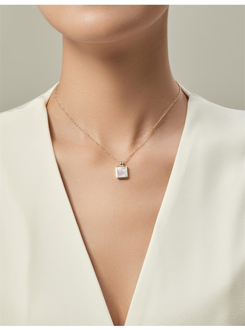 Amber Lollipop White Fritillaria Necklace Women's Niche Necklace Clavicle Chain Neck Ornament Anniversary Birthday Gift for Girlfriend and Wife White-Oil Frame