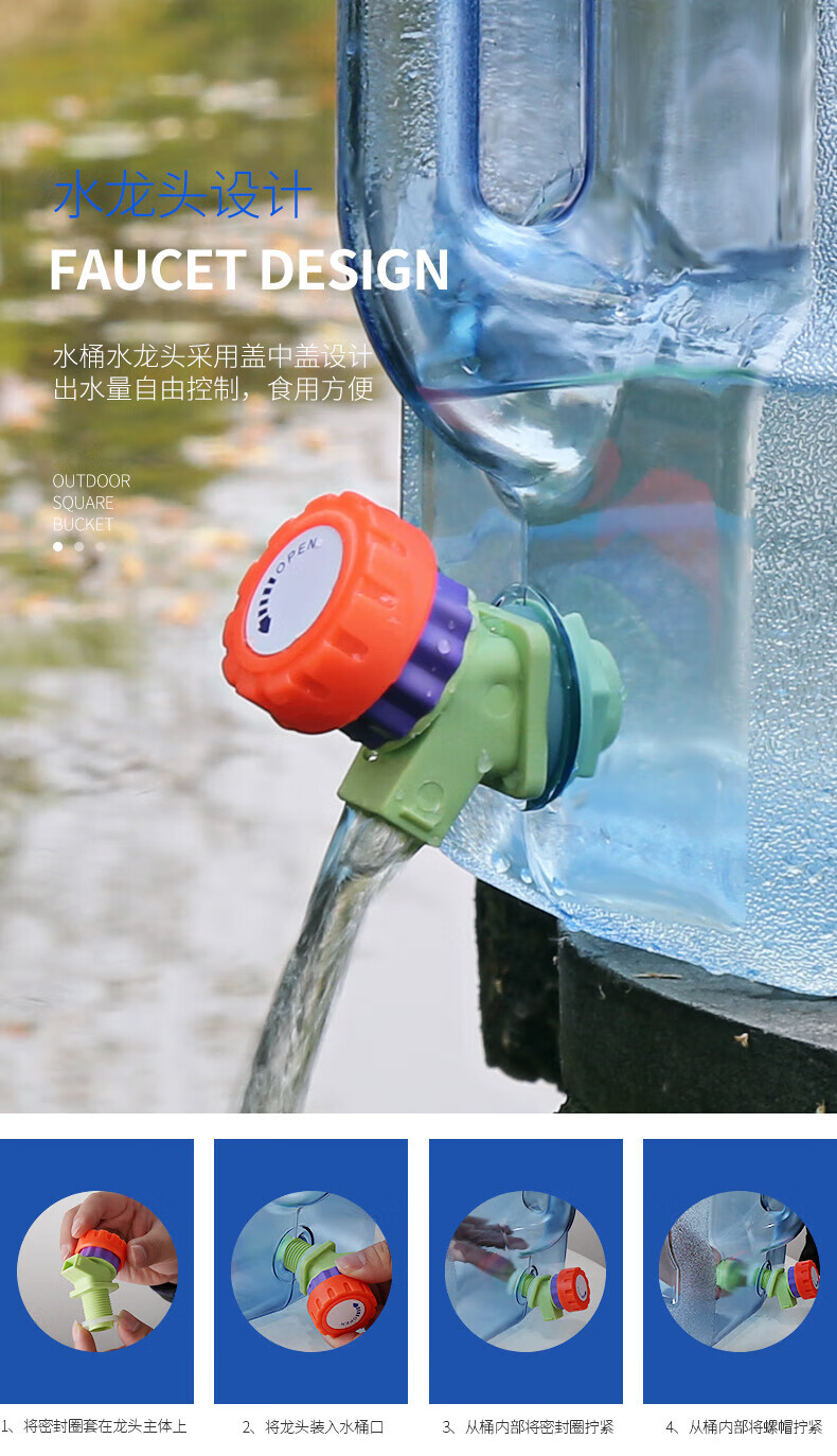 Chenbu new material bucket portable pure water bucket multi-purpose outdoor drinking bucket tea bucket large capacity thickened 15L QS safety certification/food grade PC-