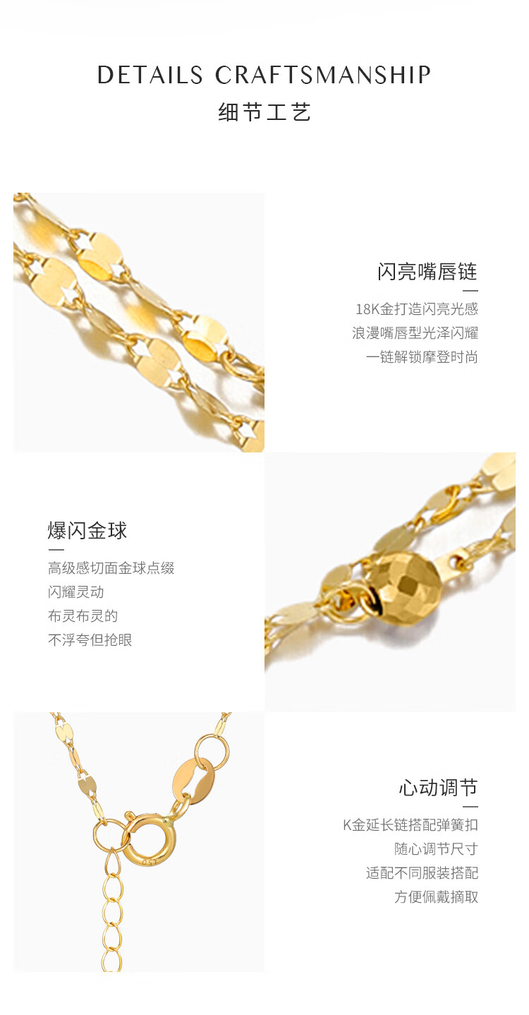 Chiba Jewelry 18K gold chain brand Galaxy Ball KISS lip chain new clavicle chain gift for girlfriend 18k gold necklace chain length about 45cm