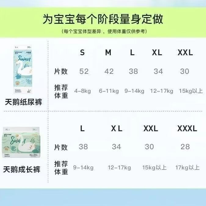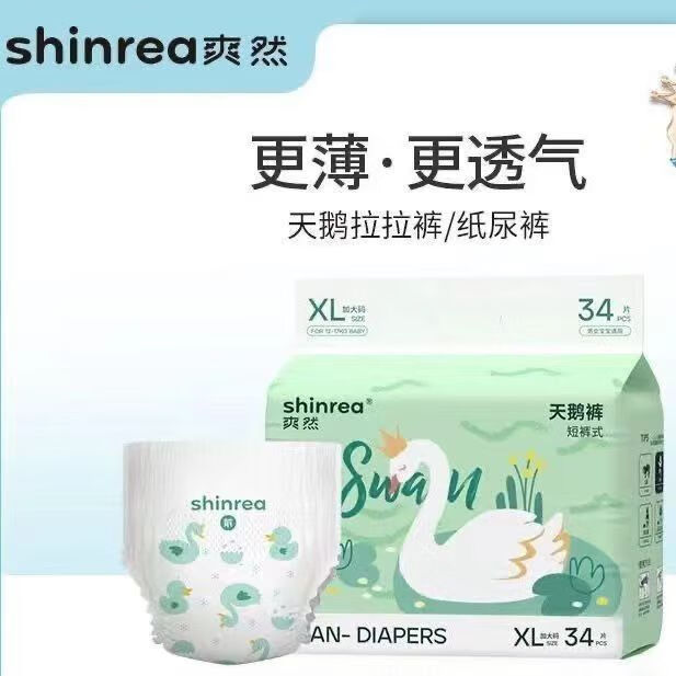 Shuangran (2 pack) Shuangran Swan Pants Diapers Pull-Up Pants Ultra-Thin Breathable Baby Diapers for Male and Female Babies 2XL (60 Pieces of Pull-Up Pants)