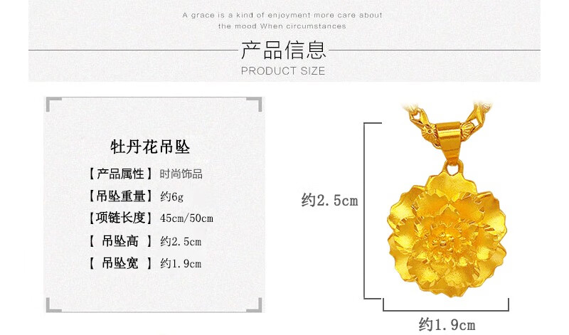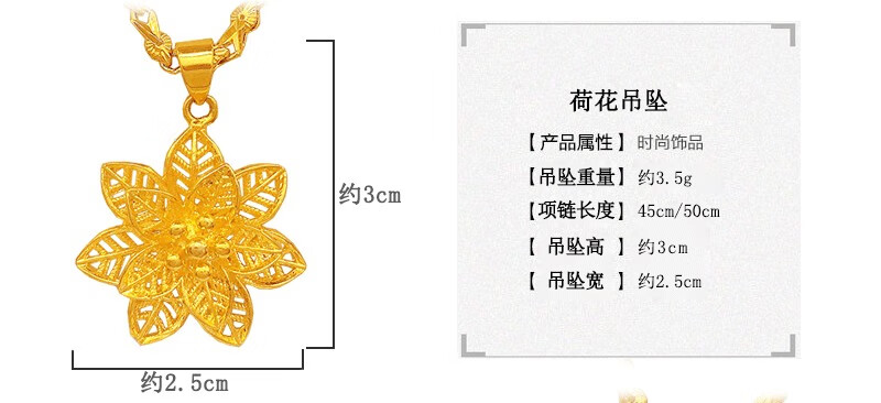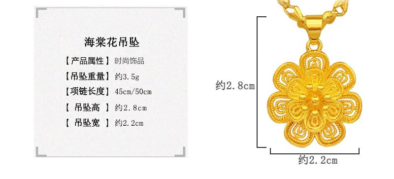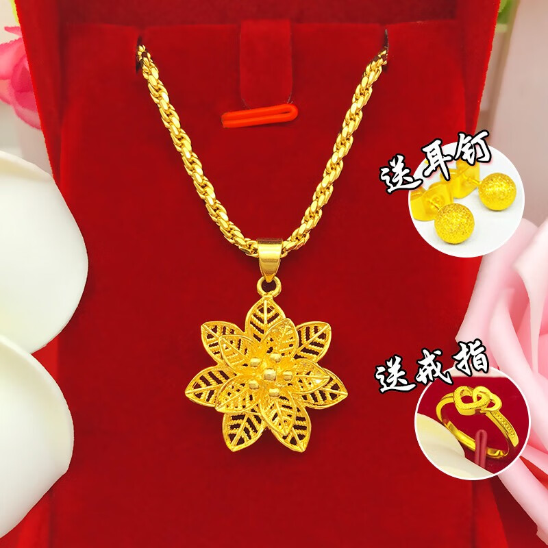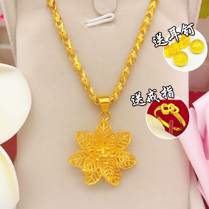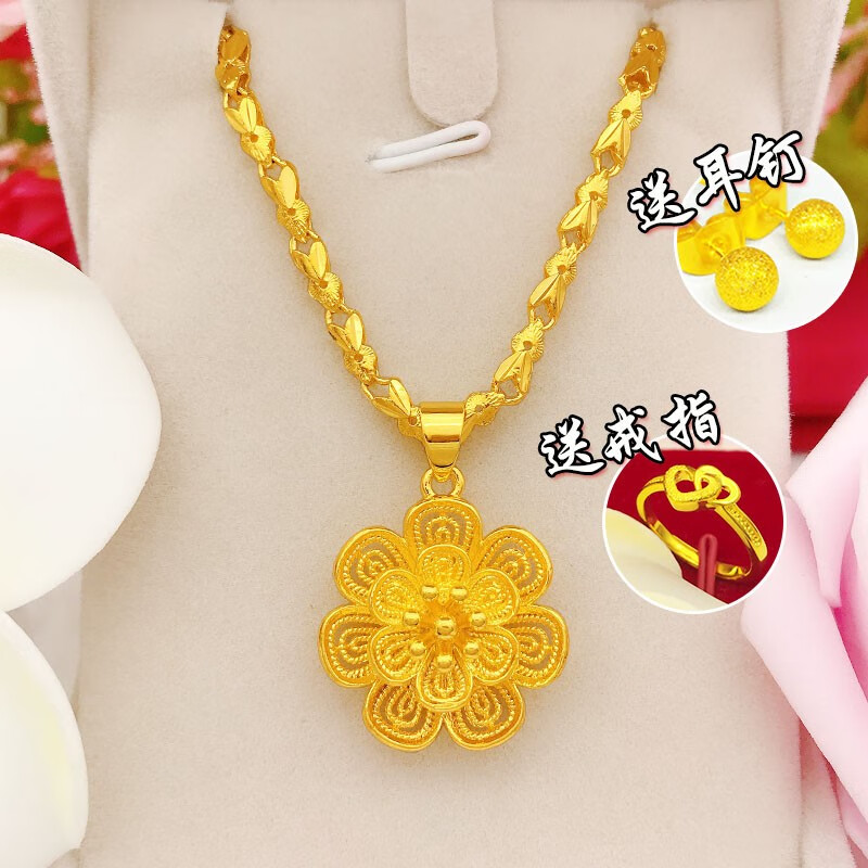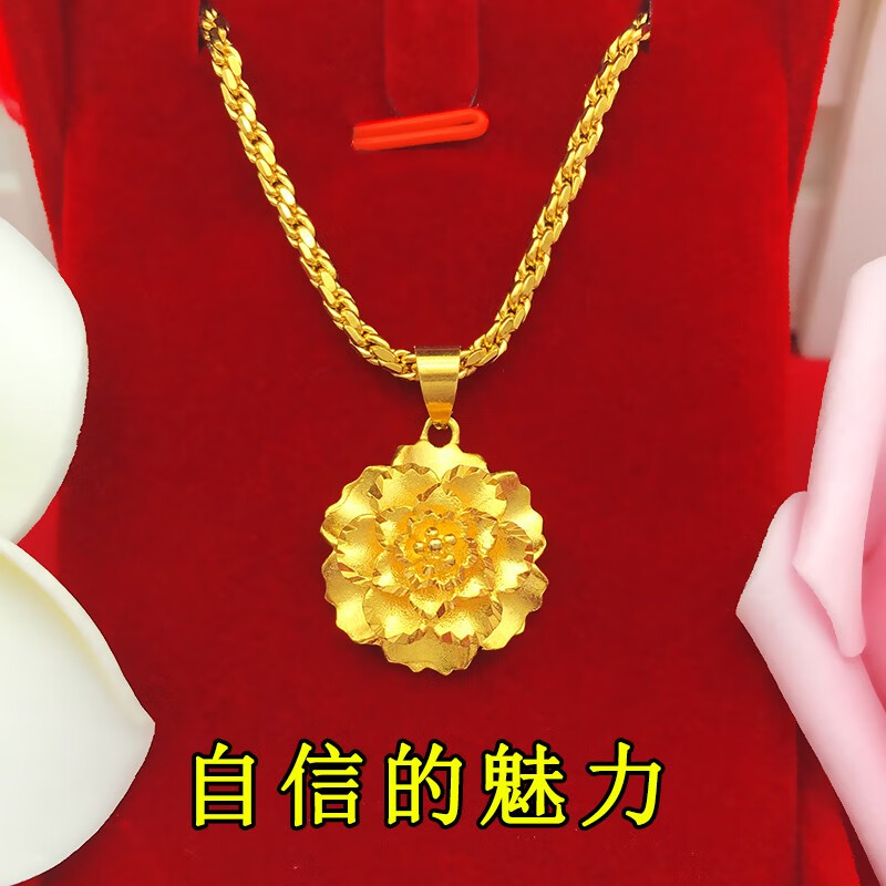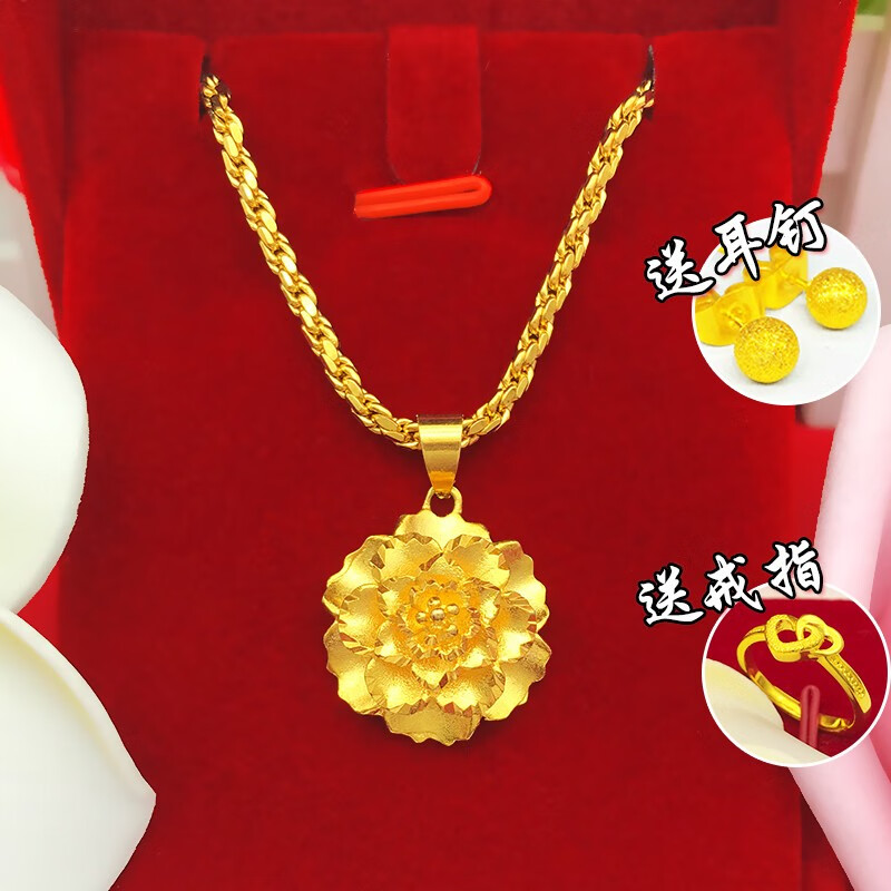 Vietnamese sand gold necklace for women 24k pure gold genuine 999 flower pendant that will not fade for a long time simulated gold-plated jewelry rabbit chain + peony flower 45cm