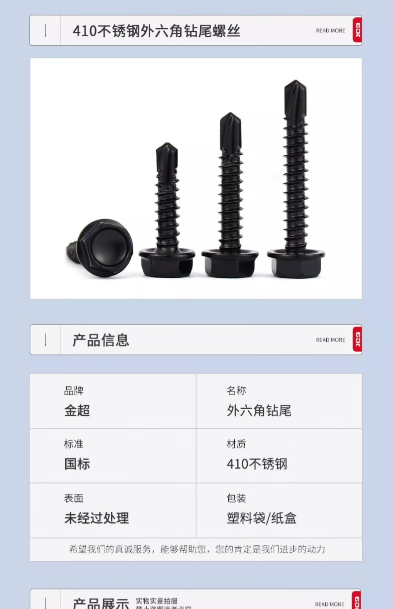Jinchao 410/304 stainless steel outer hexagon black 316 drill tail screw self-tapping self-drilling color steel tile dovetail screw nail M4.8*63 (10 pieces) black 410