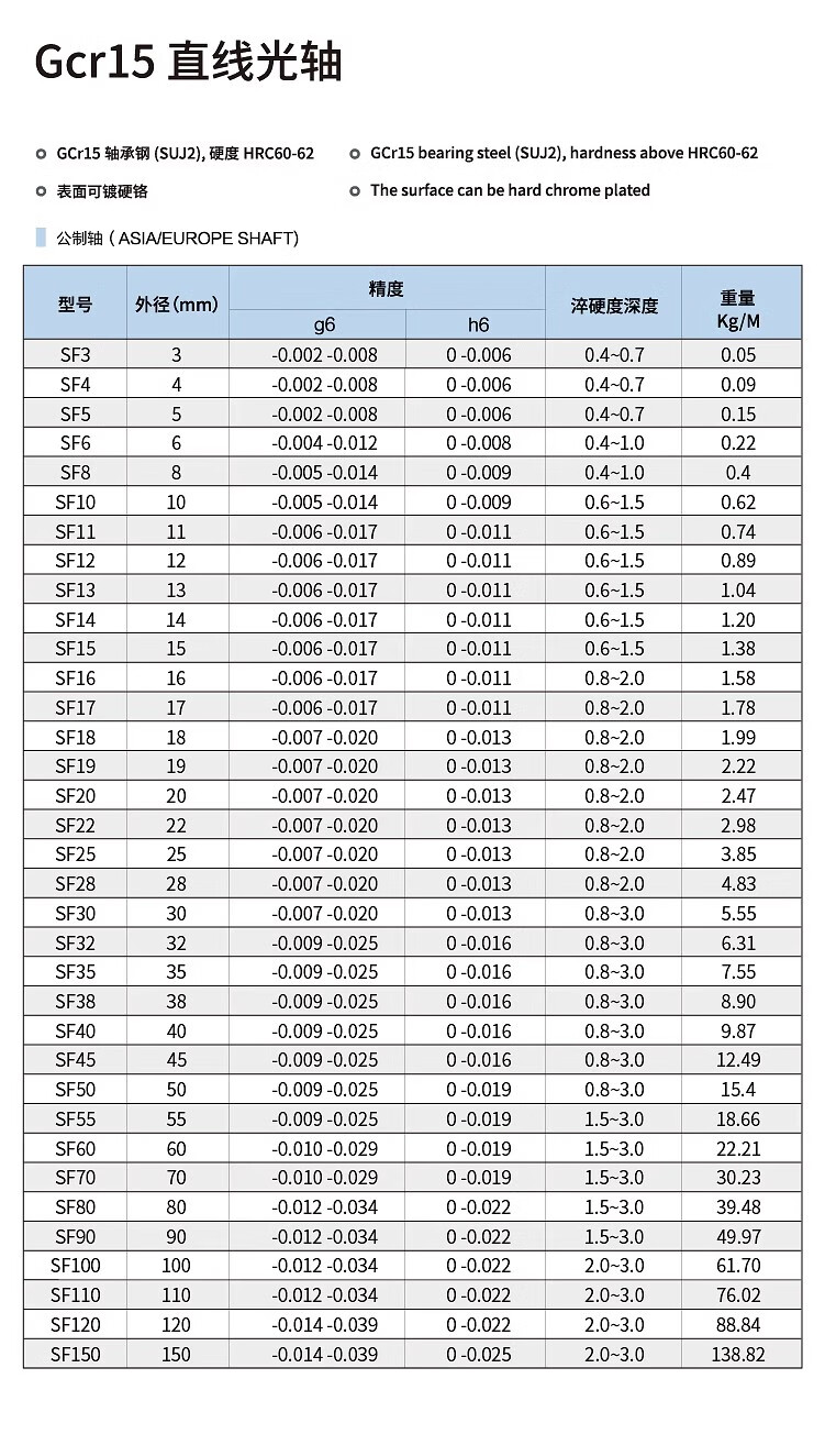 Imported Gcr15 bearing steel linear smooth shaft/hard shaft/chrome plated rod/diameter 3MM-80MM cylindrical piston polished rod diameter 5mm/10cm (imported Gcr15 material) within 72 hours