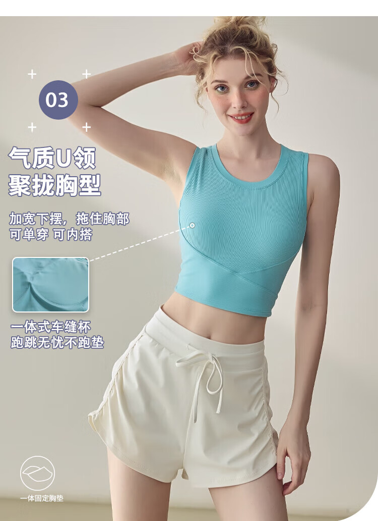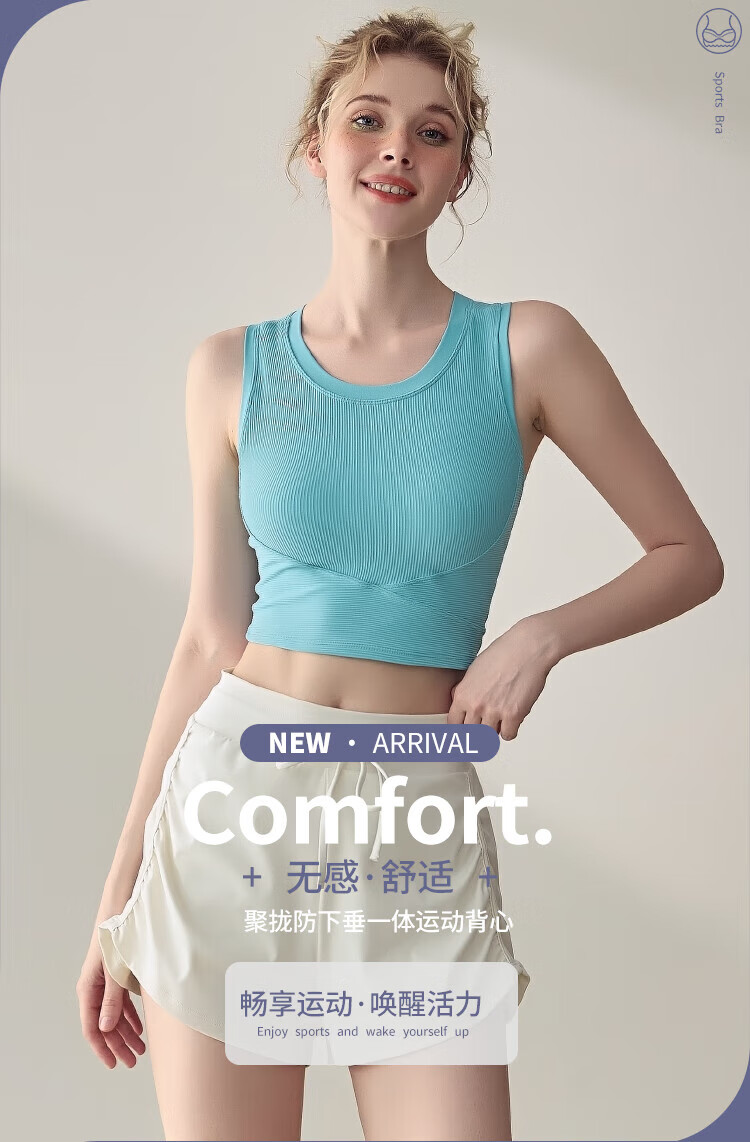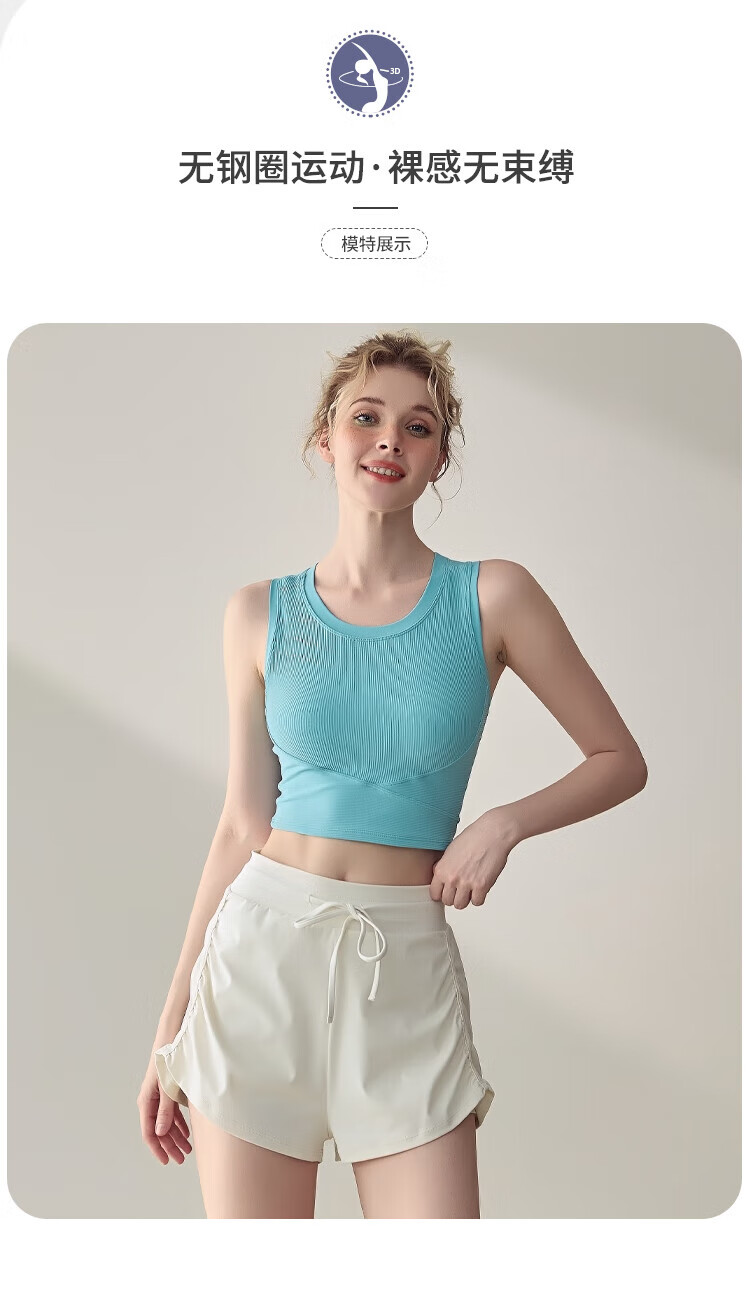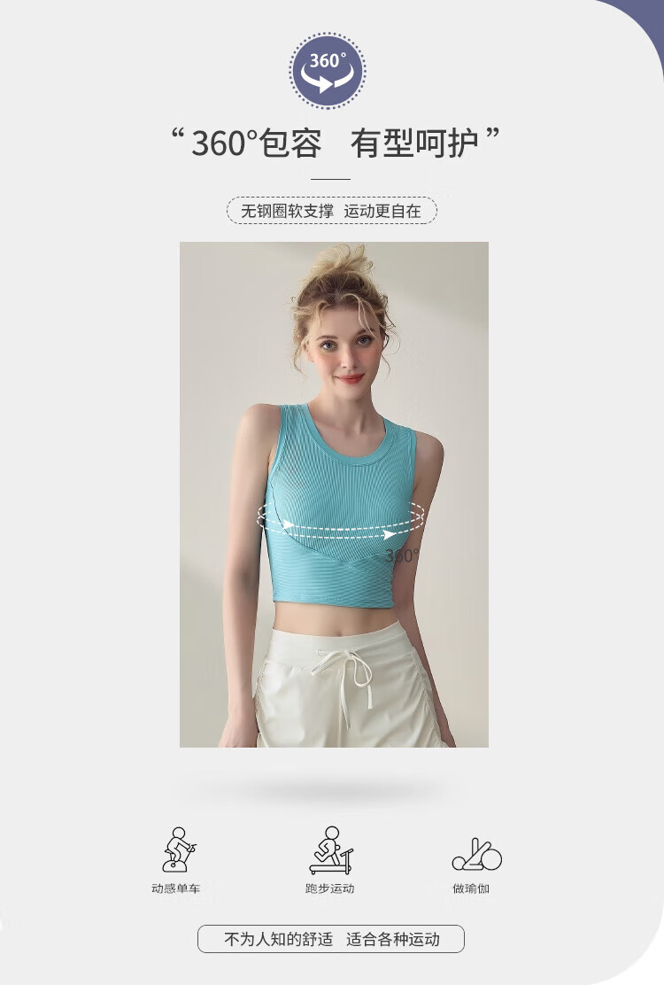 LULU CENTURY Yoga Suit Women's Shockproof All-in-One Pilates Training Wear Sports Vest Fitness Bra Trendy Blue M