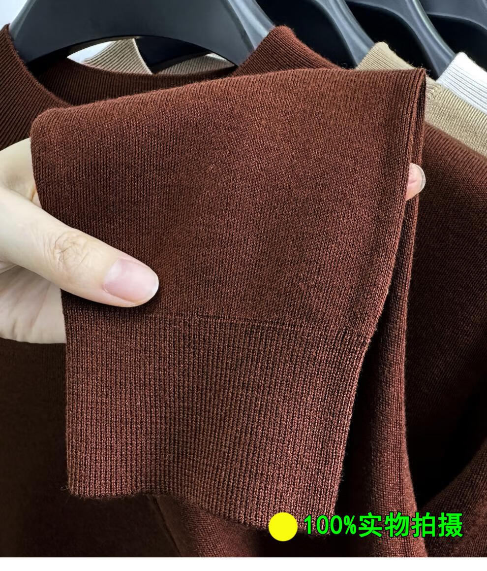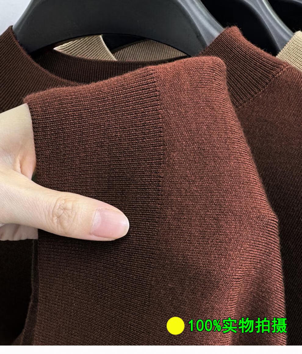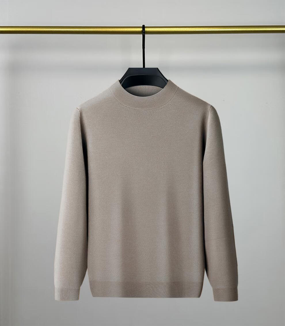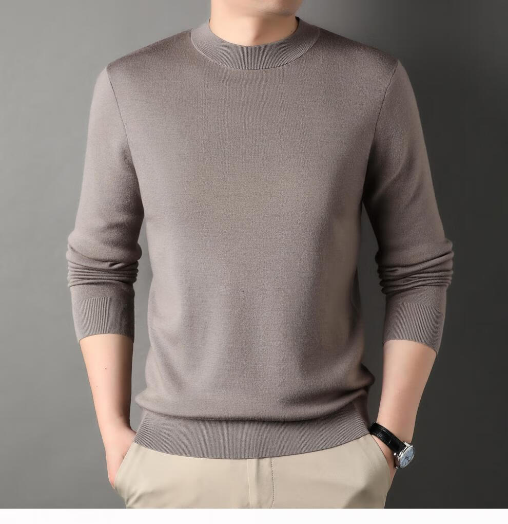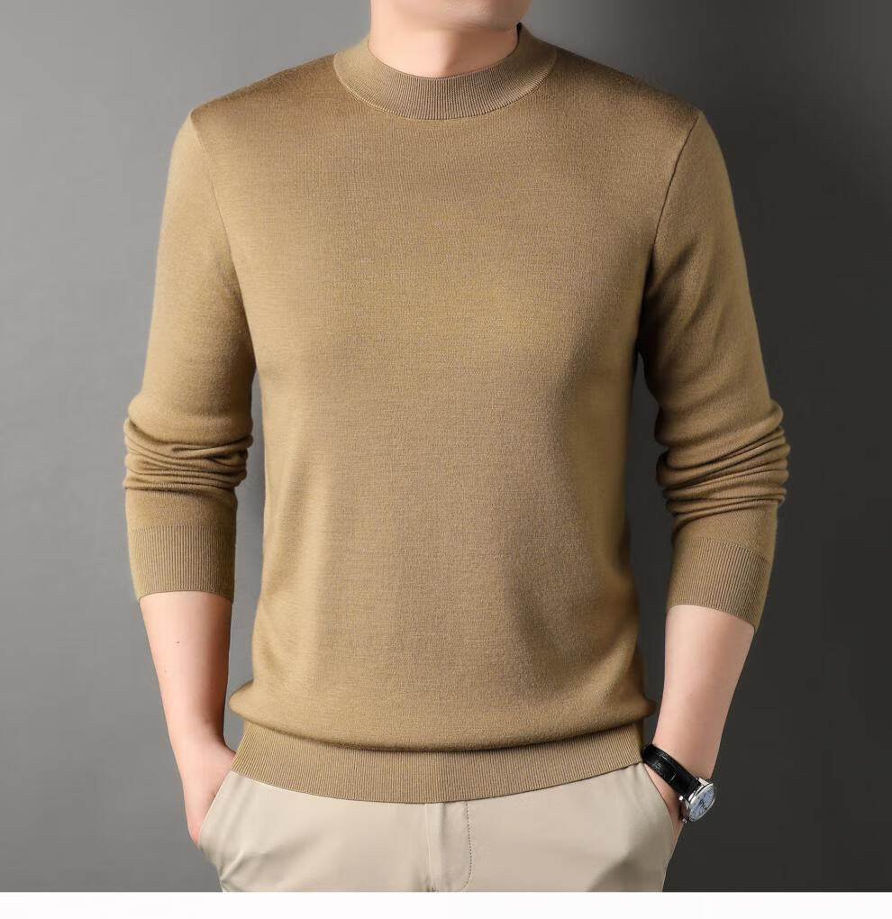 Hengyuanxiang 100% pure wool half turtleneck sweater for middle-aged men, thick imitation knitted bottoming shirt, loose dad sweater, light brown, worsted pure wool XL 175 140 to 155Jin Jin is equal to 0.5 kg