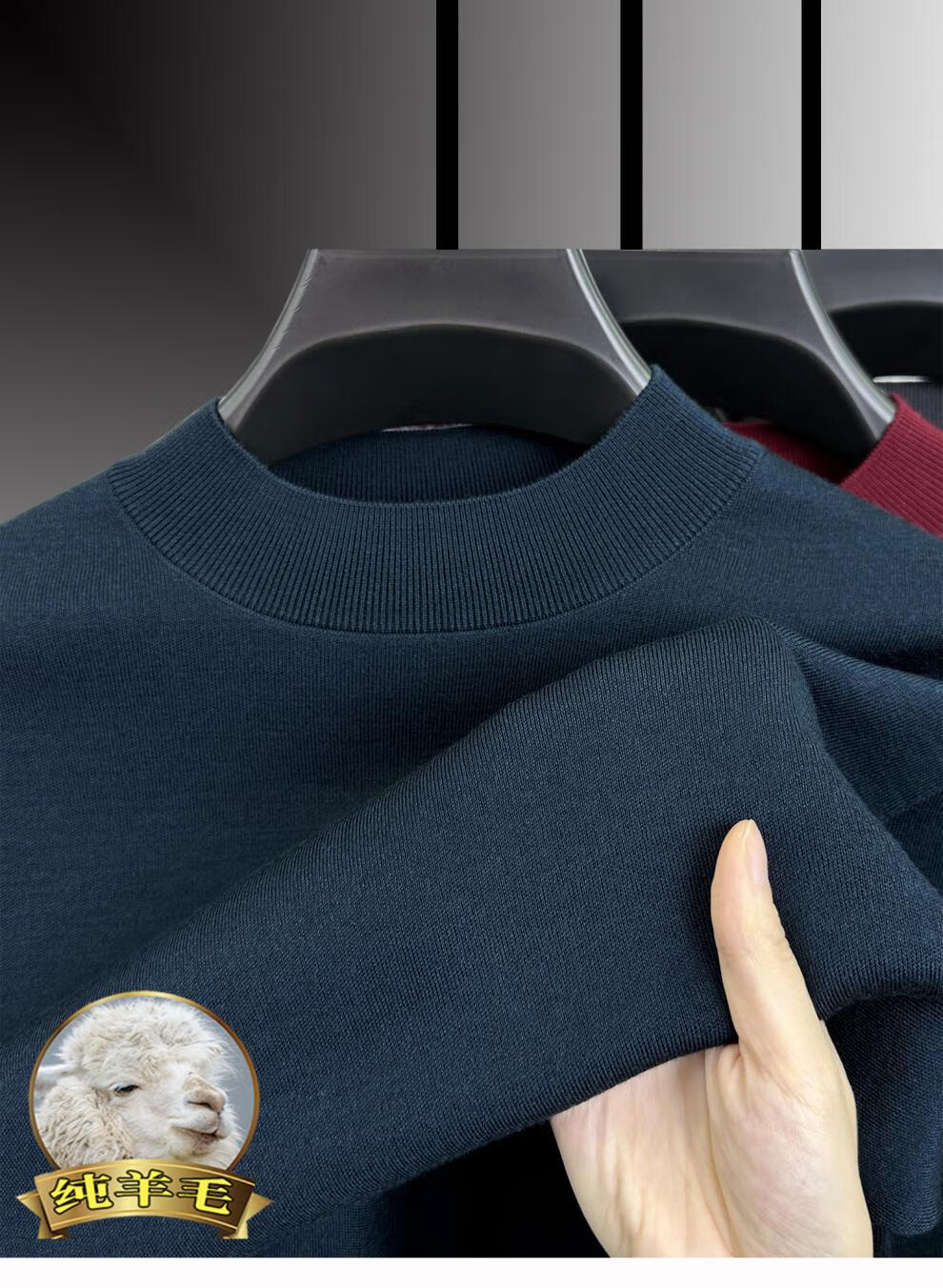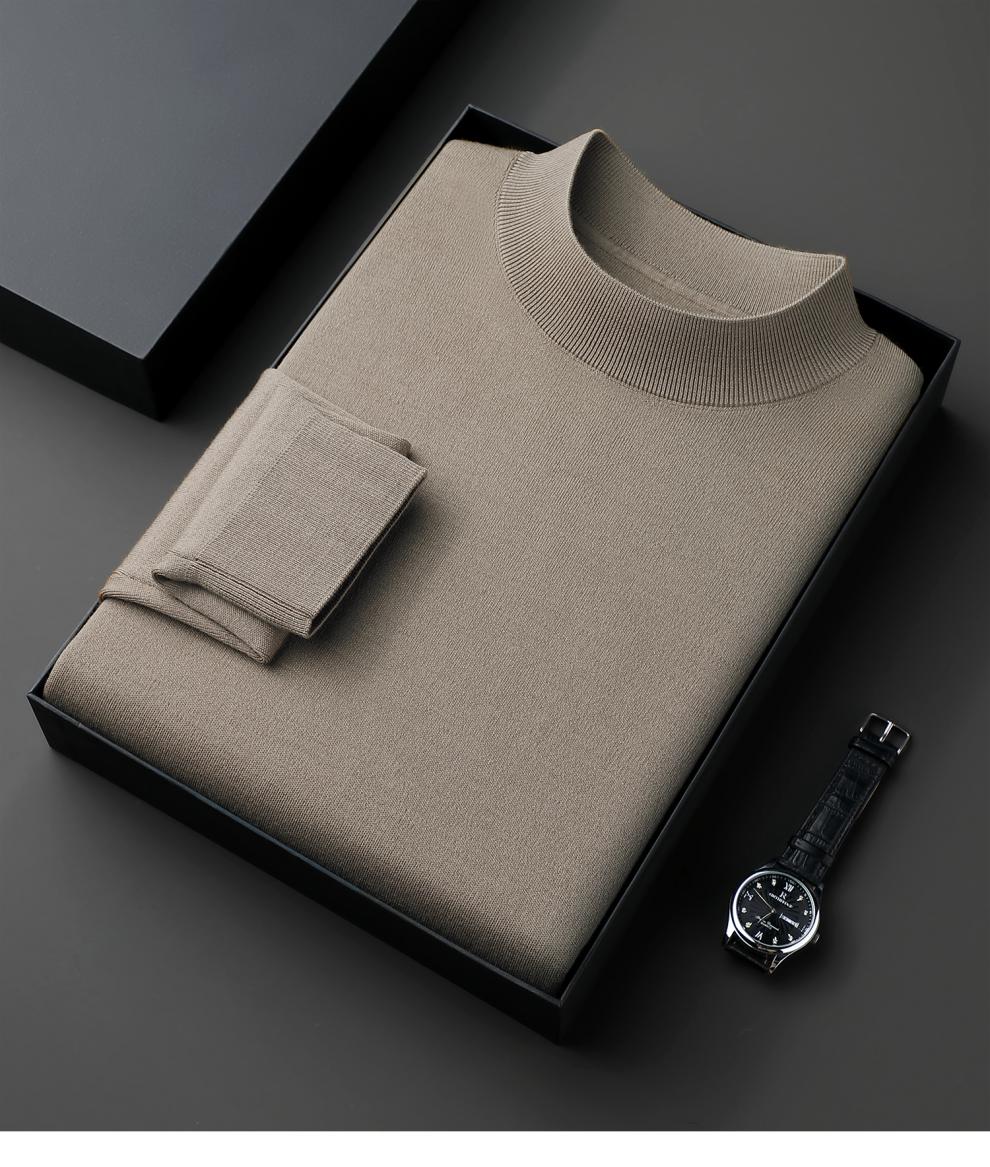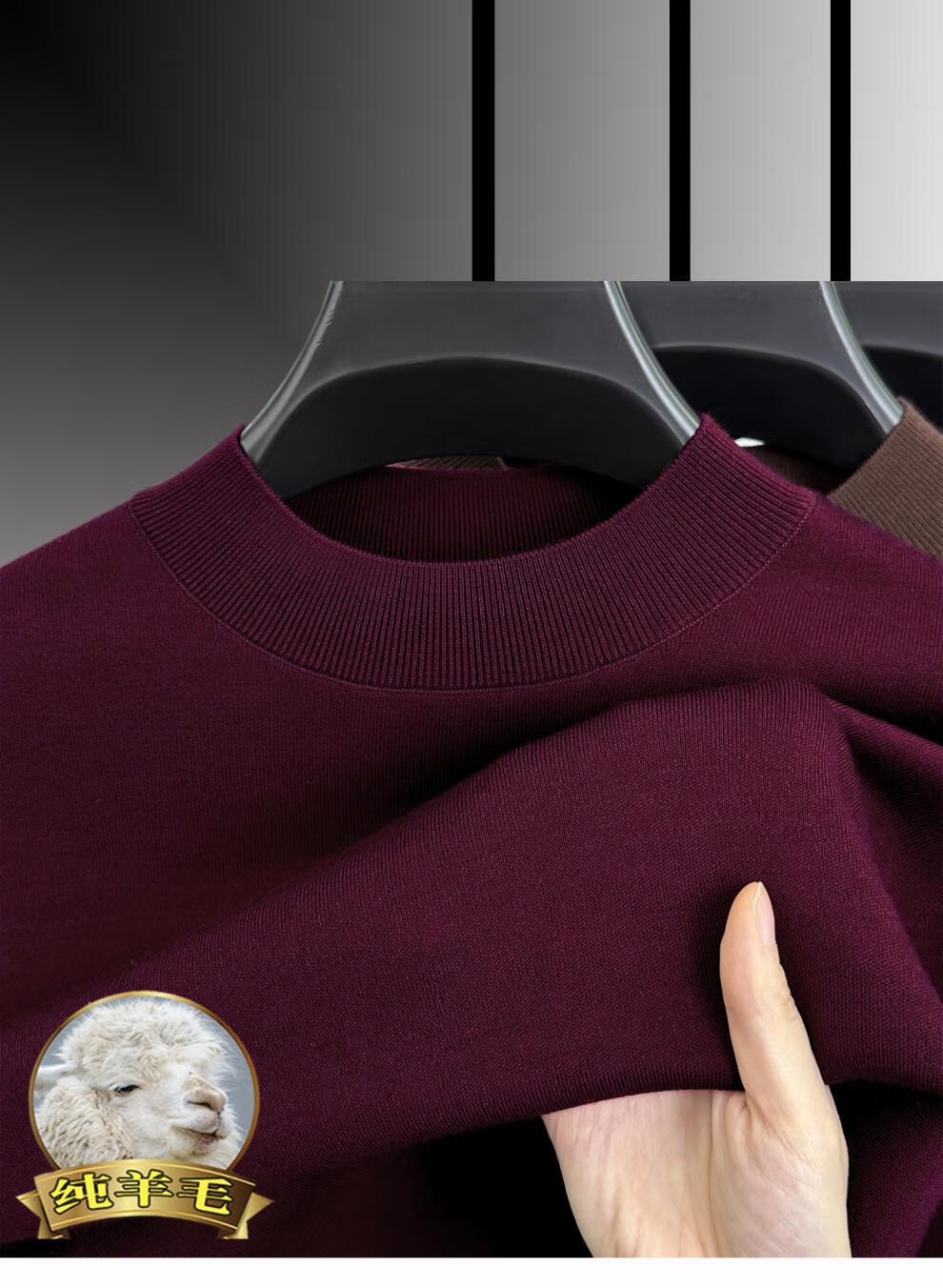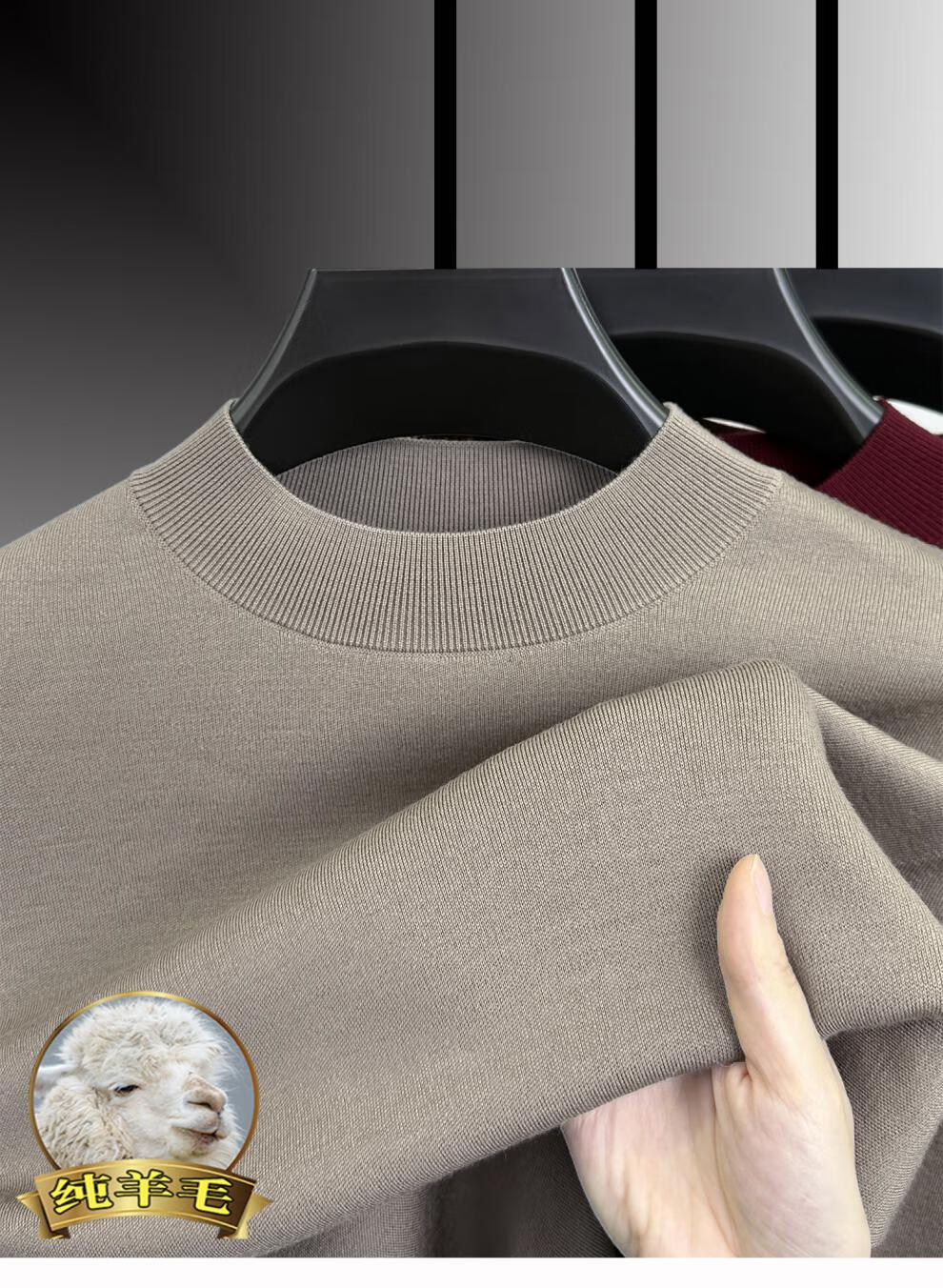 Hengyuanxiang 100% pure wool half turtleneck sweater for middle-aged men, thick imitation knitted bottoming shirt, loose dad sweater, light brown, worsted pure wool XL 175 140 to 155Jin Jin is equal to 0.5 kg
