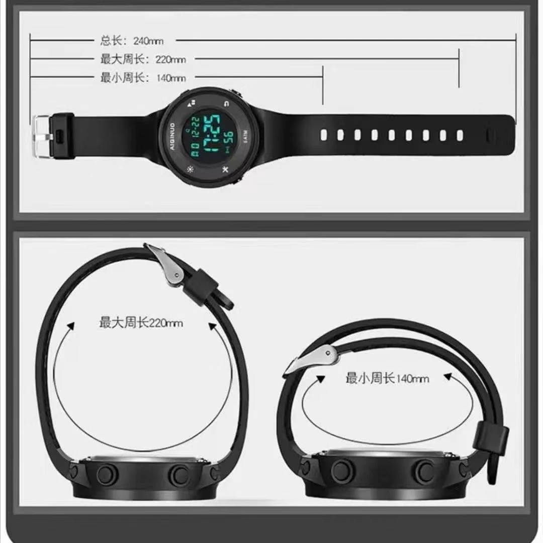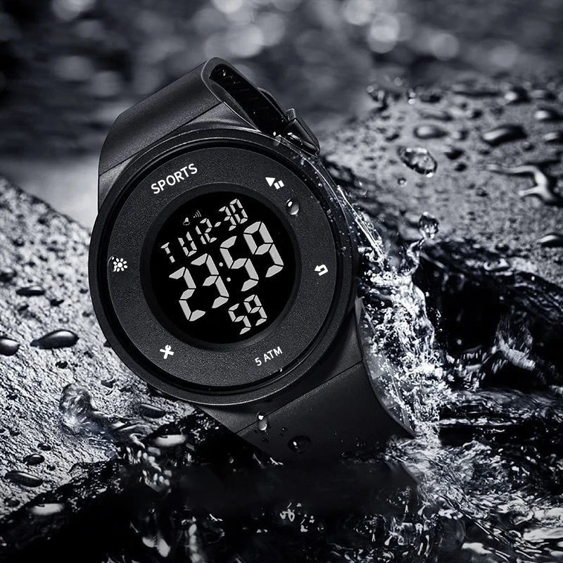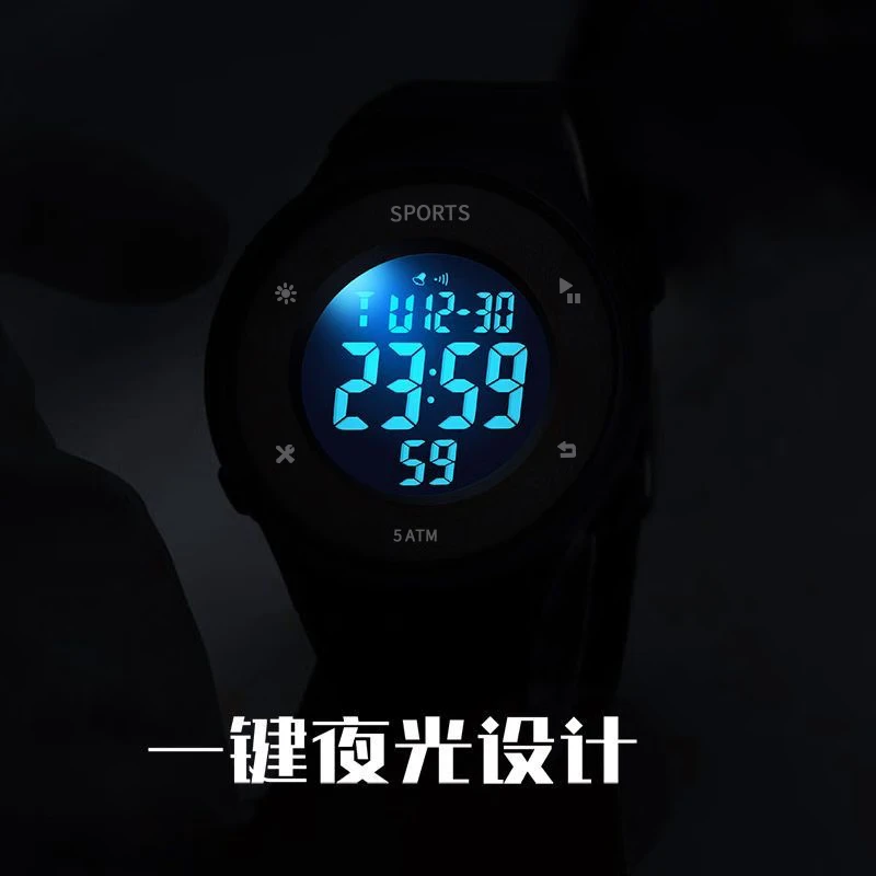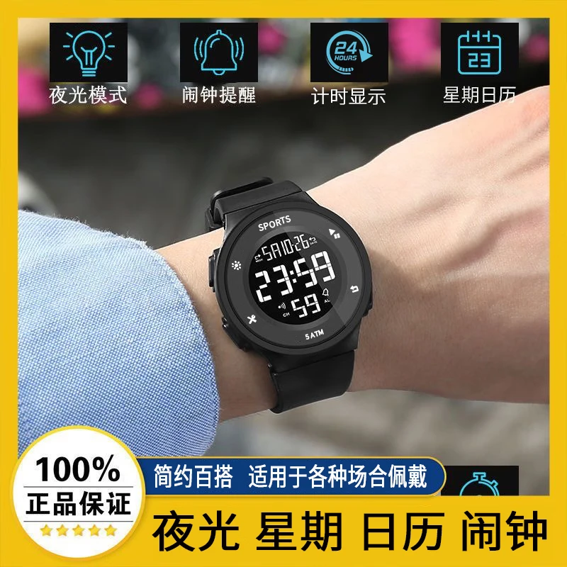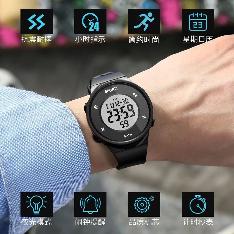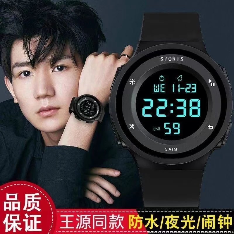 Electronic watch for students, boys and teenagers, trendy middle school and high school ins new sports simple outdoor watch, black black screen