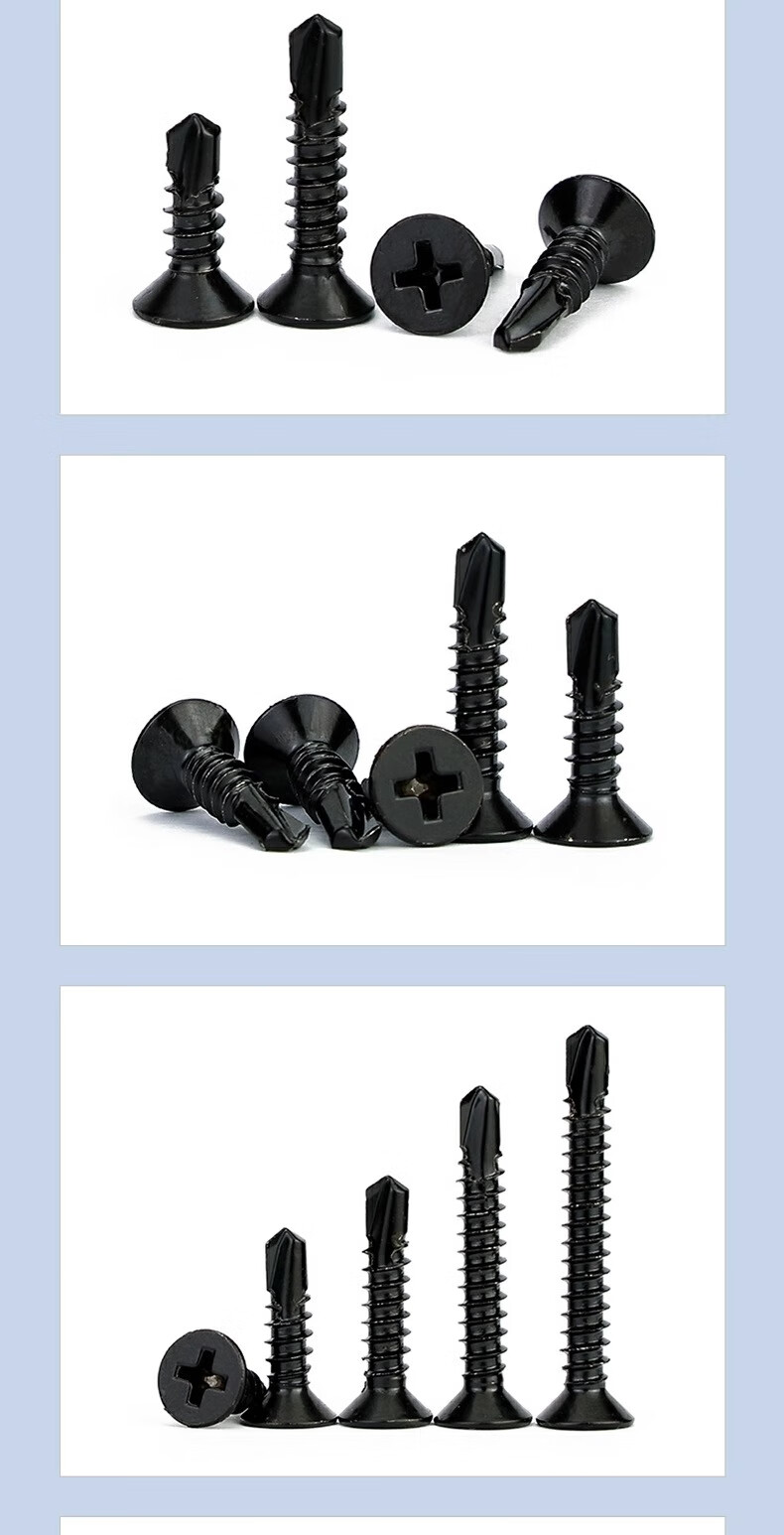 Jinchao 410 stainless steel black zinc cross countersunk head flat head drill tail screw self-tapping self-drilling screw countersunk head dovetail wire M4.2*25 (50 pieces) black 410
