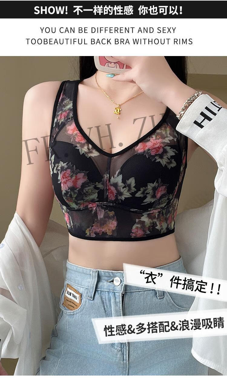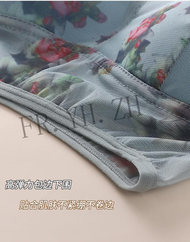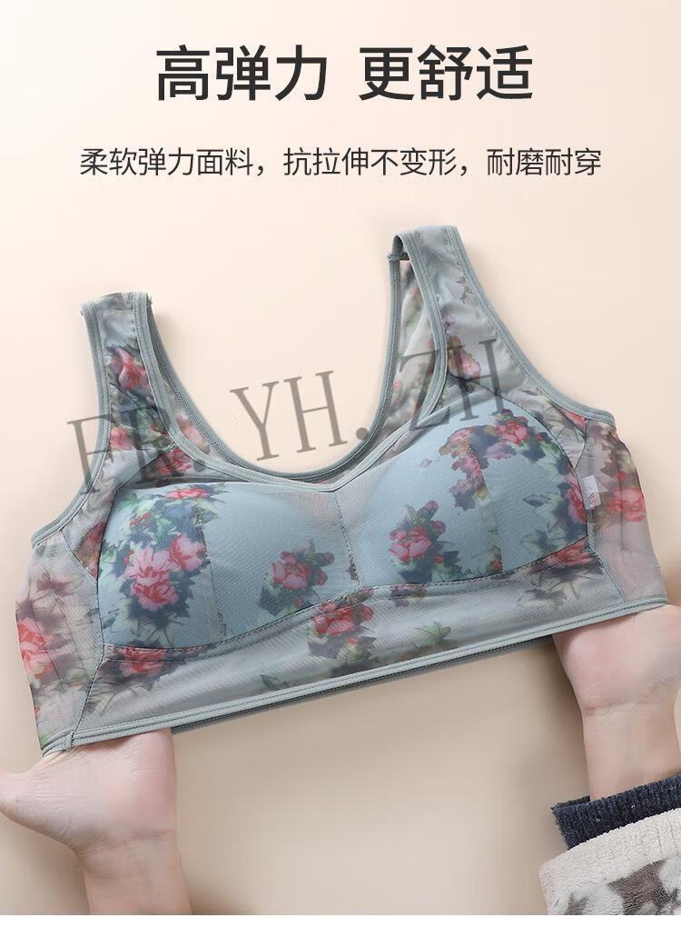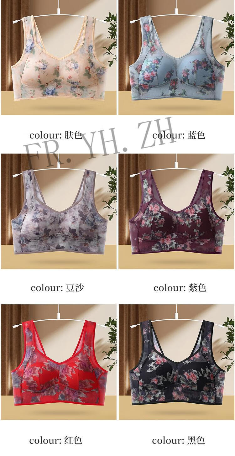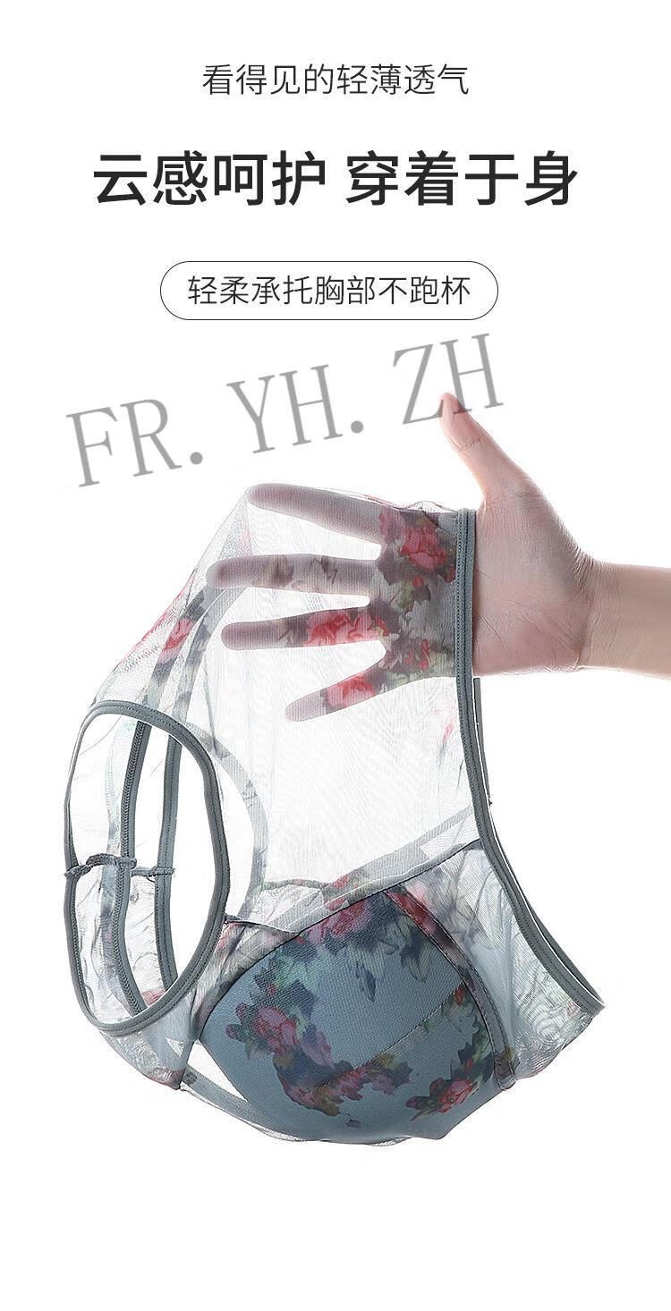 FR.YH.ZH Lianmanni middle-aged and elderly unbreasted underwear lace sports beautiful back push-up no rims big breasts small bra blue 4L140-160Jin Jin equals 0.5 kg