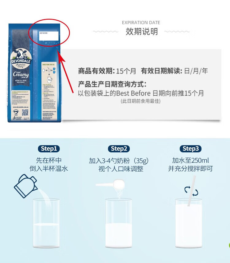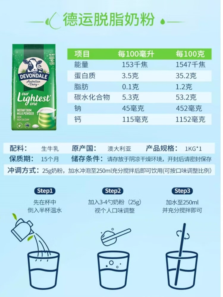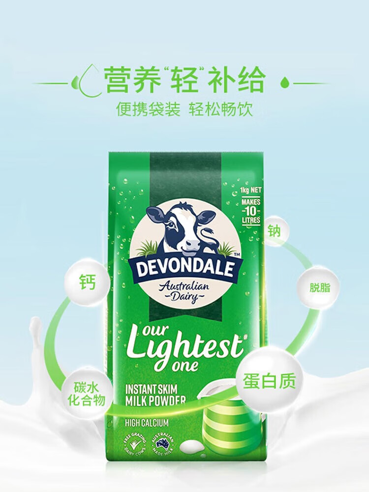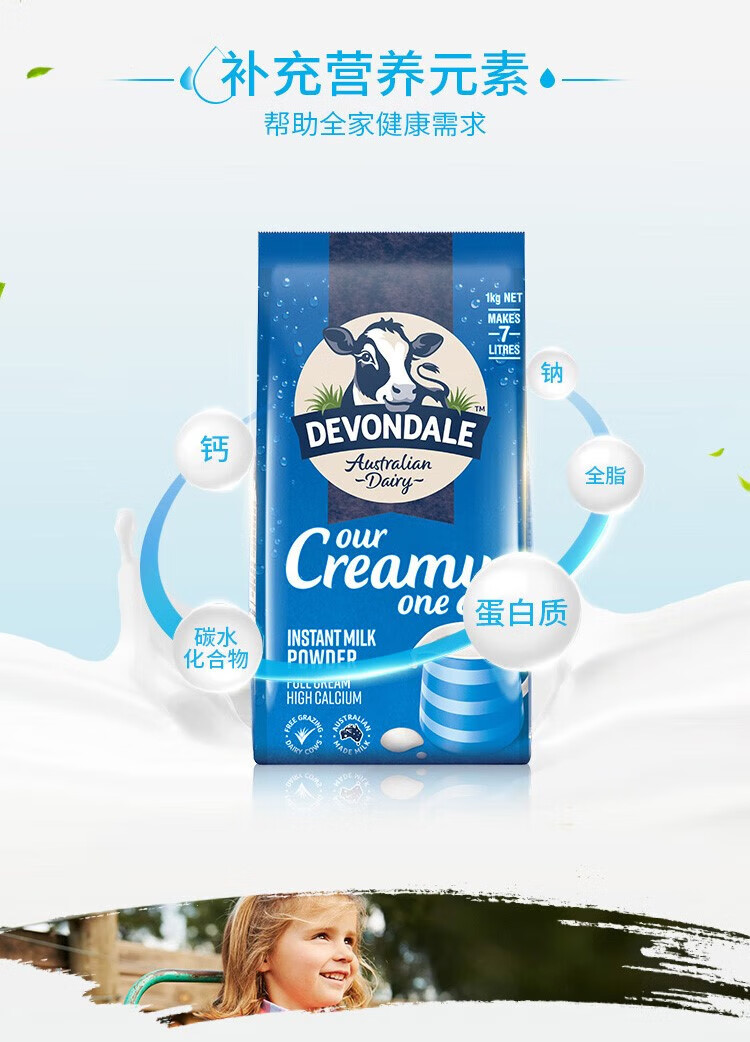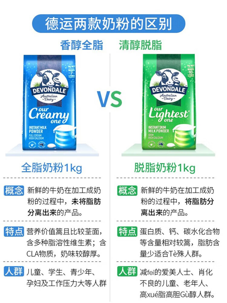 DEVONDALE milk powder for middle-aged and elderly people, high calcium milk powder for students and ladies, nutrition, Australian imported milk 1kg, full fat 1000g*2 bags