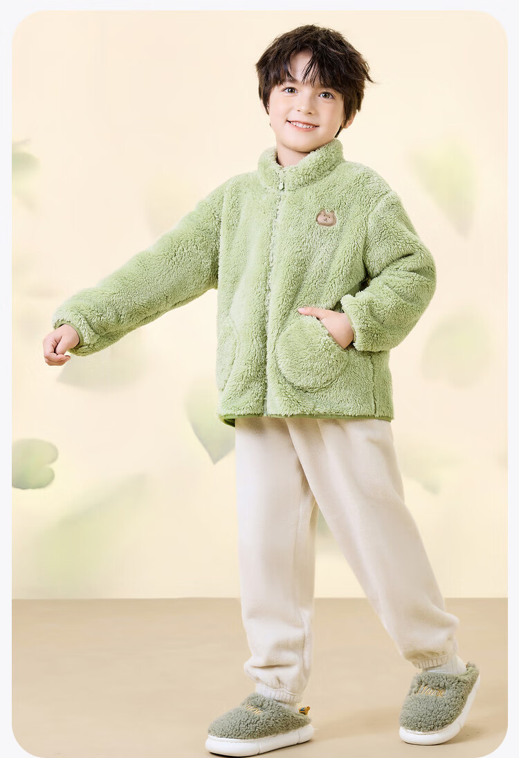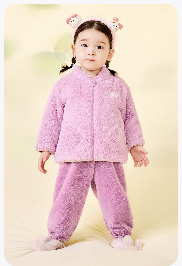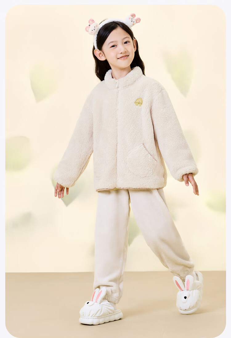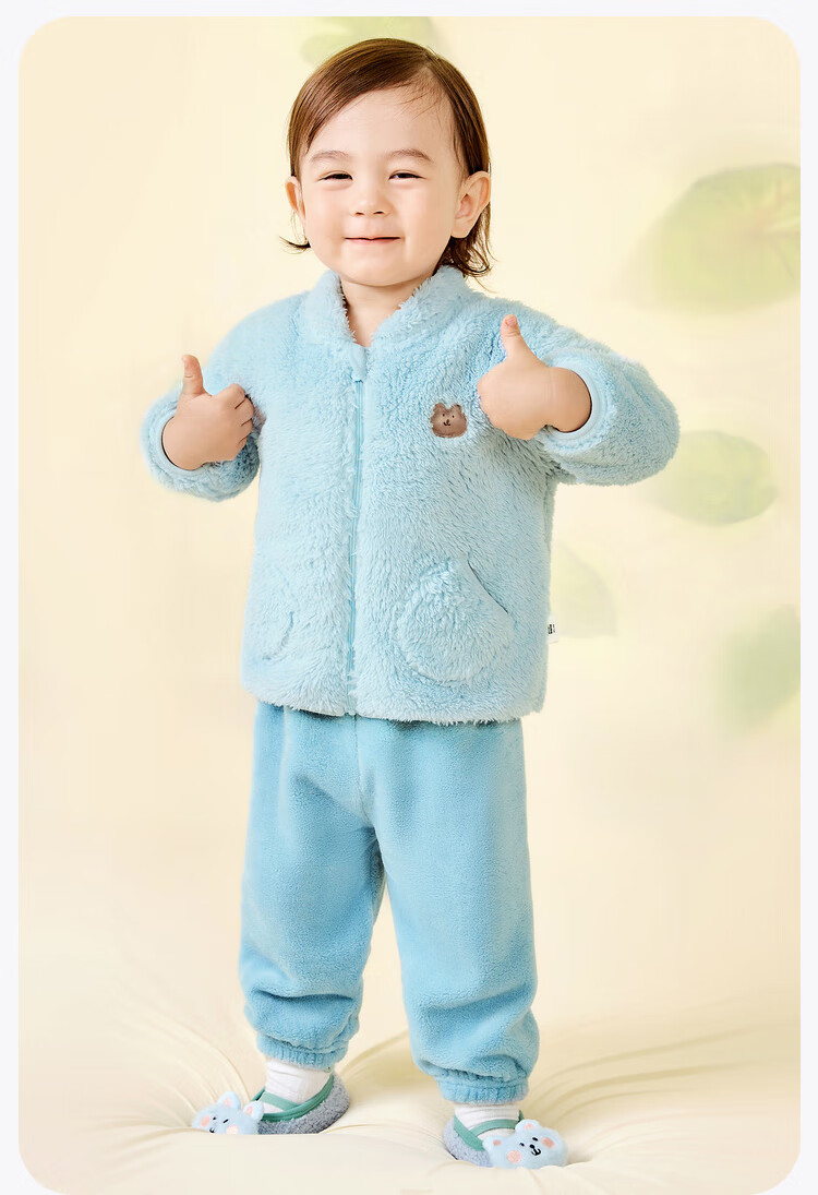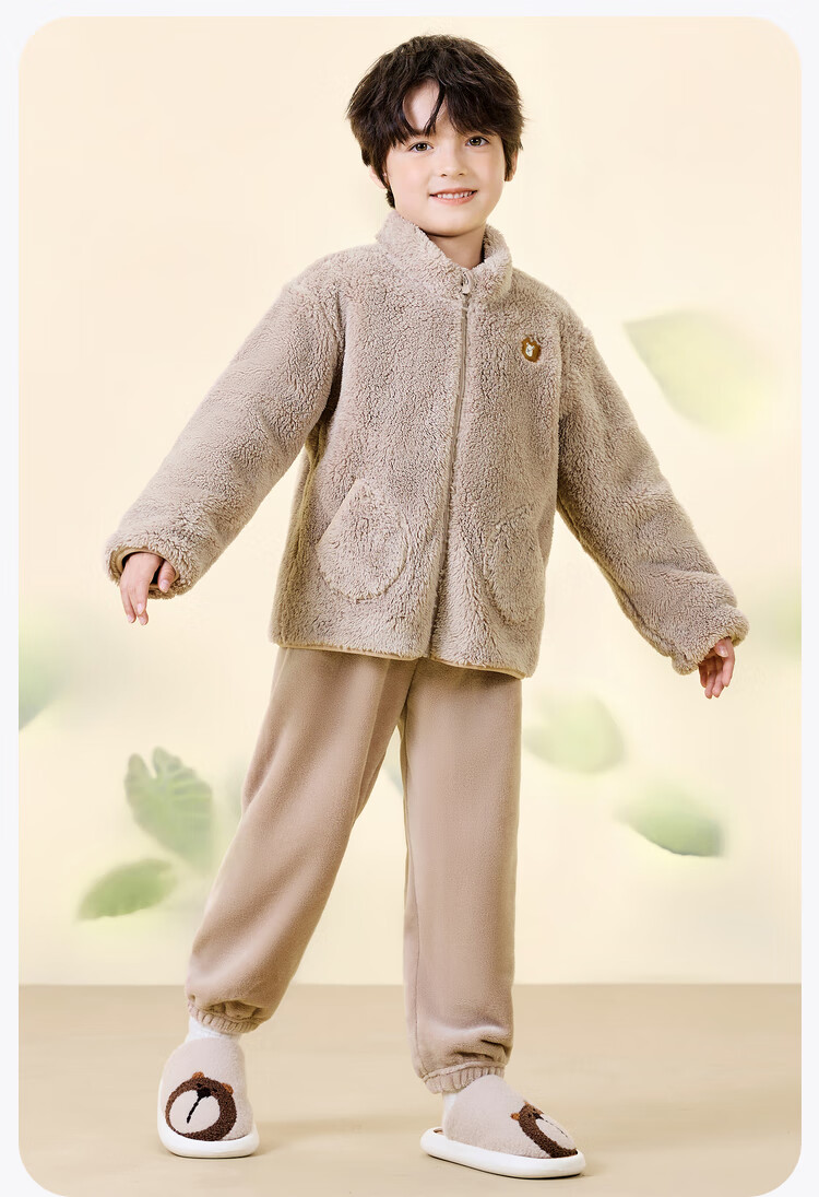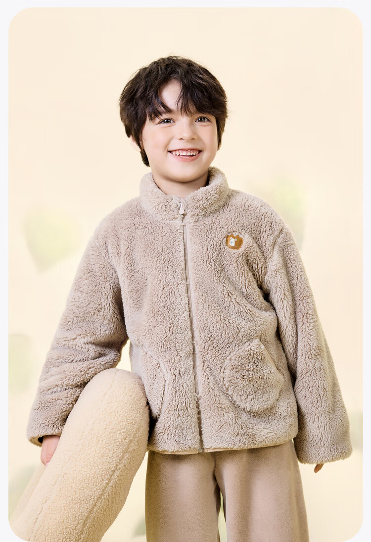 Mini Bala Warm Core Double-sided Velvet Home Warm Jacket for Boys and Girls, Baby Belly Protective Plush Jacket, Light Khaki 50311 90