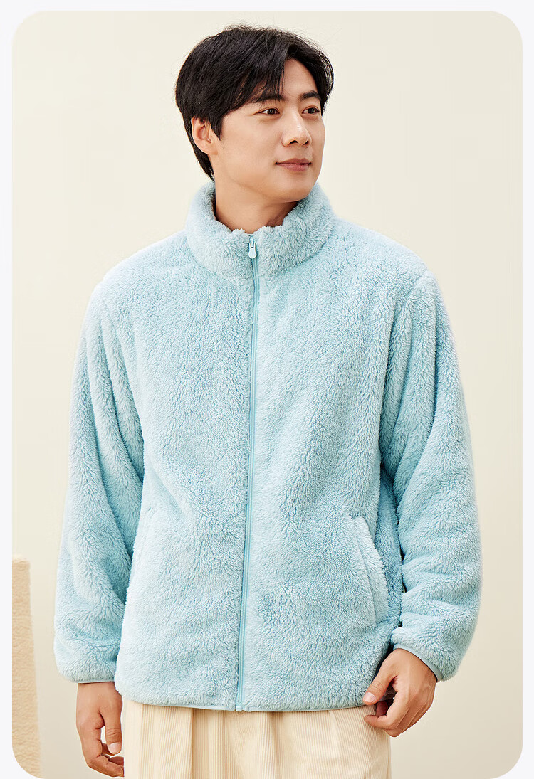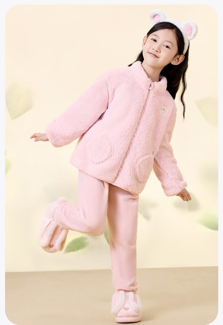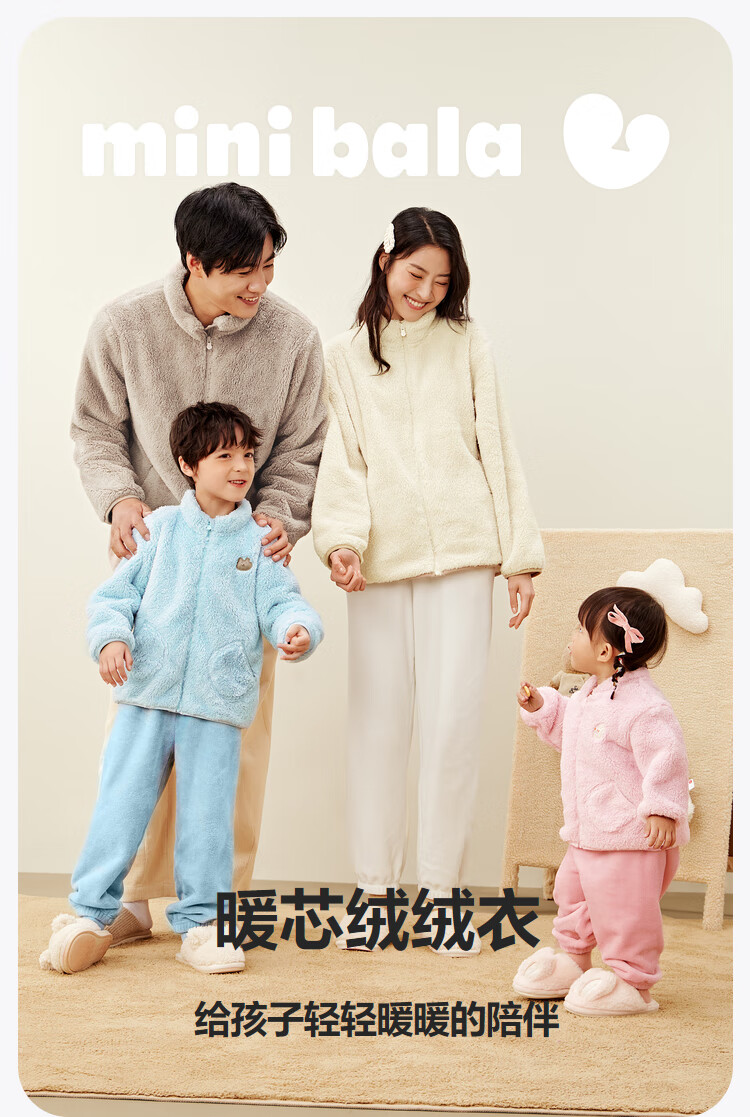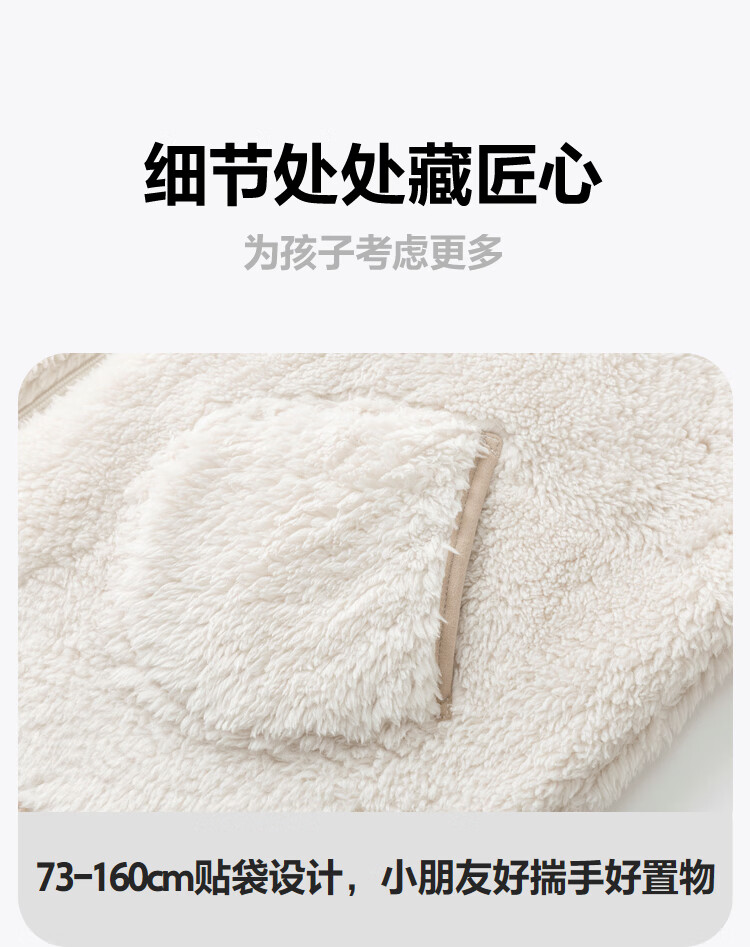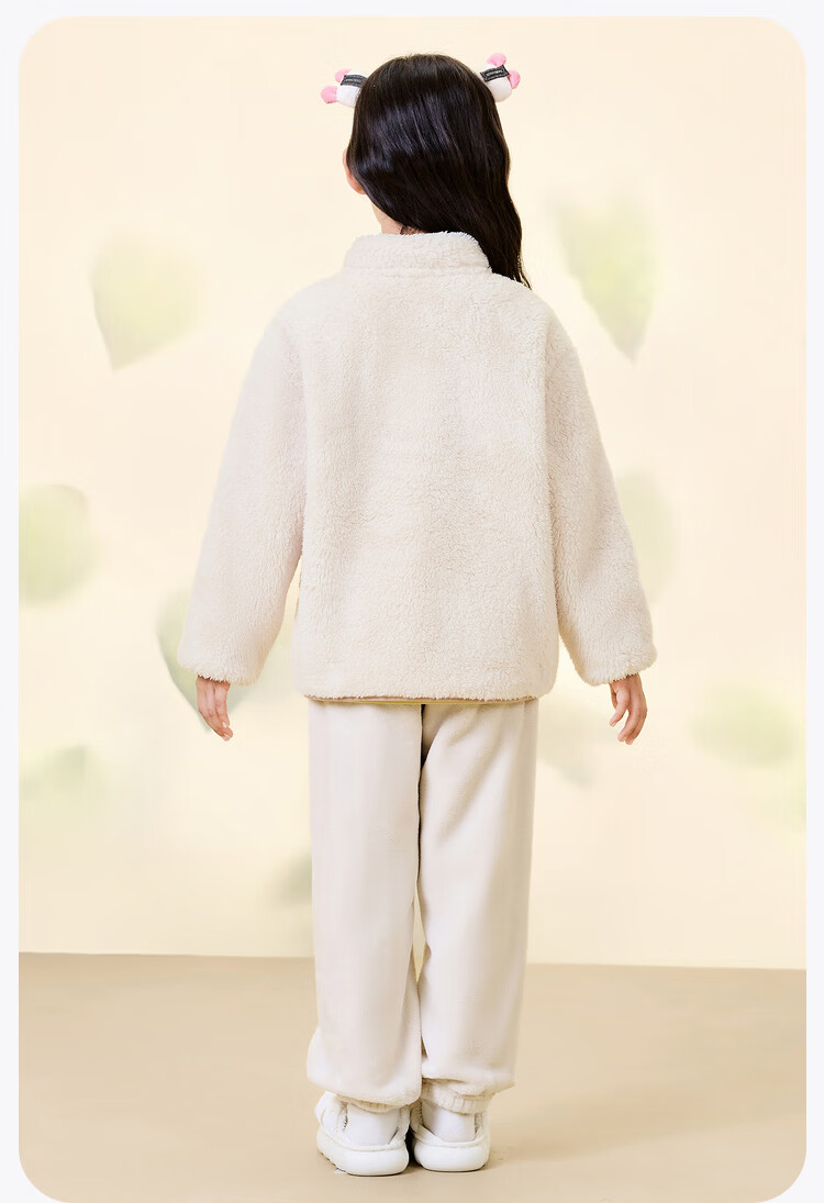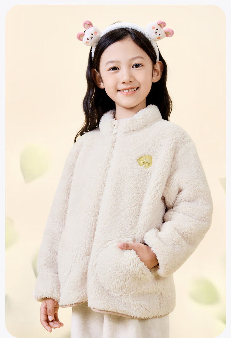 Mini Bala Warm Core Double-sided Velvet Home Warm Jacket for Boys and Girls, Baby Belly Protective Plush Jacket, Light Khaki 50311 90