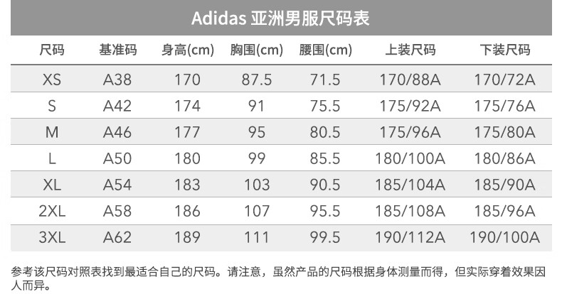 China (cm) 165 / 88-90 170 / 96-98 175 / 108-110 180 / 118-122 185 / 126-130