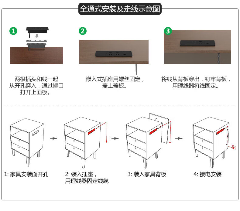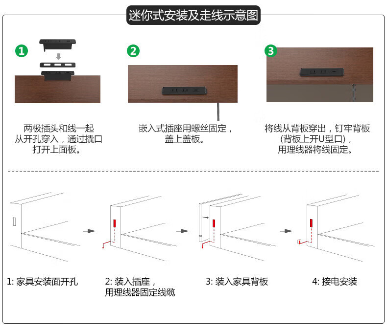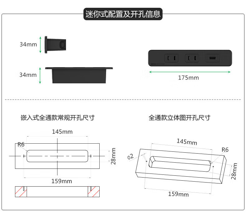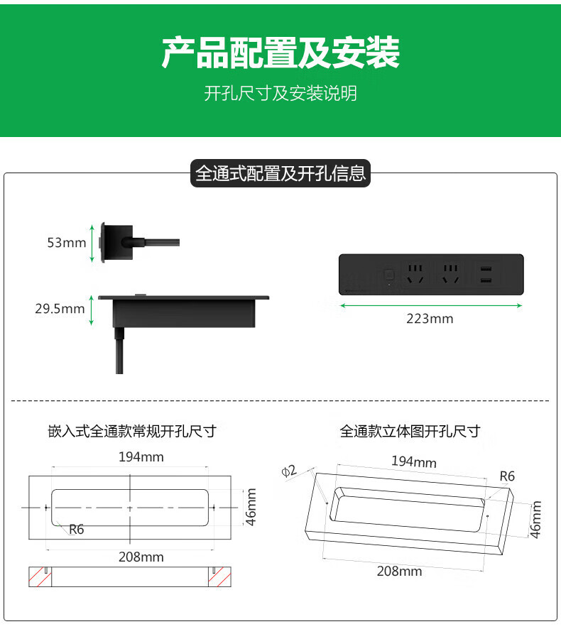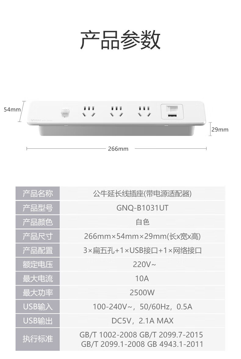 BULL Embedded Socket Panel Desktop Porous Furniture Desk Cabinet Cabinet Plug Strip Strip with Line One-Button Master Control Five Holes with USB Telephone Whole House Electrician Electrical Materials Two 5 Holes + 2 USB/Add Cable Total 1.8 Meters/Black
