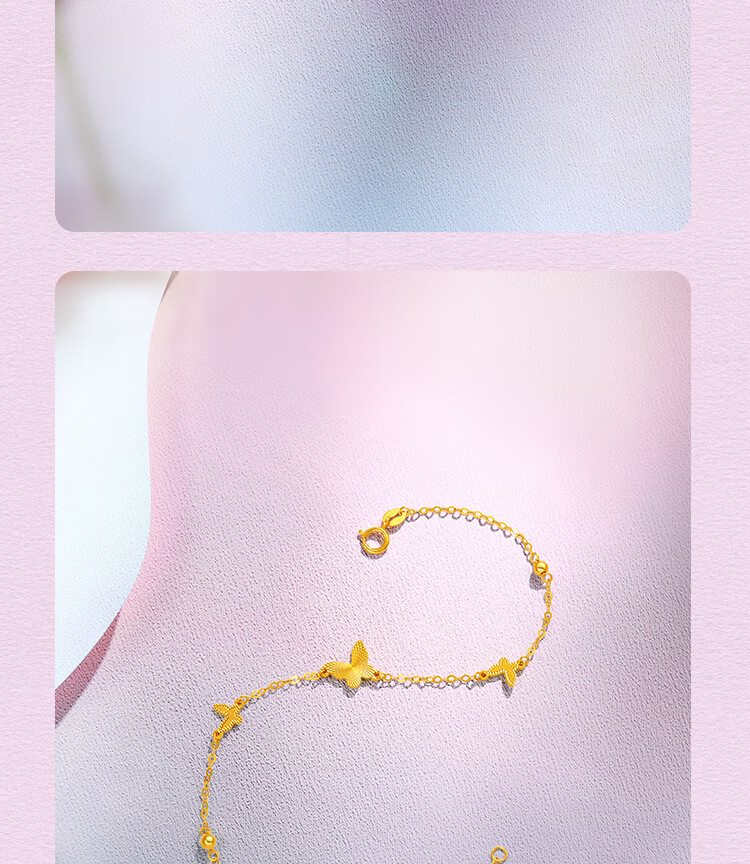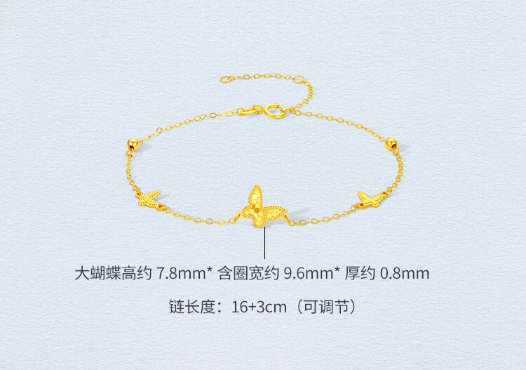 Saturday Blessing Yellow 18K Gold Bracelet Women's Fashion Sweet Butterfly Gold Bracelet as a Holiday Gift for Girlfriend 16+3cm Tail Chain