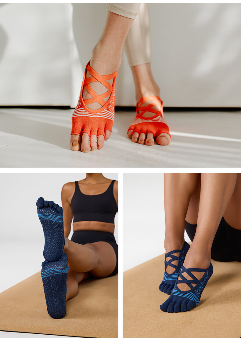 Toesox yoga socks, toe socks, non-slip, Pilates dance sports socks, taro powder (full toe) S (size 34~38)