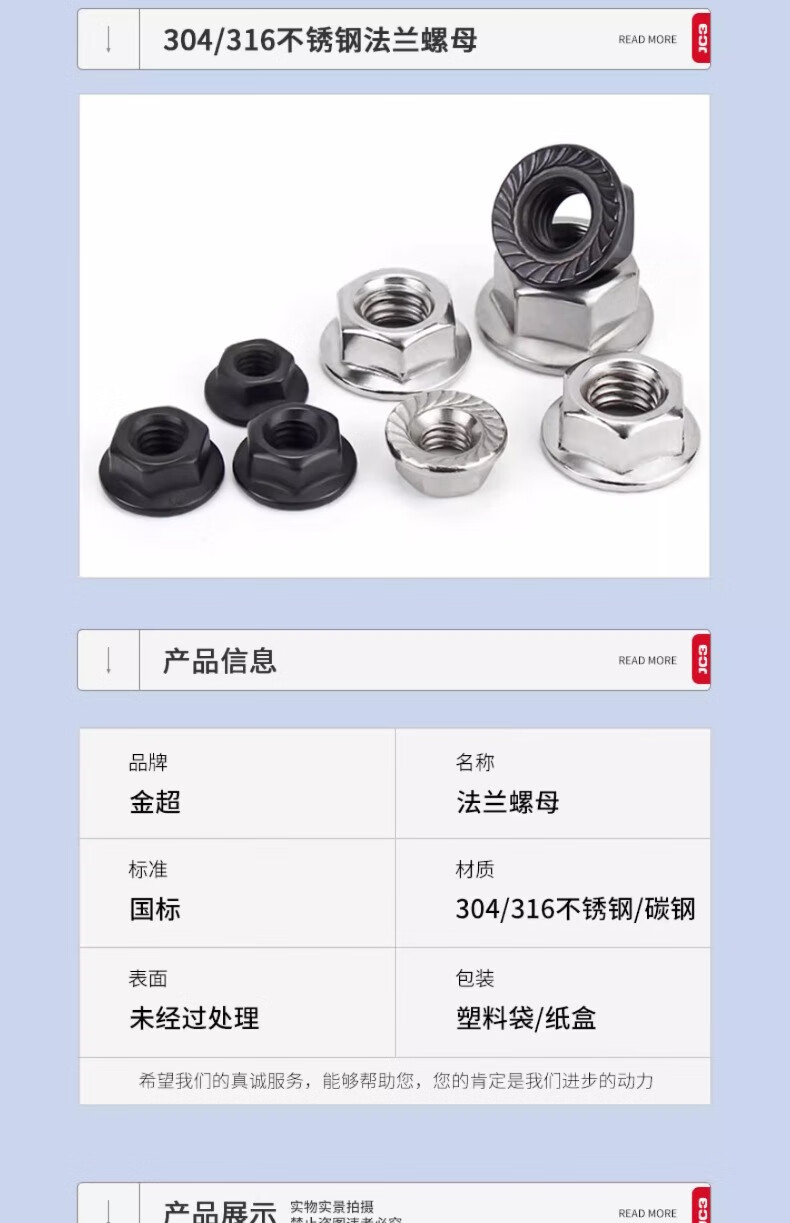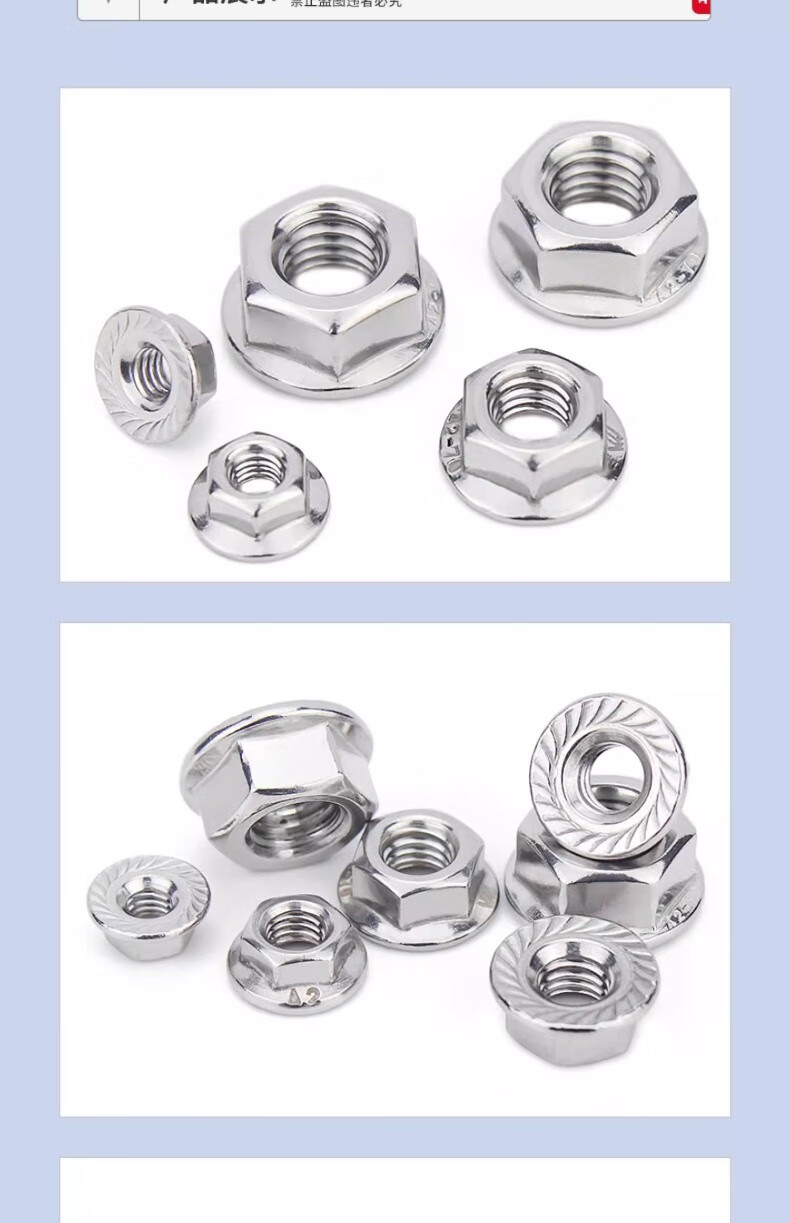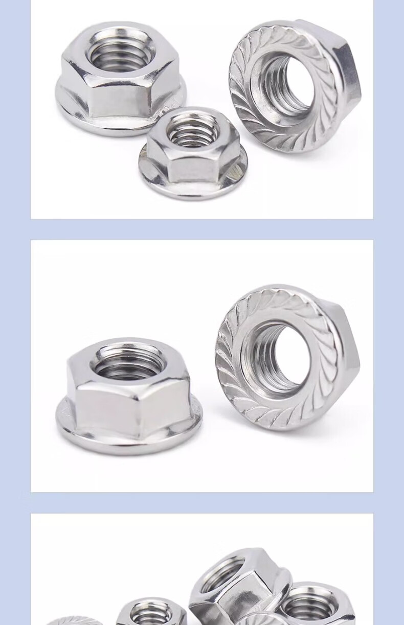 Jinchao 201/304 stainless steel flange nut 316 anti-slip locking cap fine hexagonal counter-tooth padded anti-loosening nut M10 (5 pieces) Dacromet