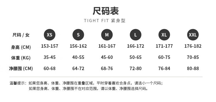 China (cm) 160-165/84-86 165-170 / 88-90 167-172 / 92-96 168-173 / 98-102 170-176 / 106-110