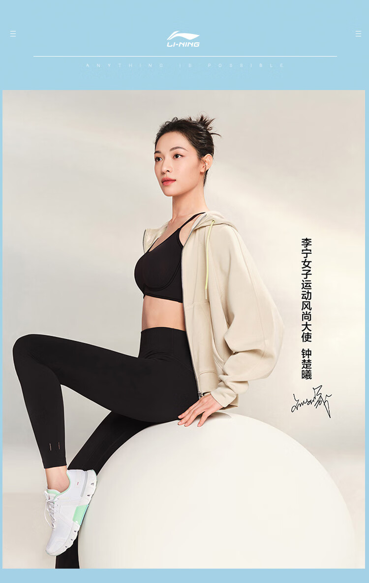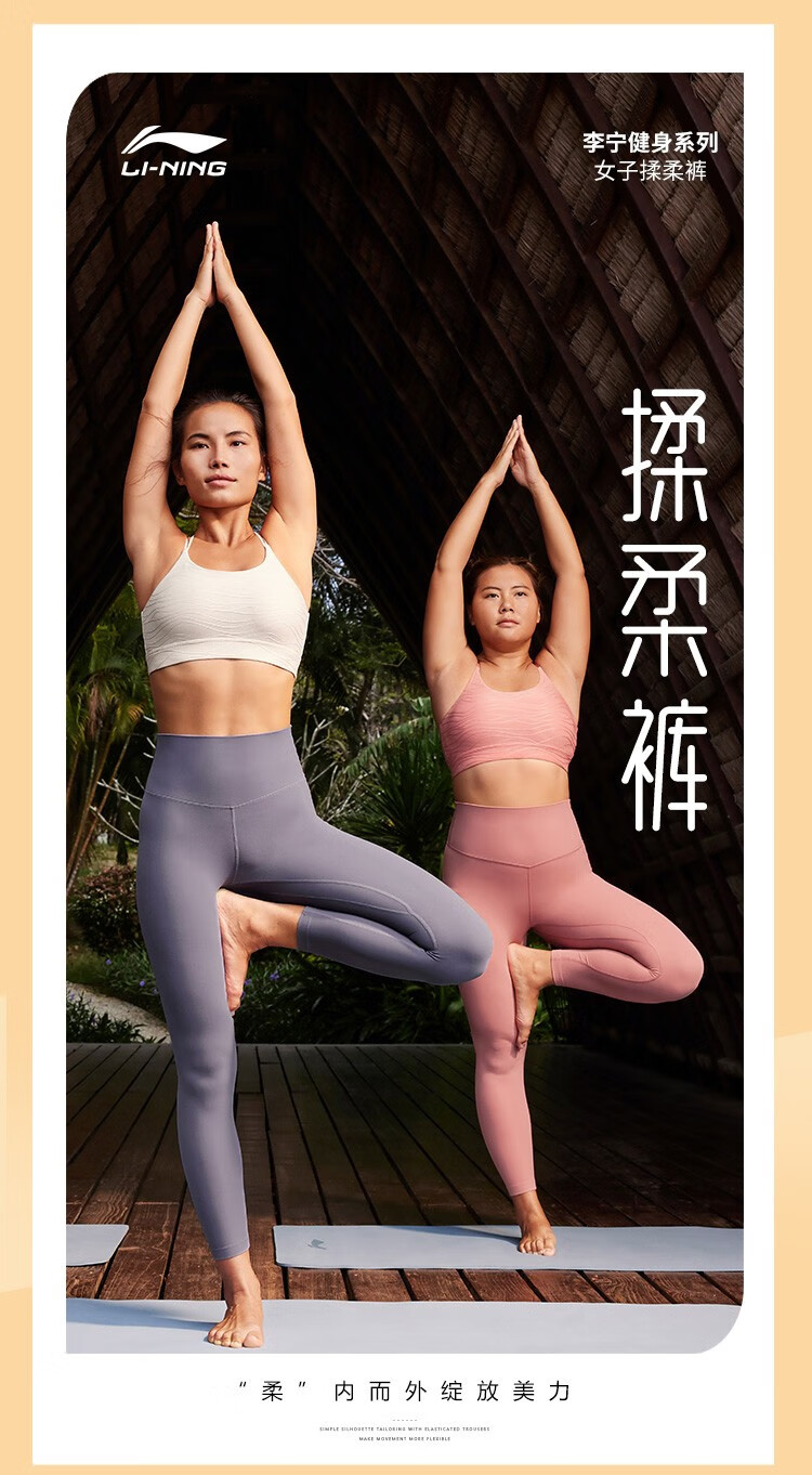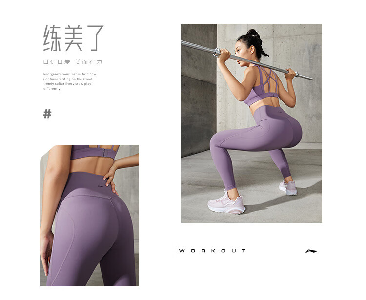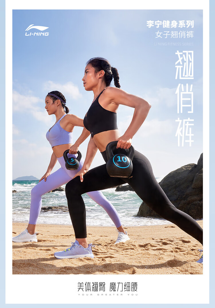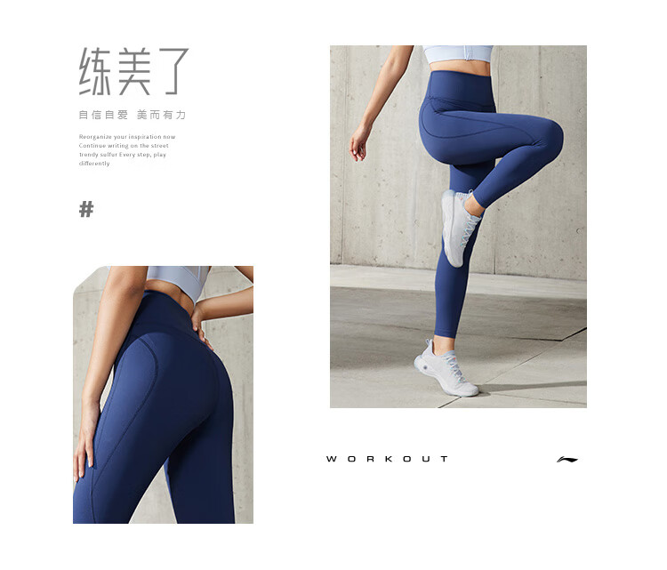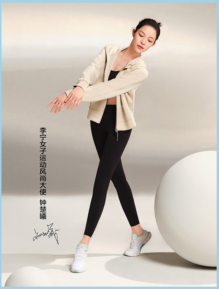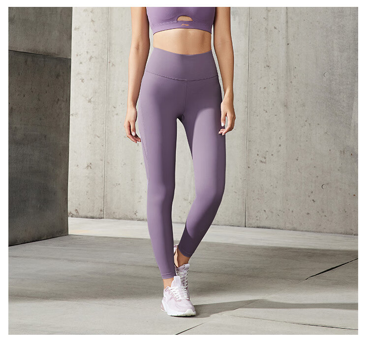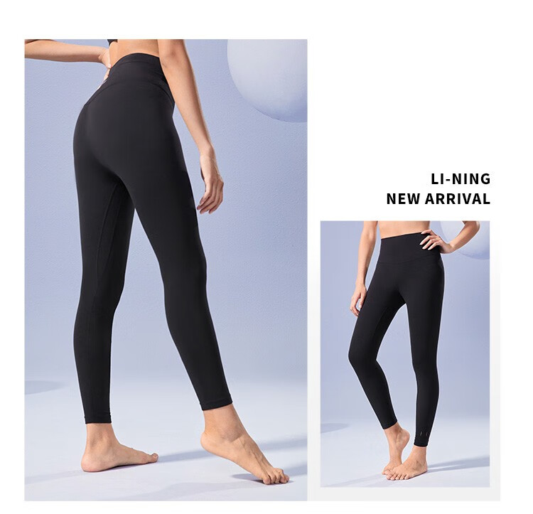 Li-Ning Yoga Pants Women's Spring and Autumn Solid Color Leggings Zhong Chuxi's Same Pilates Elastic Running Training Fitness Sports Pants 52 Sea Salt Blue S