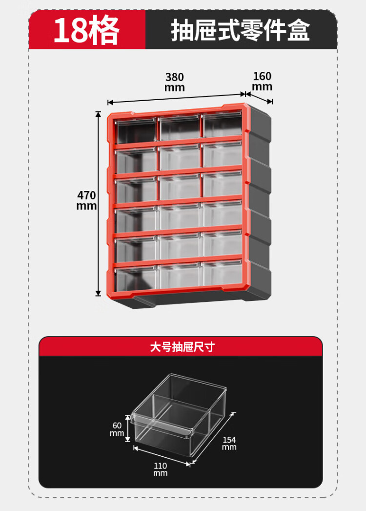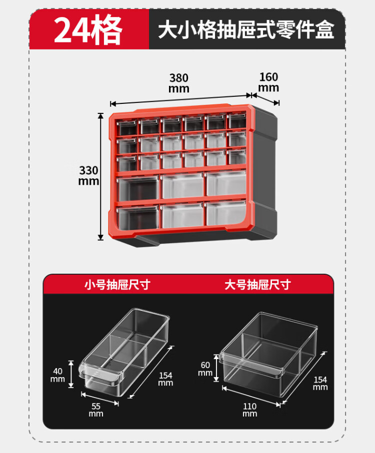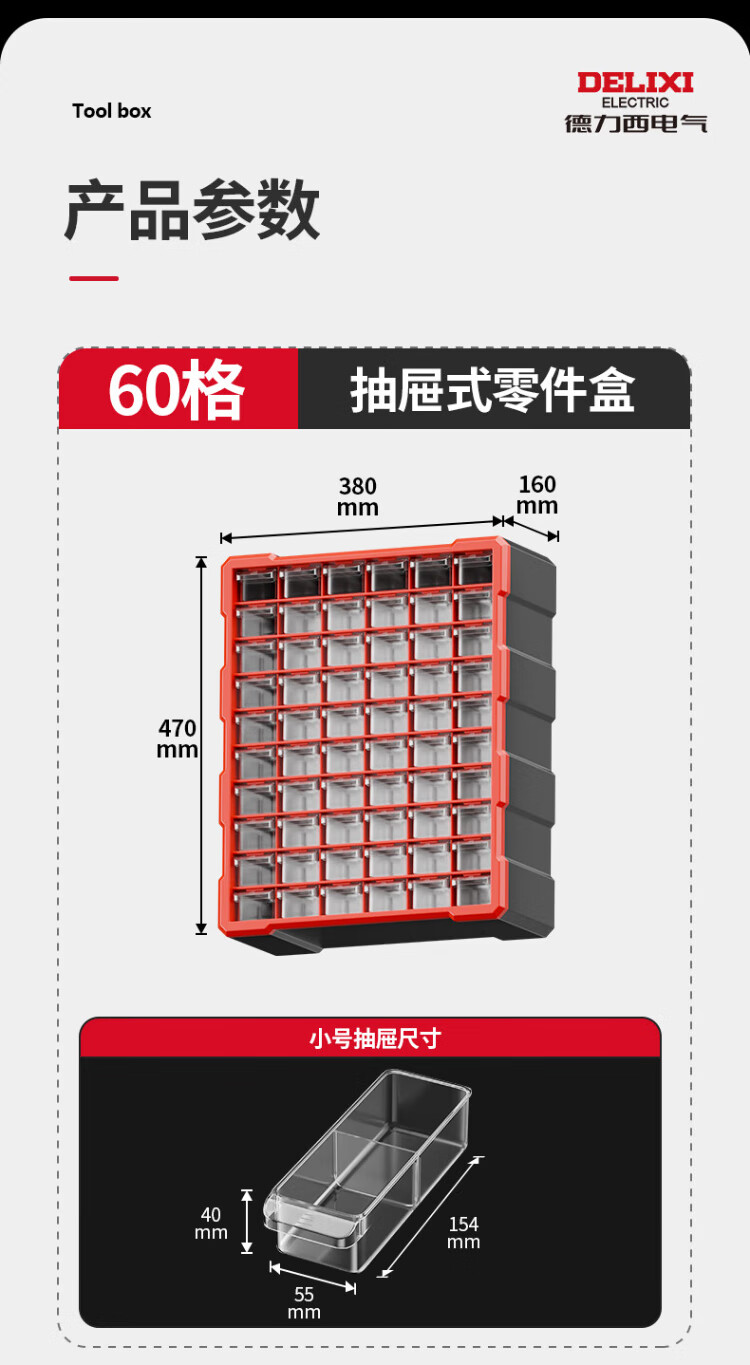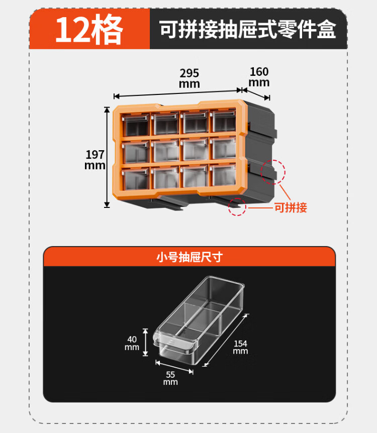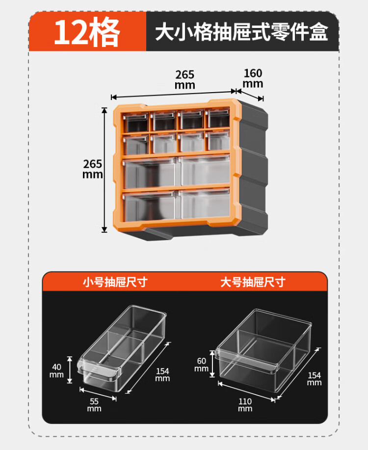 Delixi drawer-type parts box storage box accessories screw box parts cabinet drawer-type component classification storage orange-new material 12-grid large drawer parts box