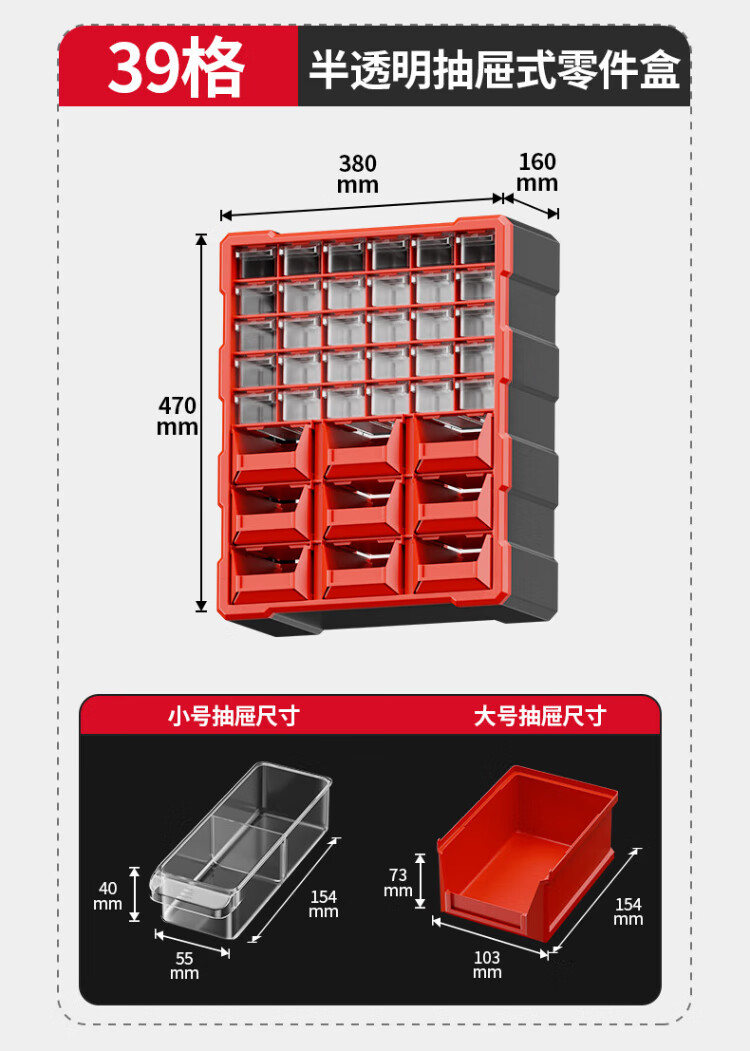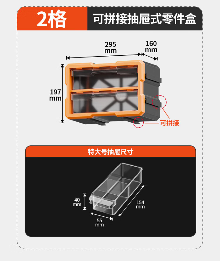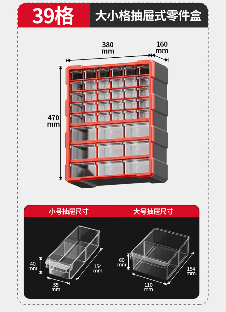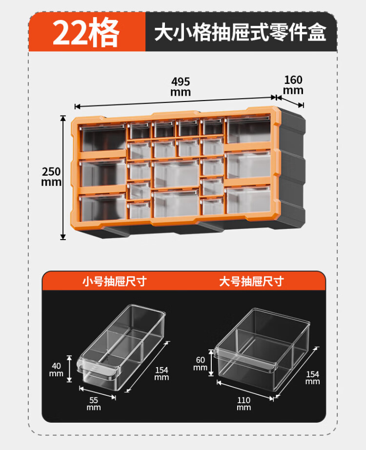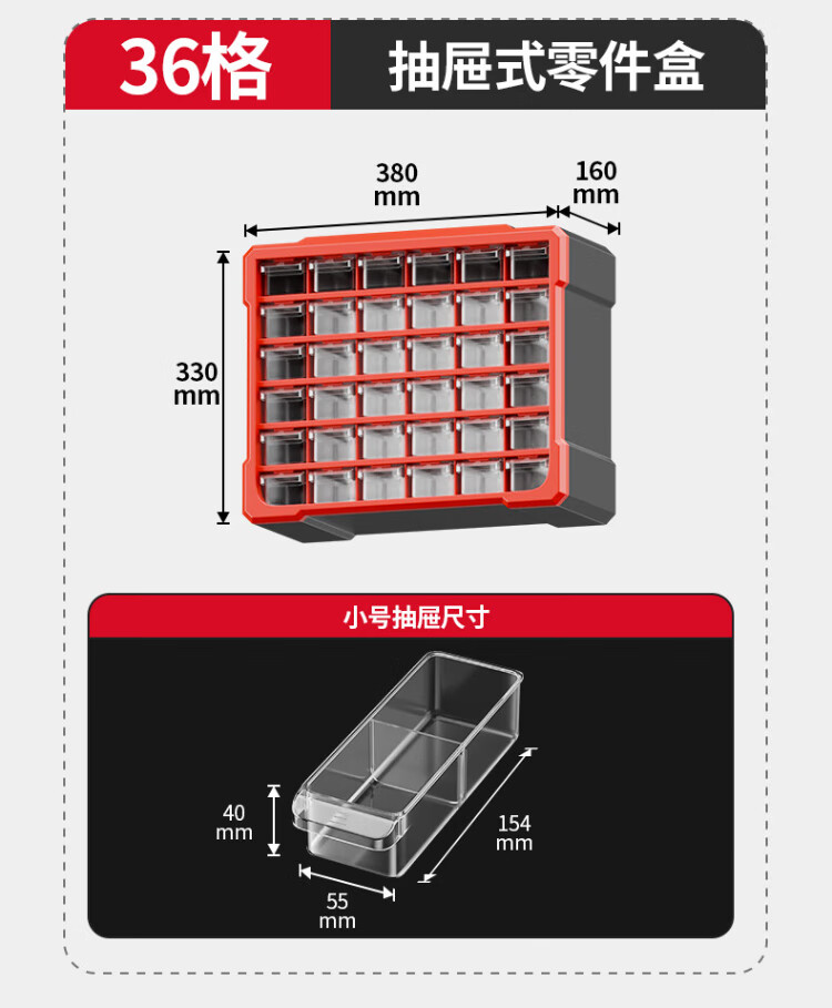 Delixi drawer-type parts box storage box accessories screw box parts cabinet drawer-type component classification storage orange-new material 12-grid large drawer parts box