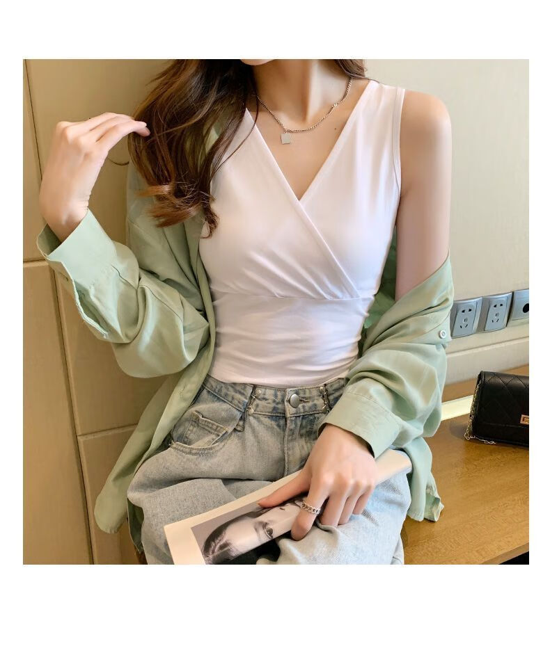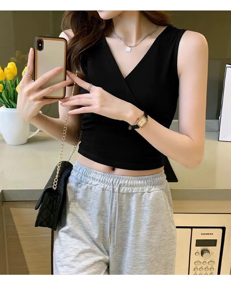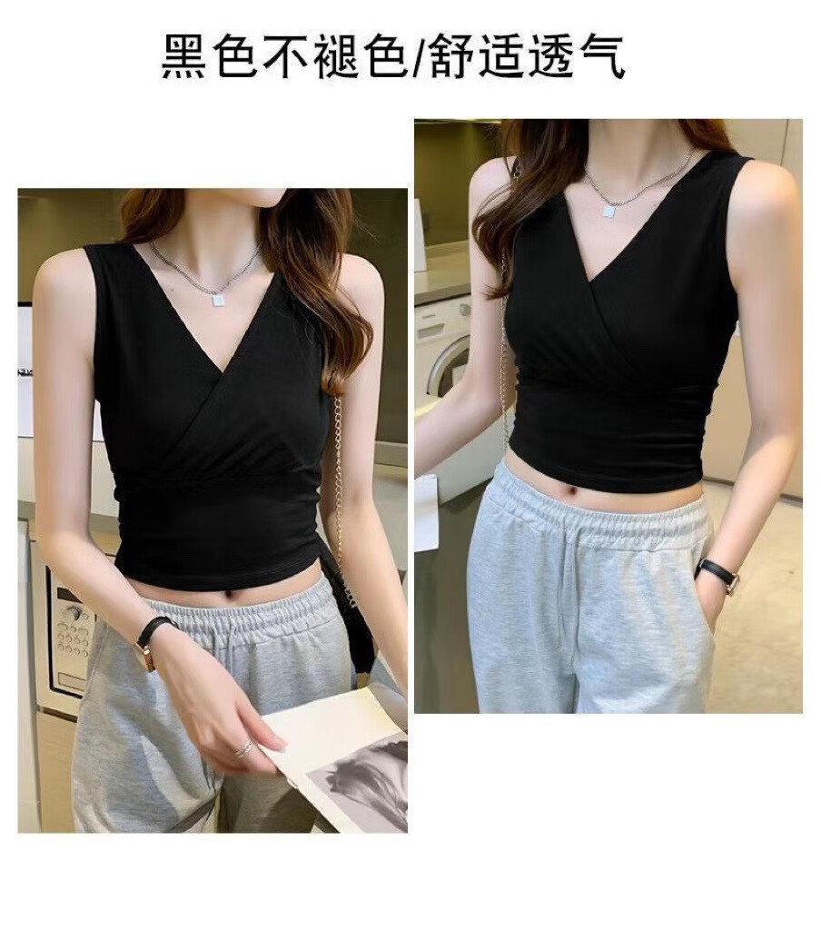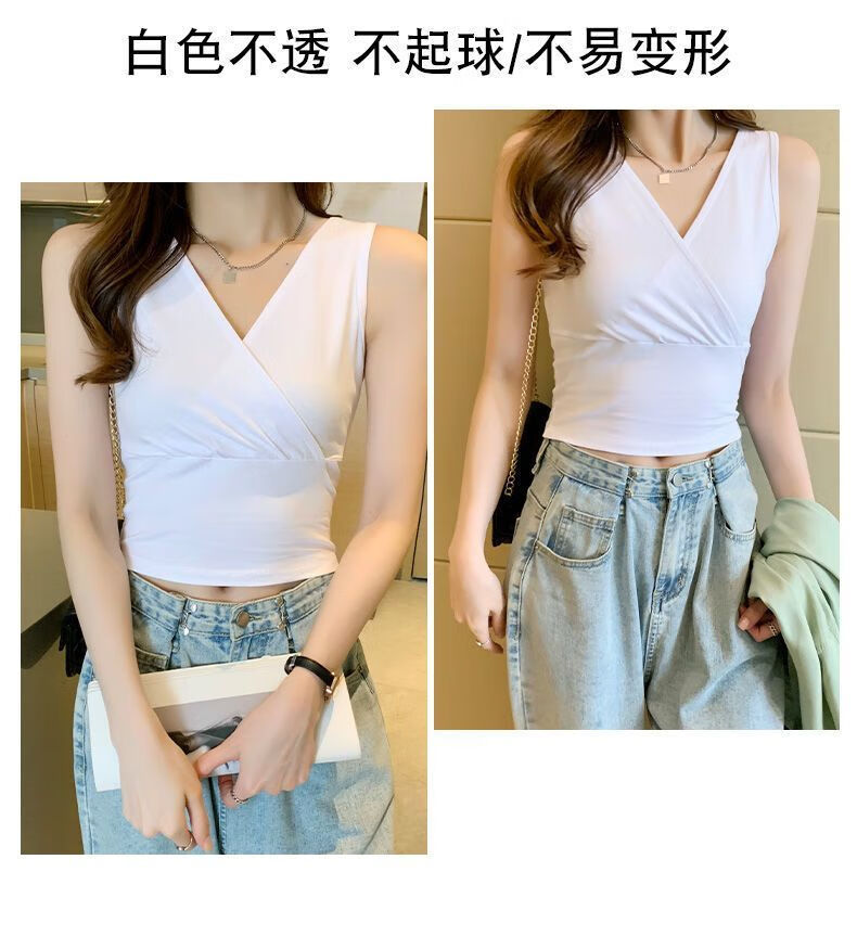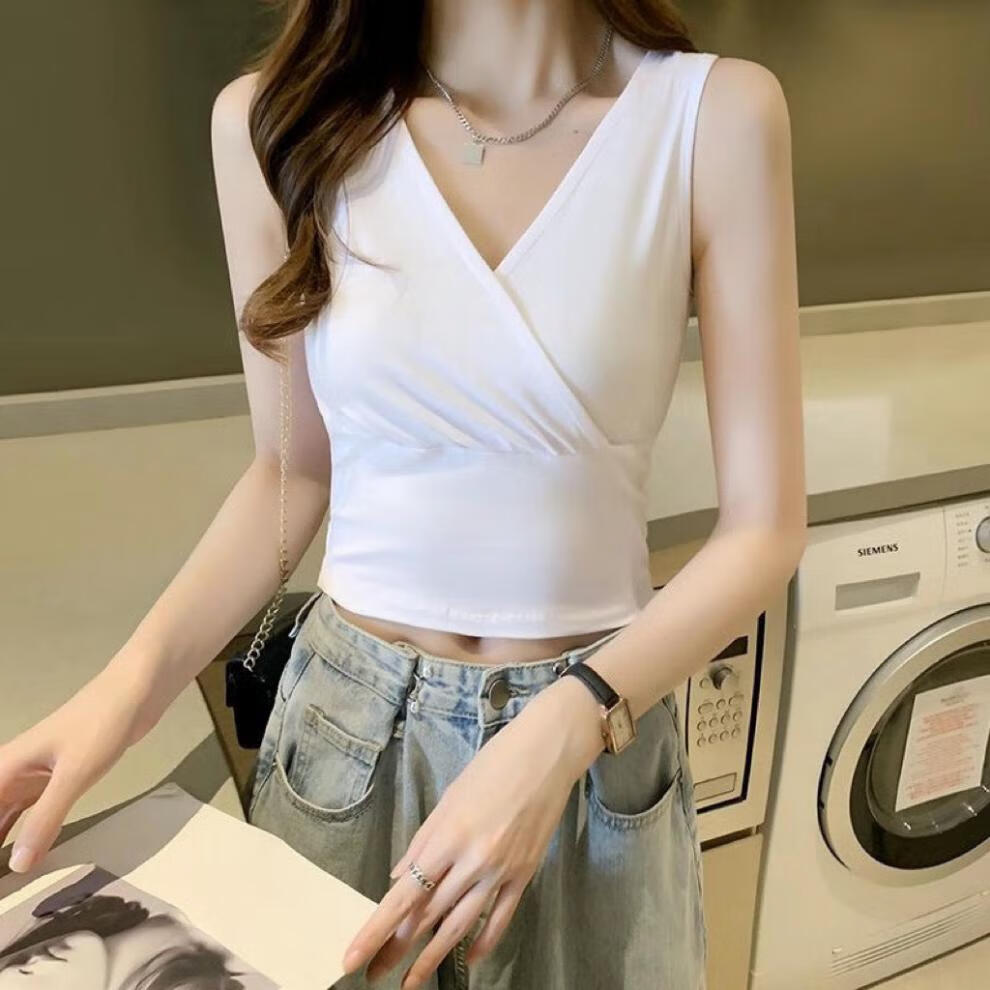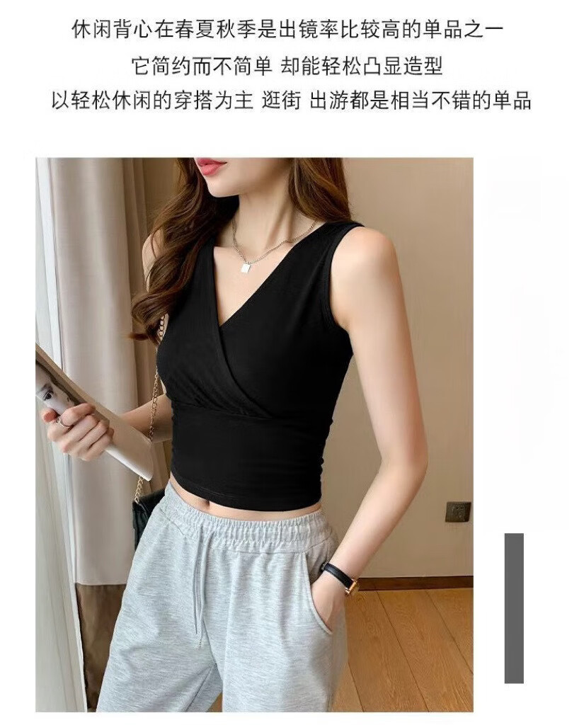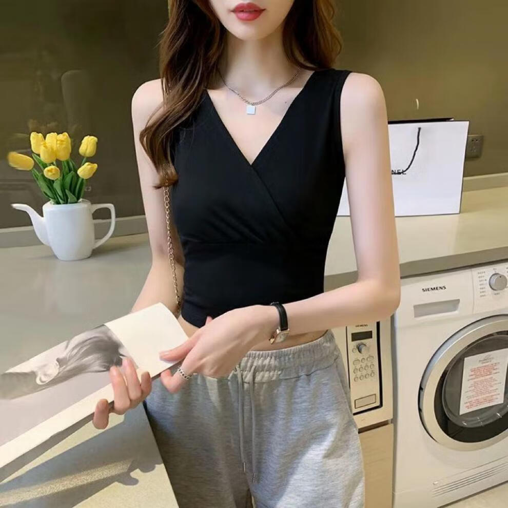 LangSha Modal Cotton V-neck Camisole Women's Autumn and Winter Short Navel Exposed Outerwear Slim Bottoming Sleeveless Top Women Black XL Recommended 120-140Jin Jin equals 0.5kg