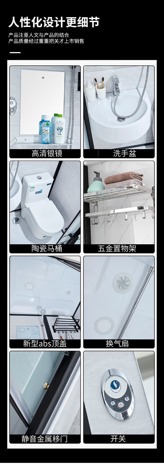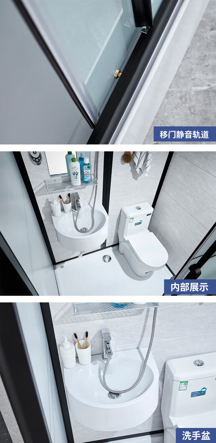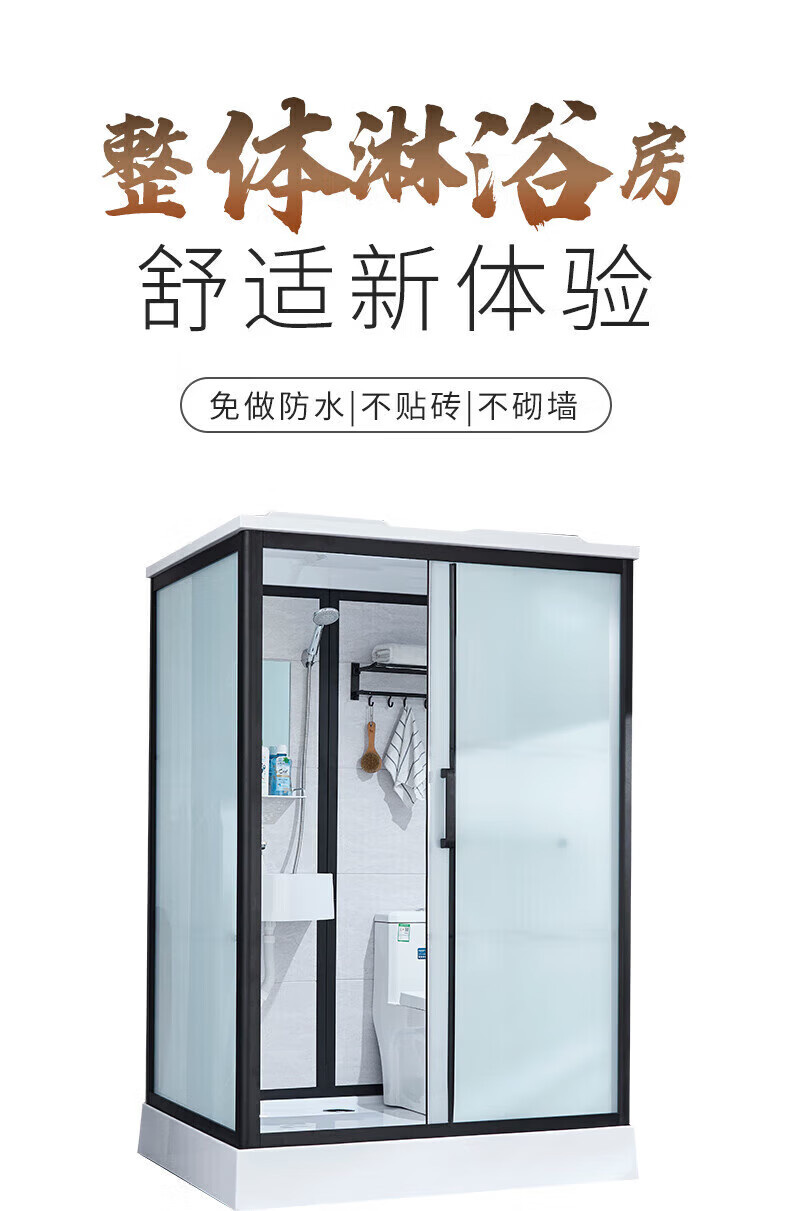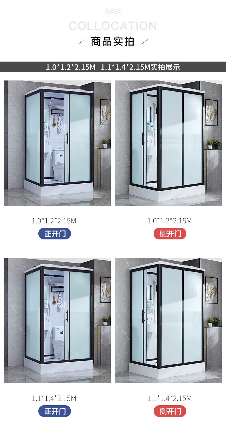 Wulang Machinery (can be installed on the door) shower room integrated shower room integrated shower room finished bathroom partition dry and wet separation 1.0*1.2M without toilet side door