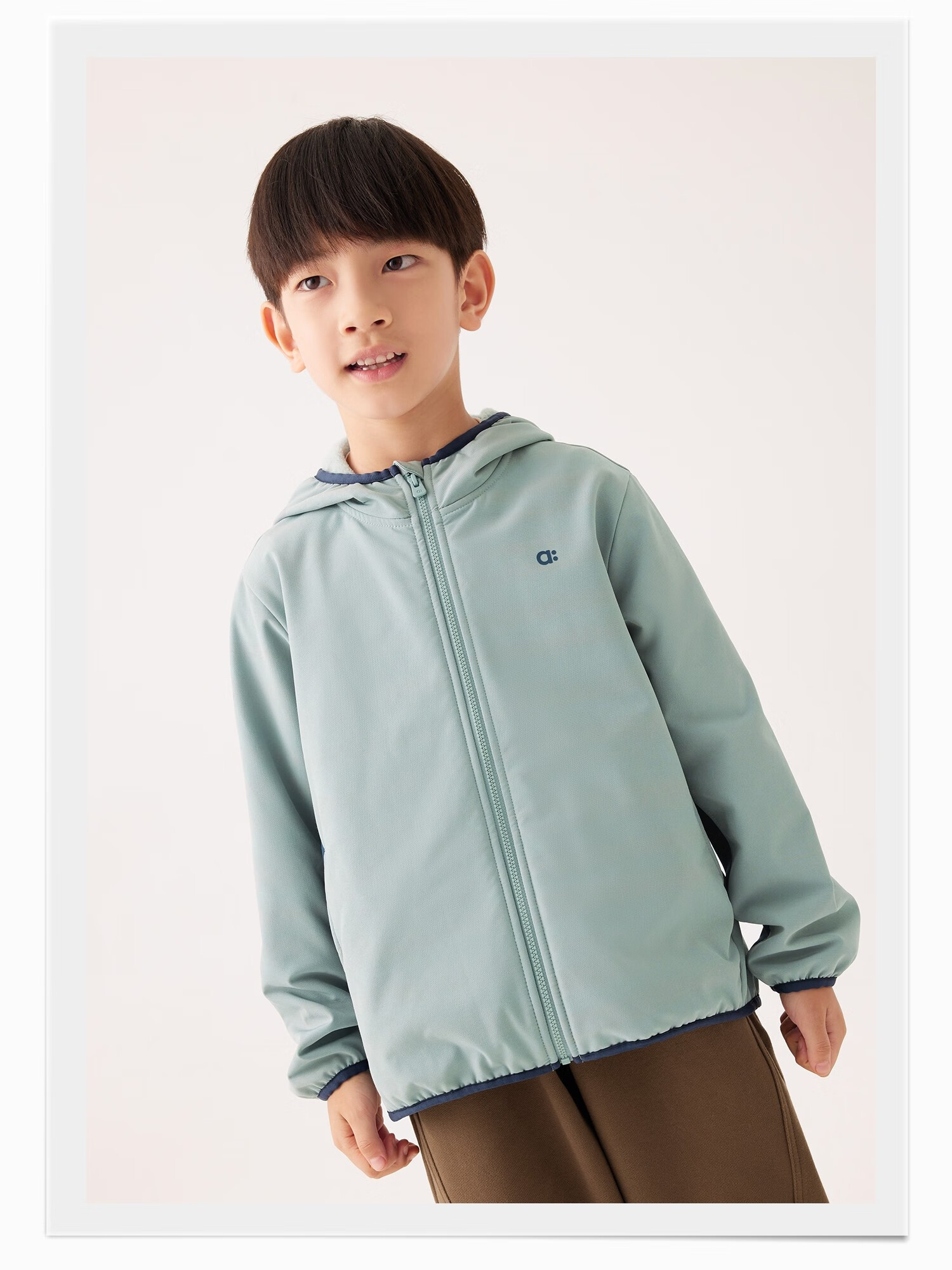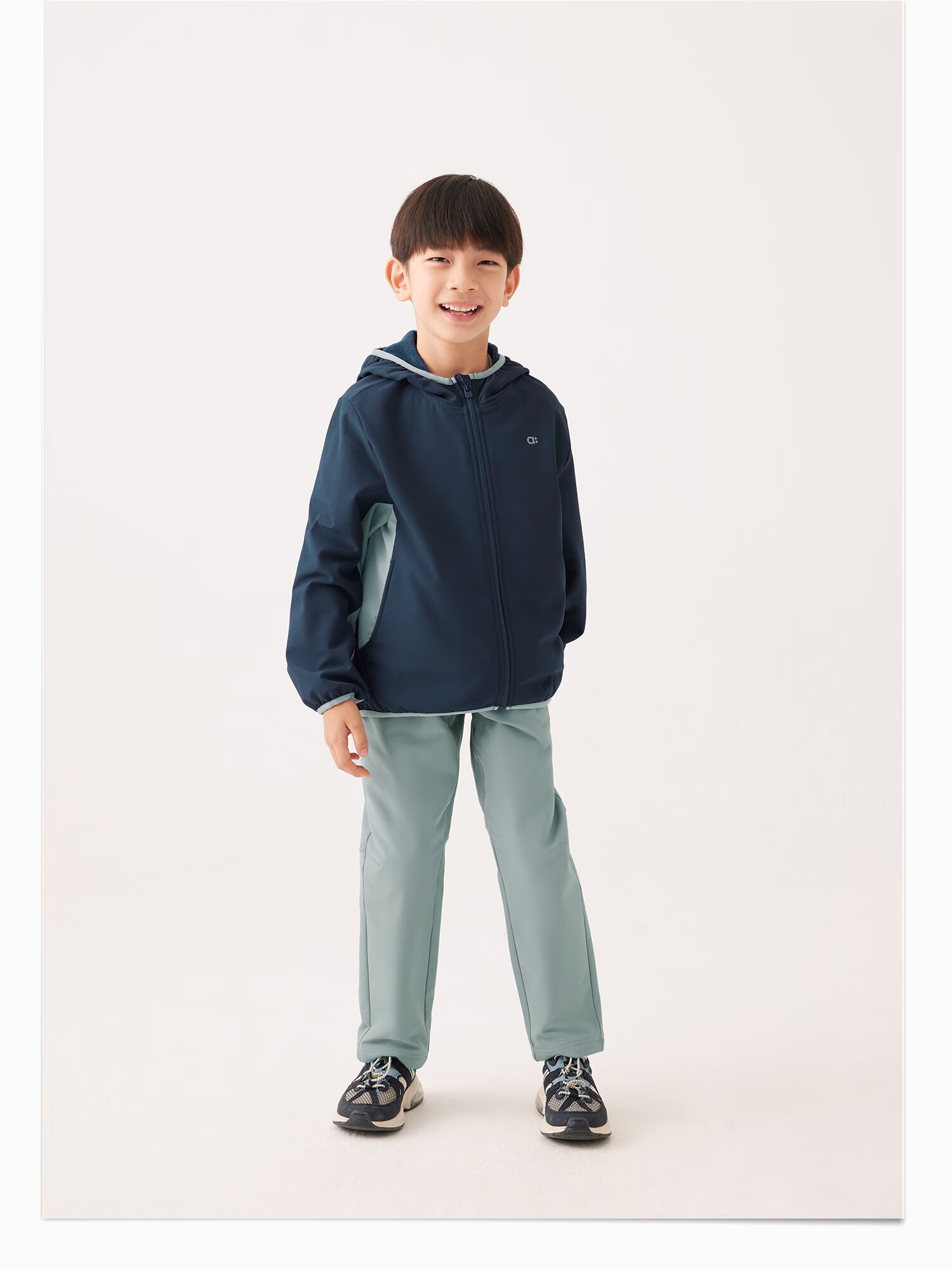 ALLBLU ALLBLU Children's Clothing Soft Soft Shell No. 2 Hooded Jacket Windproof and Warm 24 Autumn New Children's Boys and Girls Jacket Dark Blue with Green Silver Gray 120 cm