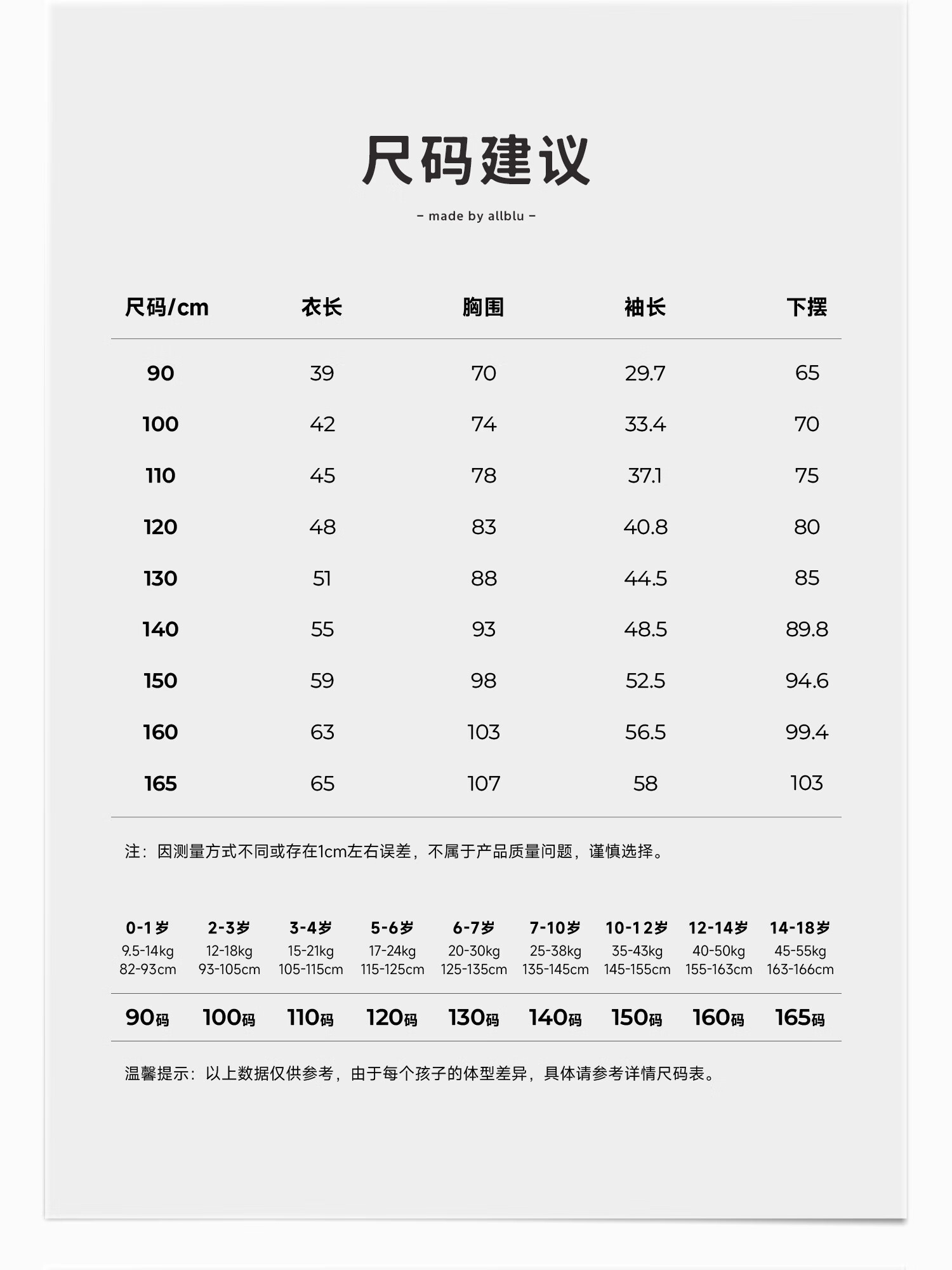 China (cm) 160-165/84-86 165-170 / 88-90 167-172 / 92-96 168-173 / 98-102 170-176 / 106-110